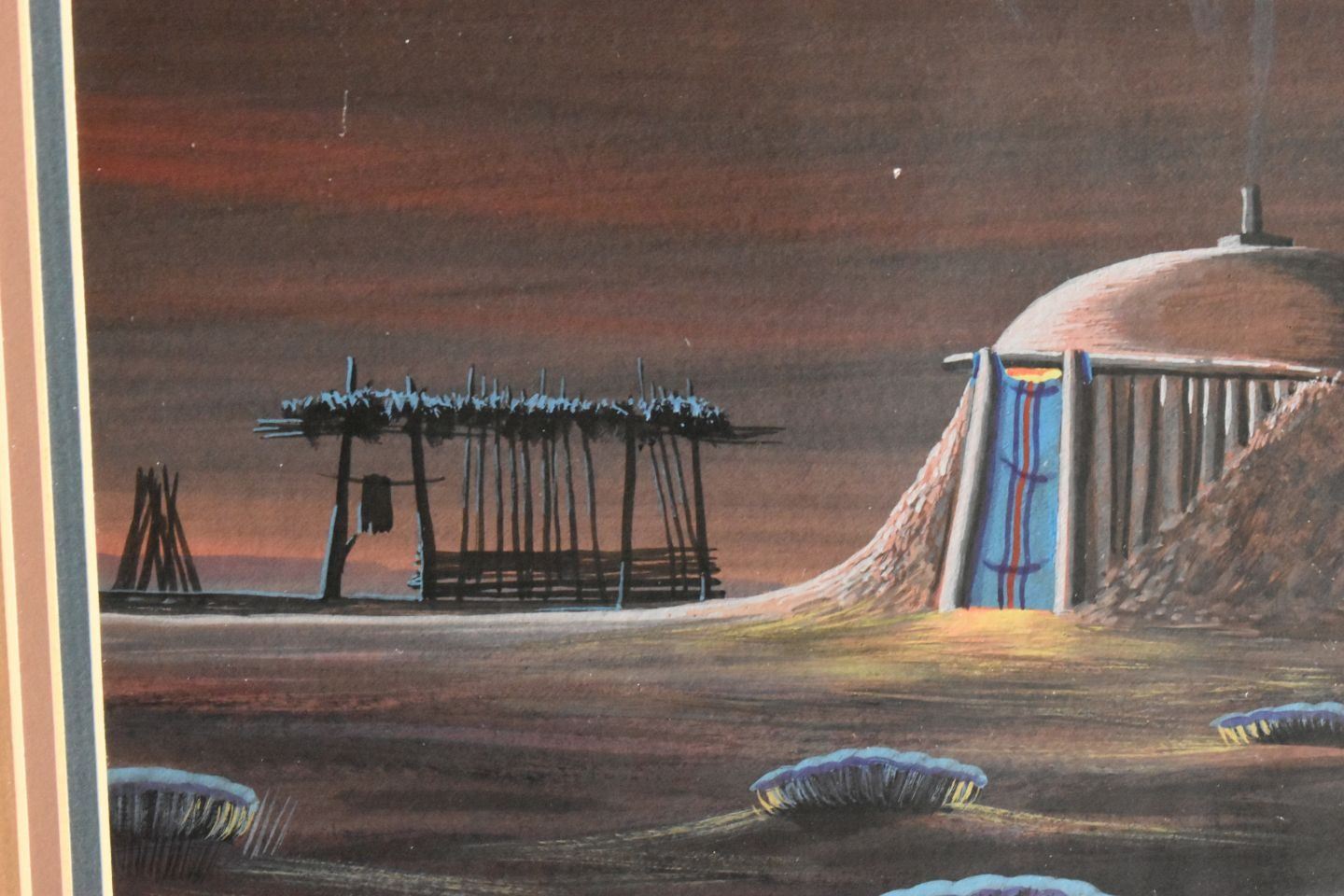 2002 Navajo, original hand painted depicting Hogan and Yei Bi Chie by Benson Halwood 21.5" x 13.5" matted and framed to 31" x 23.5"