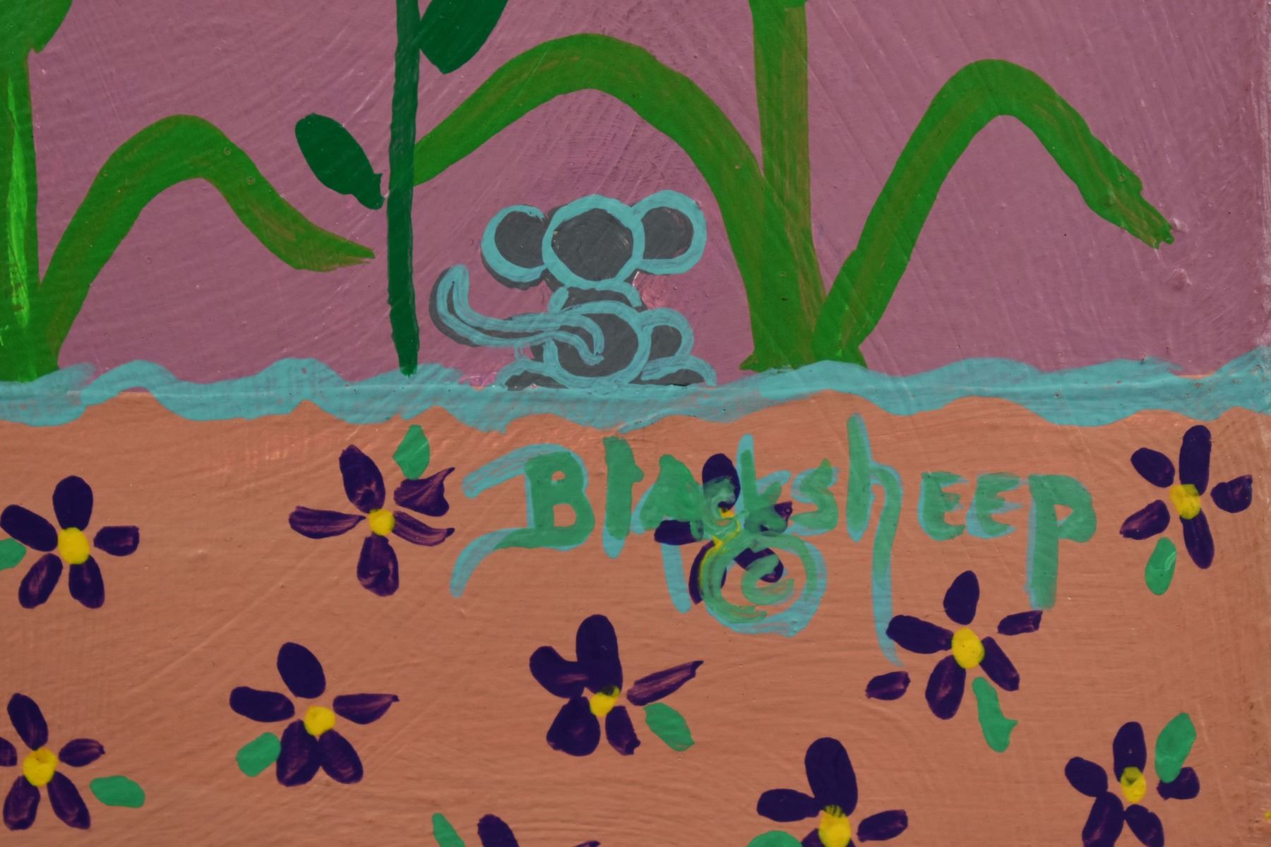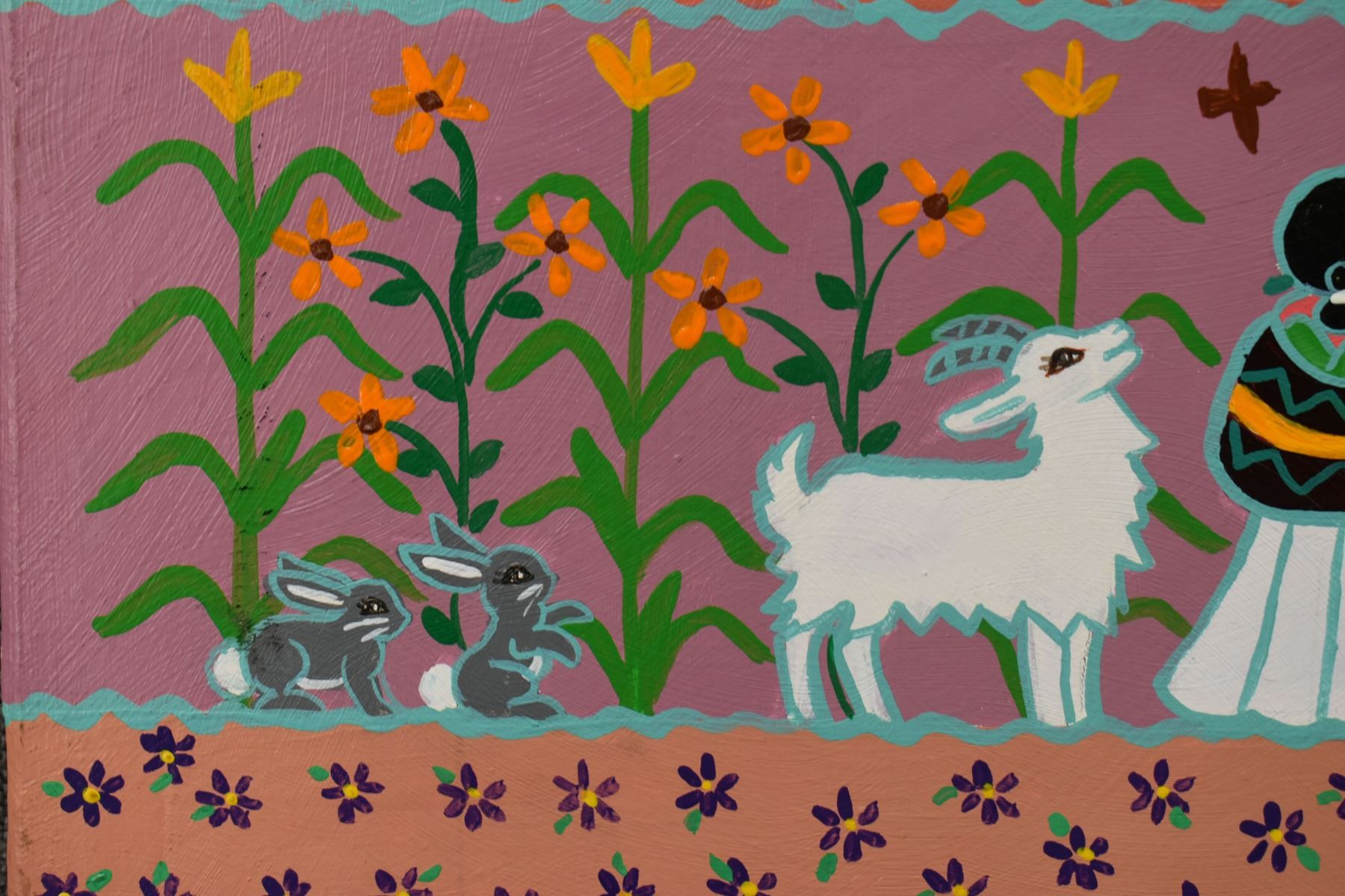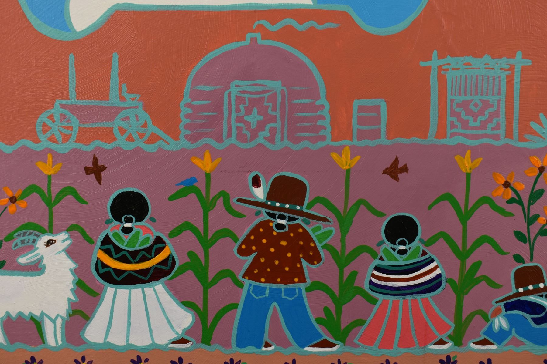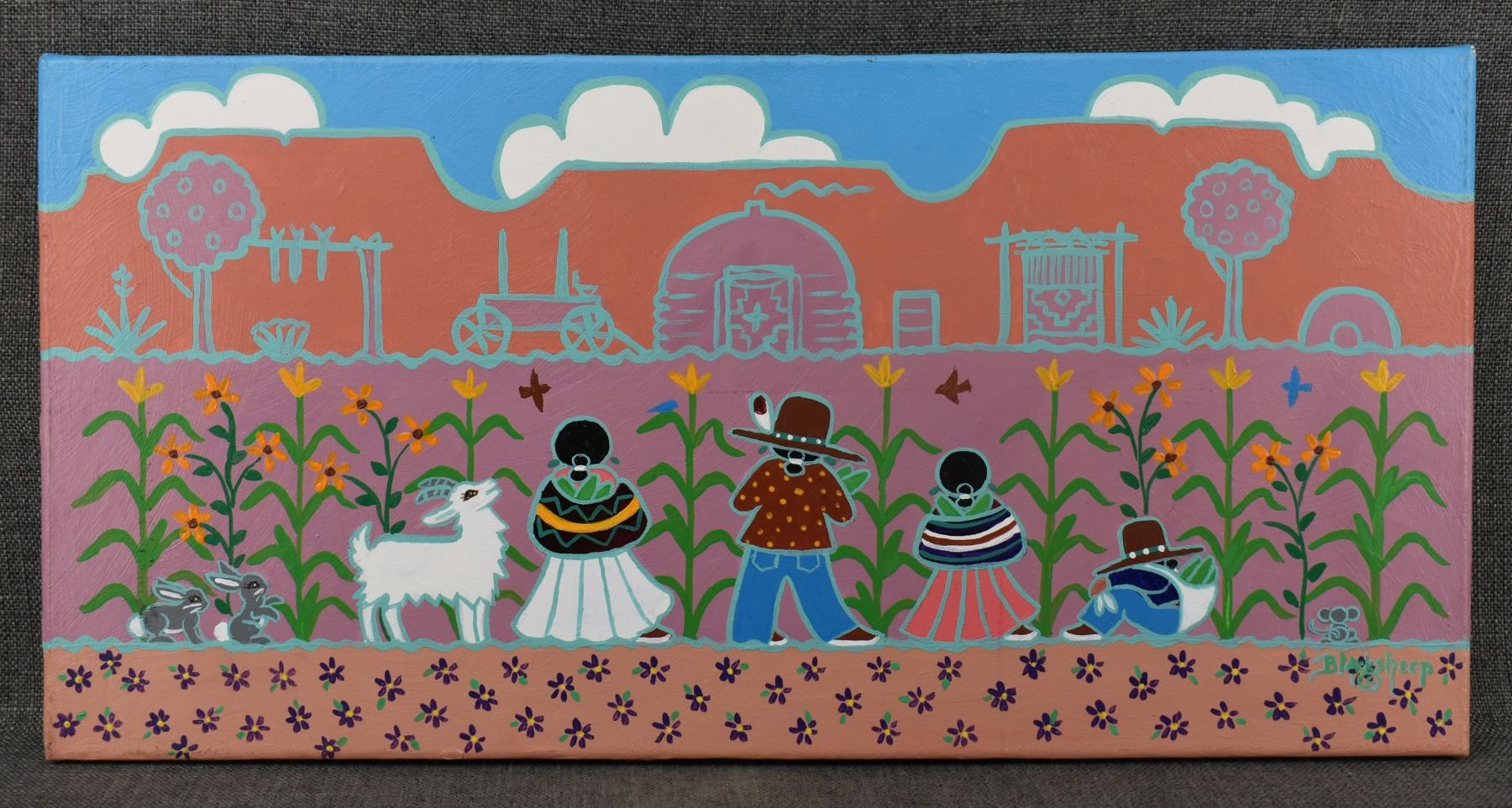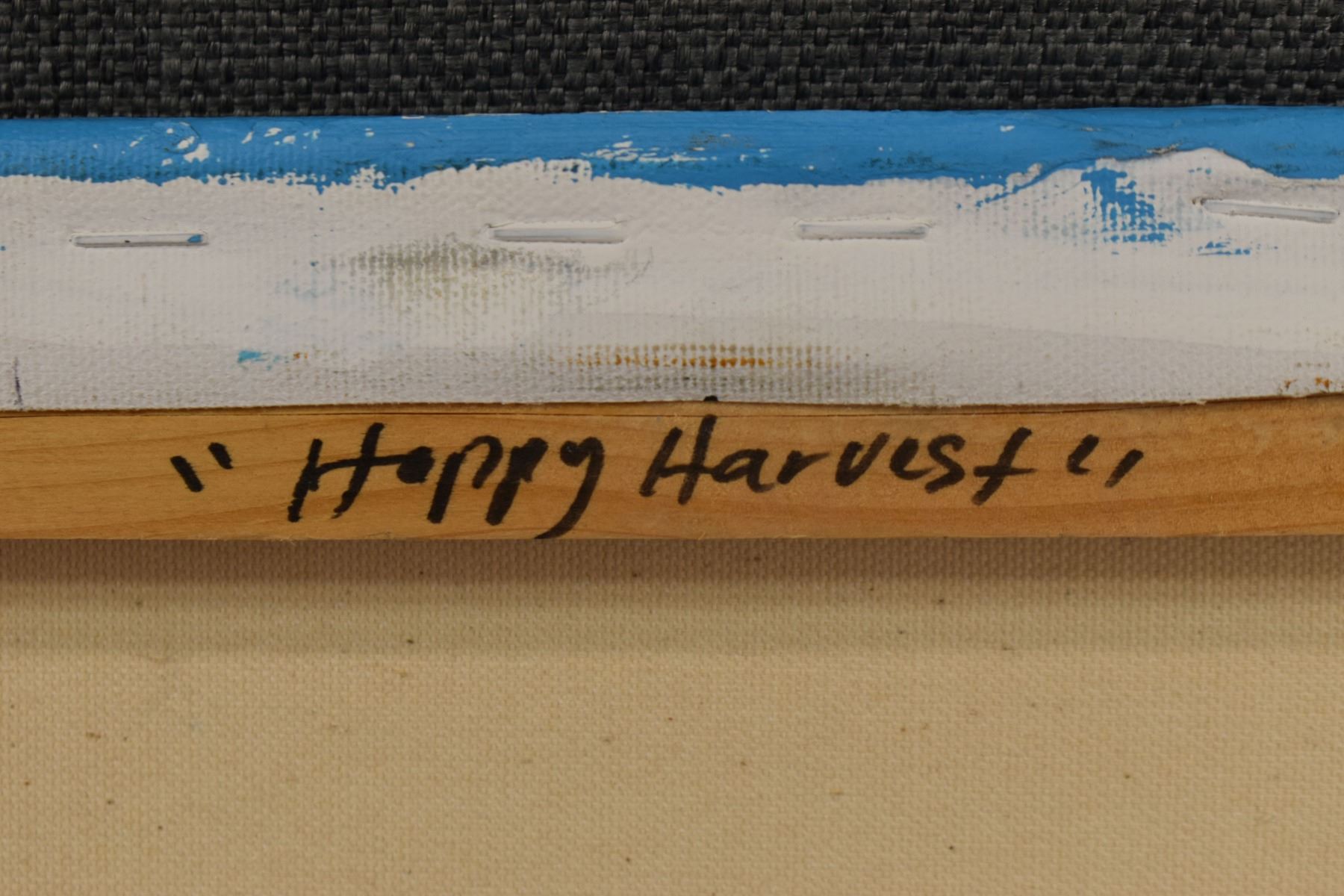 2000's Navajo, hand painted on canvas titled "Happy Harvest" by Beverly Blacksheep, 11.75" x 24".