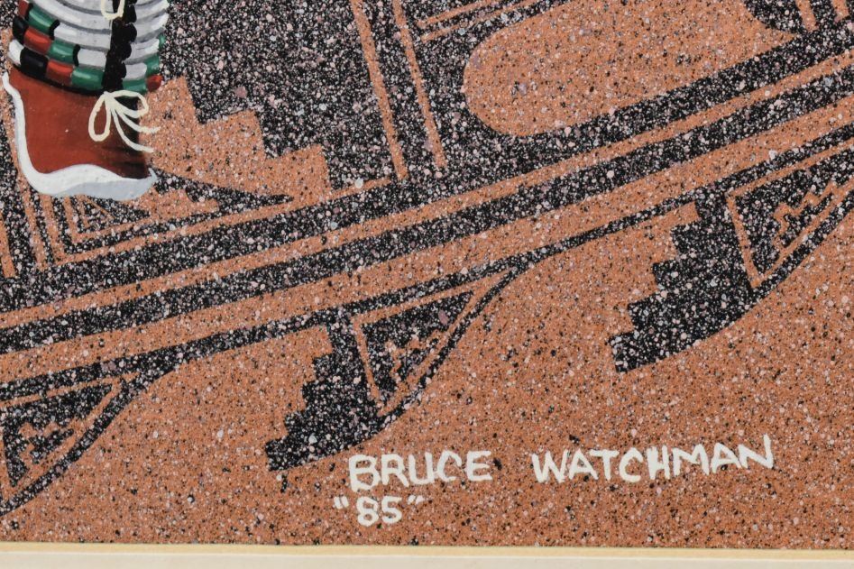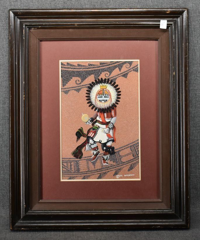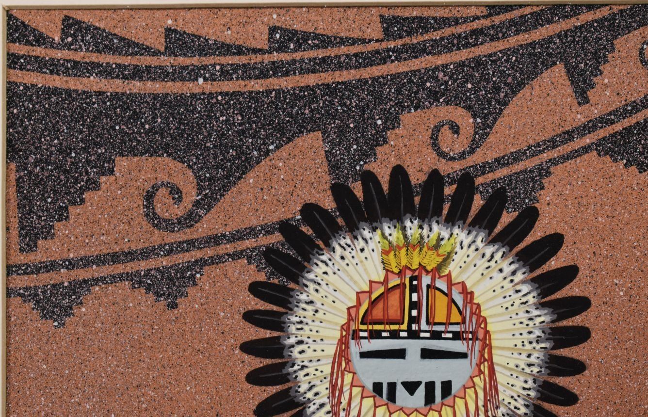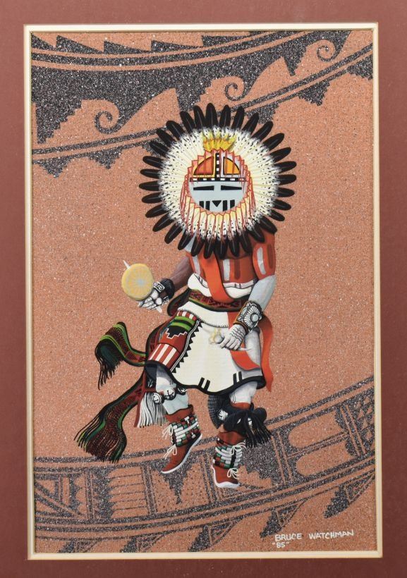 1985. Navajo. original on paper depicting Sun face Kachina, signed Bruce Watchman. 11'' x 7'' frame size 22'' x 18''