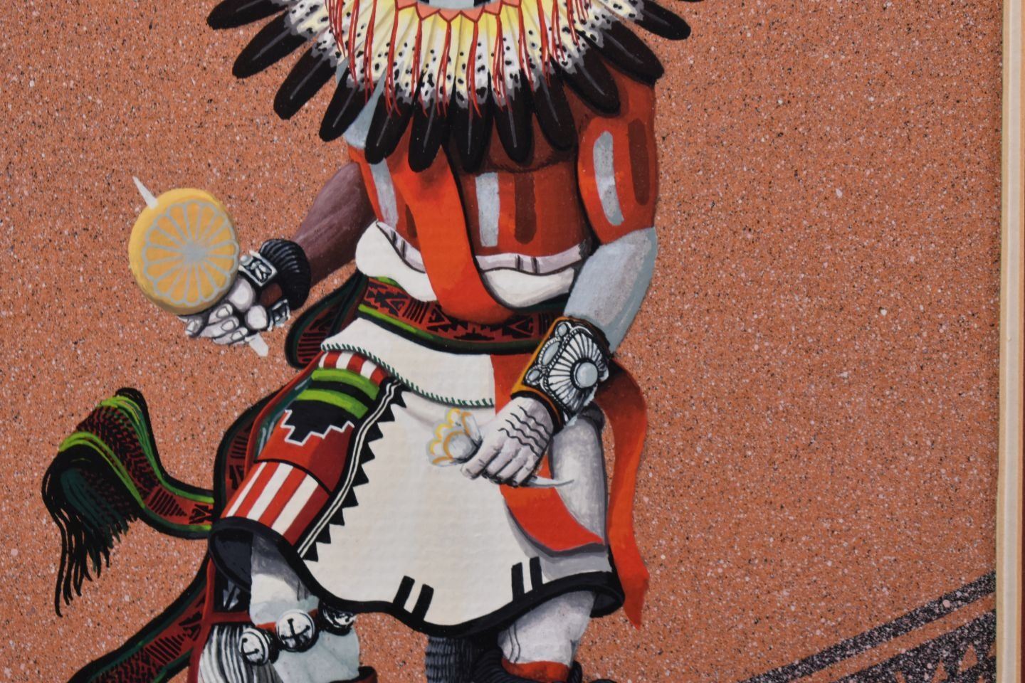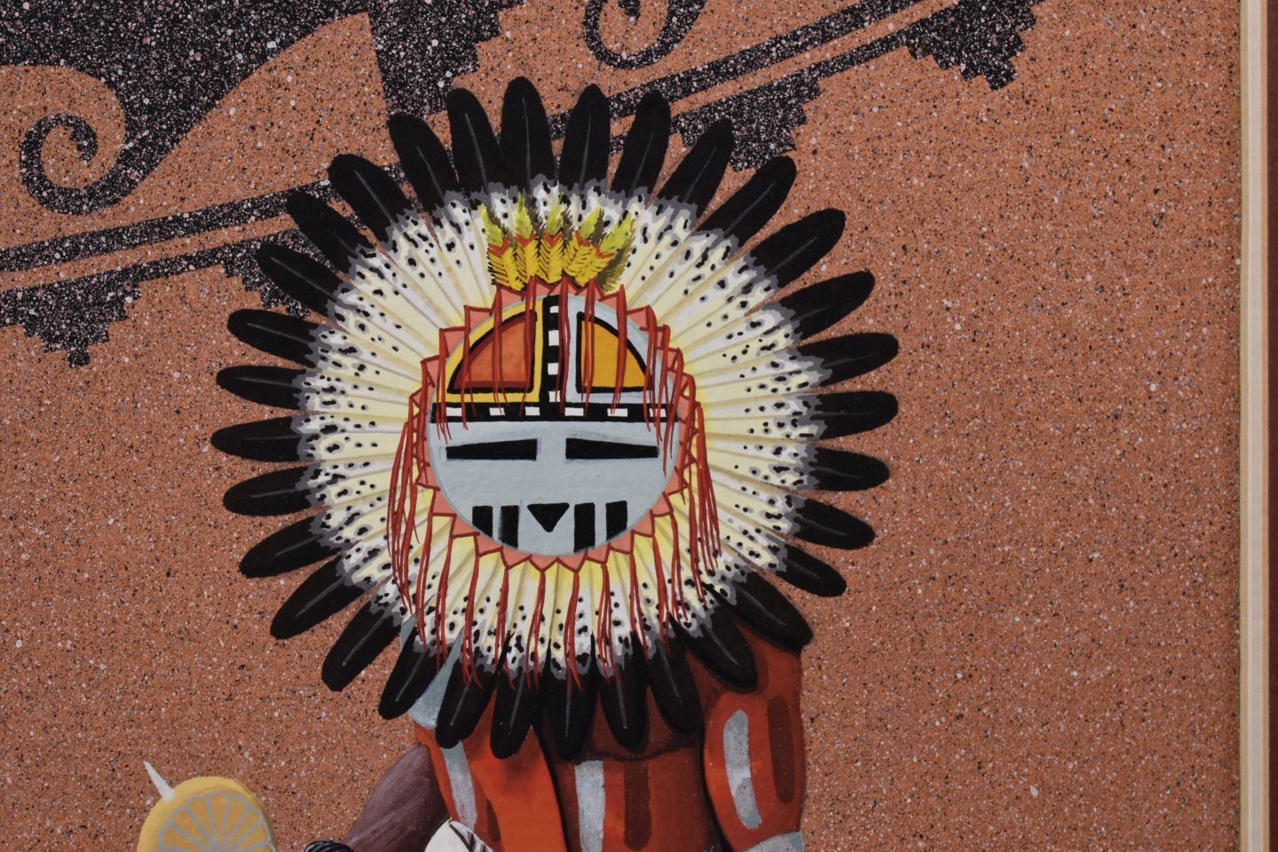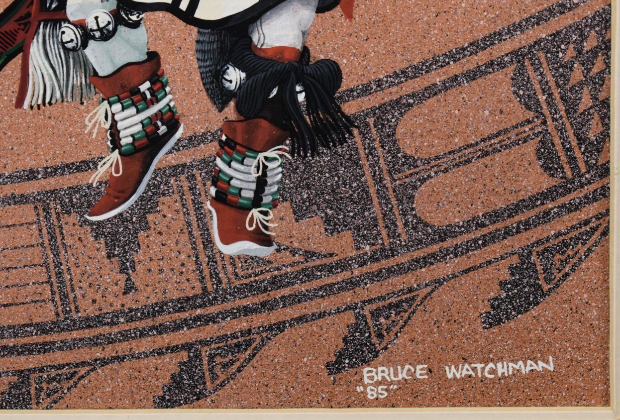 1985. Navajo. original on paper depicting Sun face Kachina, signed Bruce Watchman. 11'' x 7'' frame size 22'' x 18''