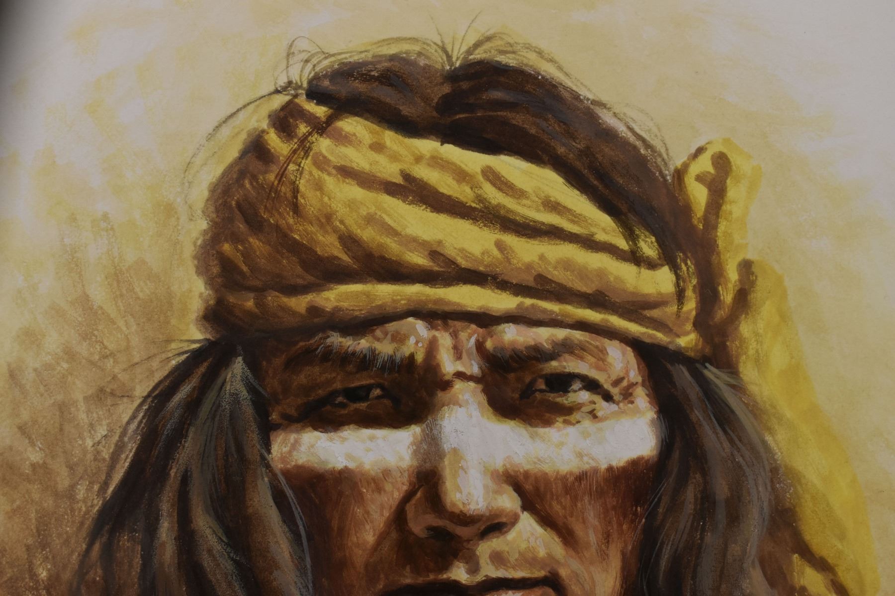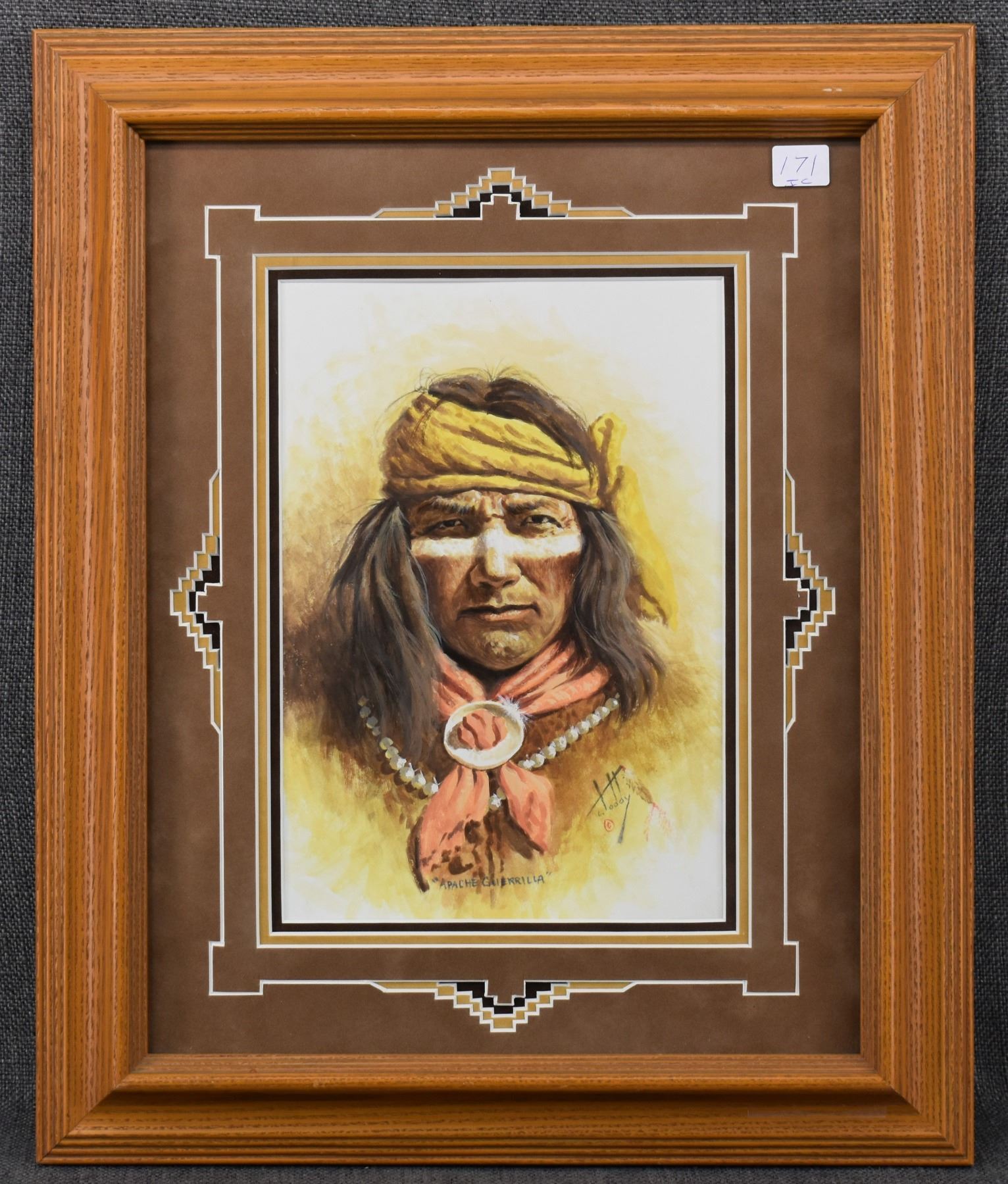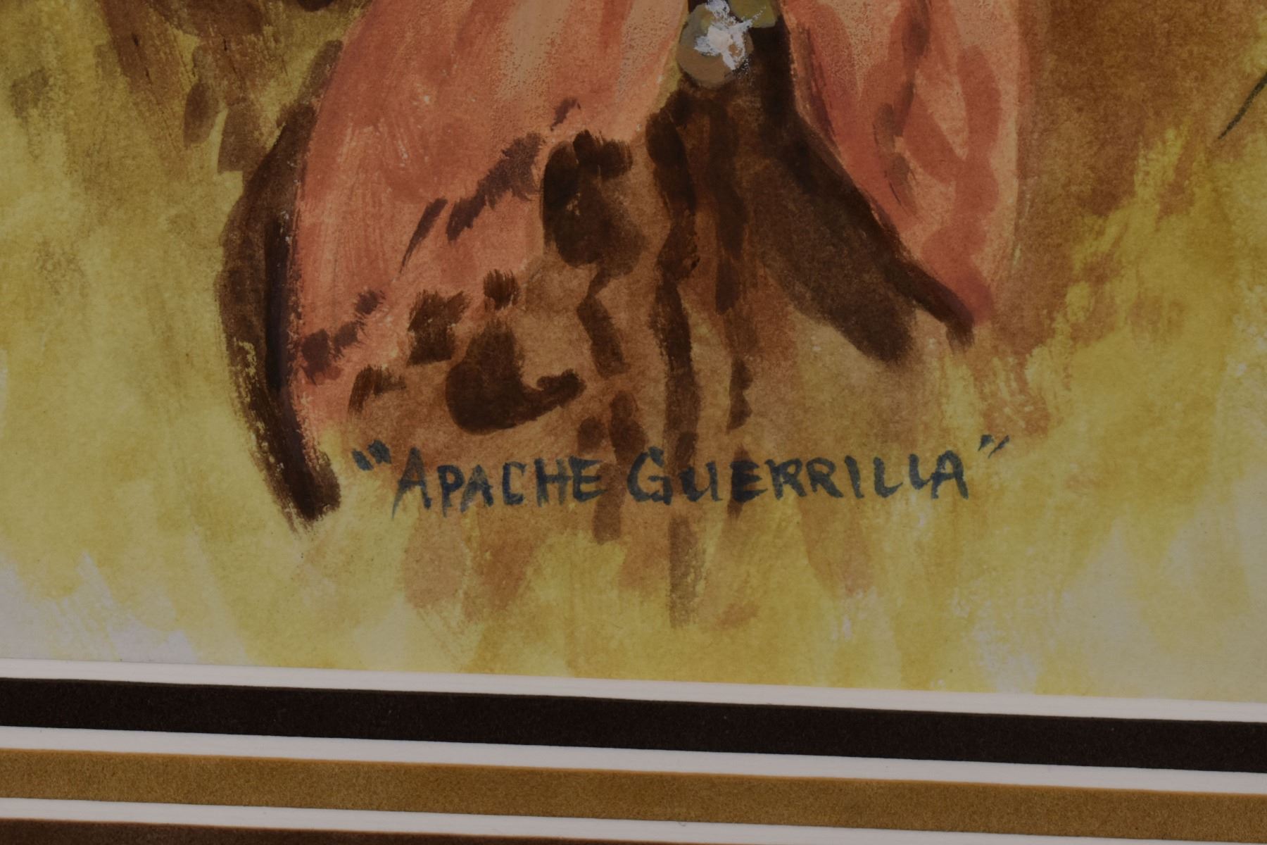 2000's Navajo, original hand painted on paper titled "Apache Guerrilla" by Calvin Toddy 10" x 6.75" framed to 17.75" x 14.5"