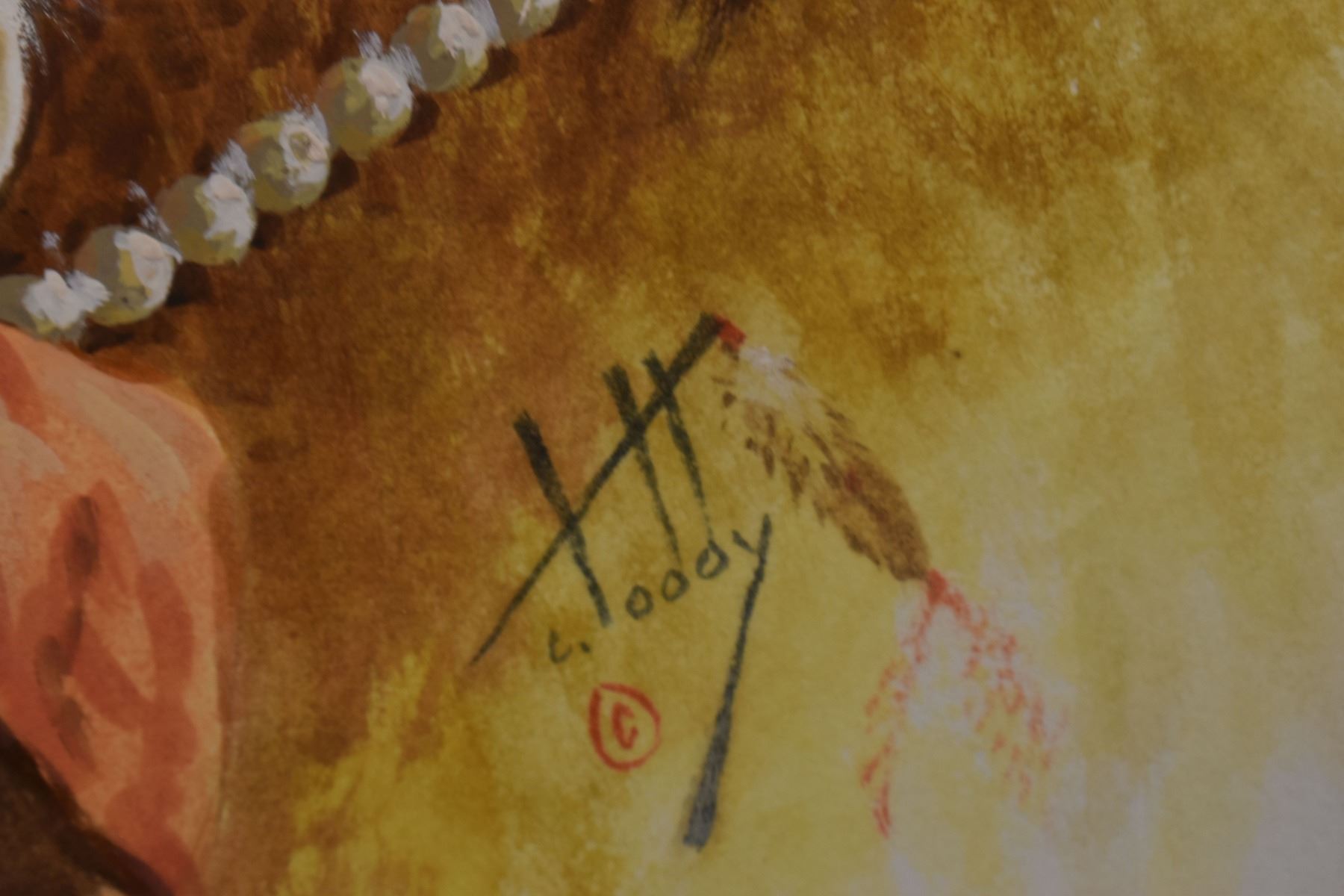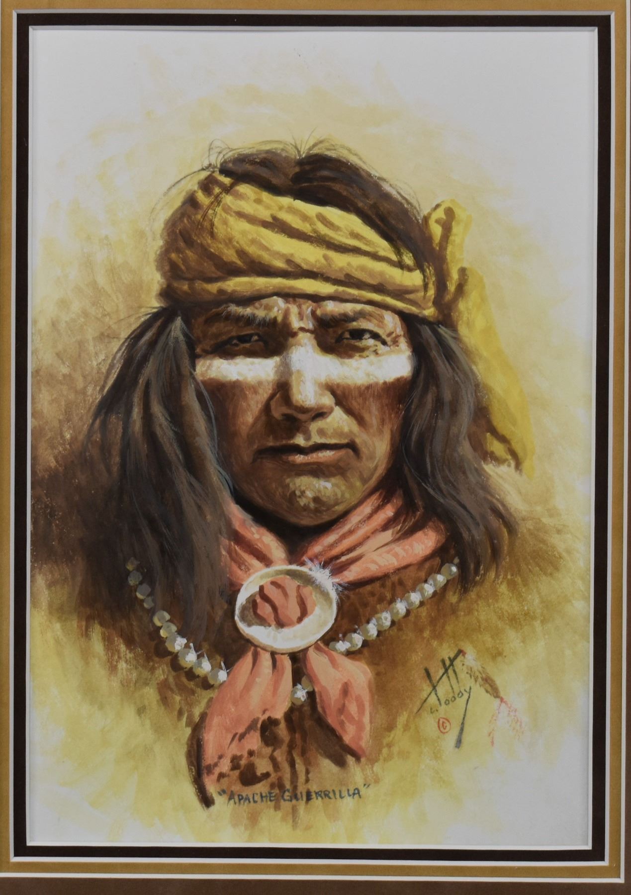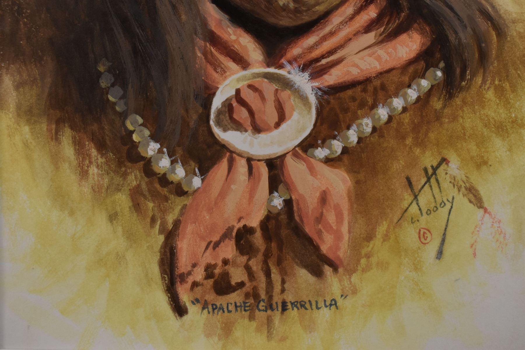 2000's Navajo, original hand painted on paper titled "Apache Guerrilla" by Calvin Toddy 10" x 6.75" framed to 17.75" x 14.5"