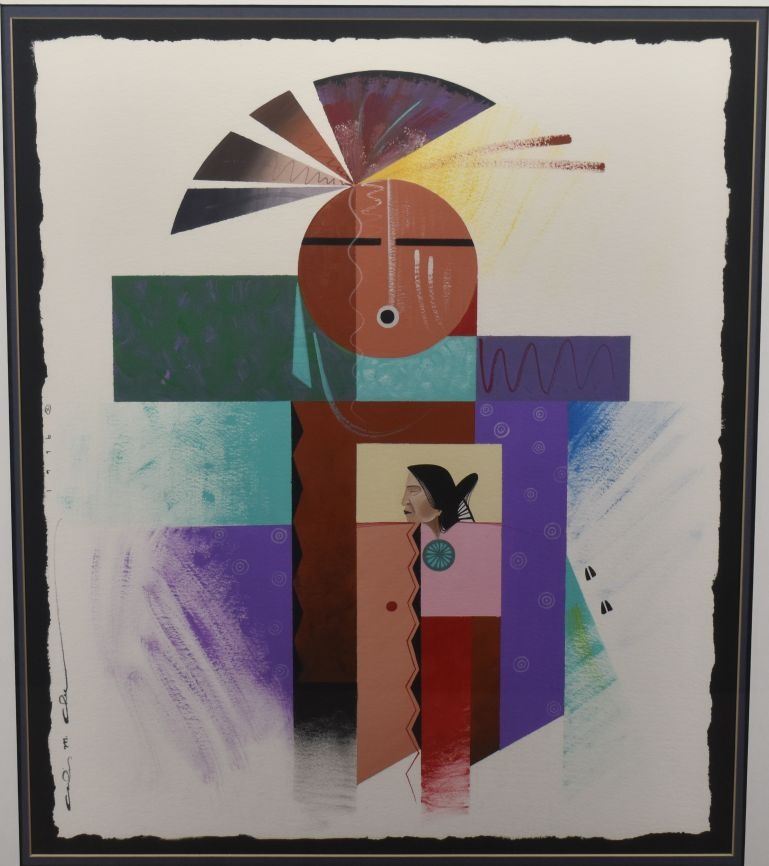 1996 Navajo, original hand painted Acrylic on paper titled "Blessing From Dineh" by Carlis M Chee 19" x 17" framed to 24" x 27"