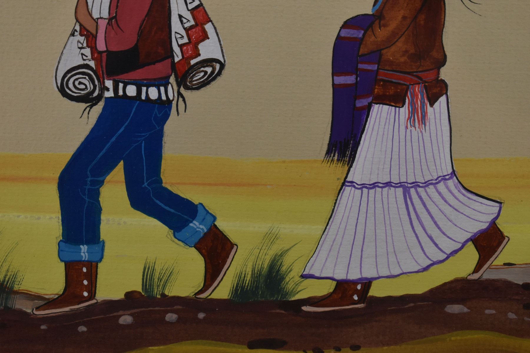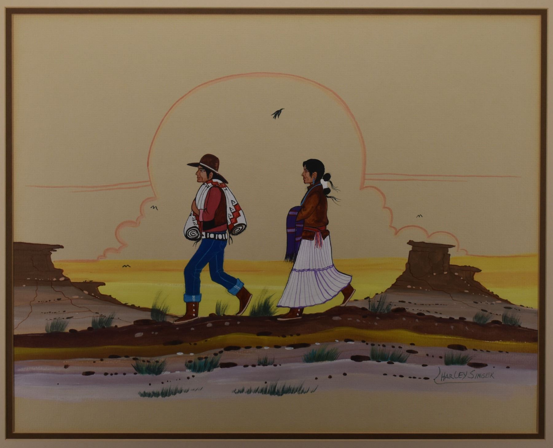 1980-90's Navajo, original hand painted on paper depicting native couple signed Charley Singer 16" x 20" matted and framed to 23" x 26"