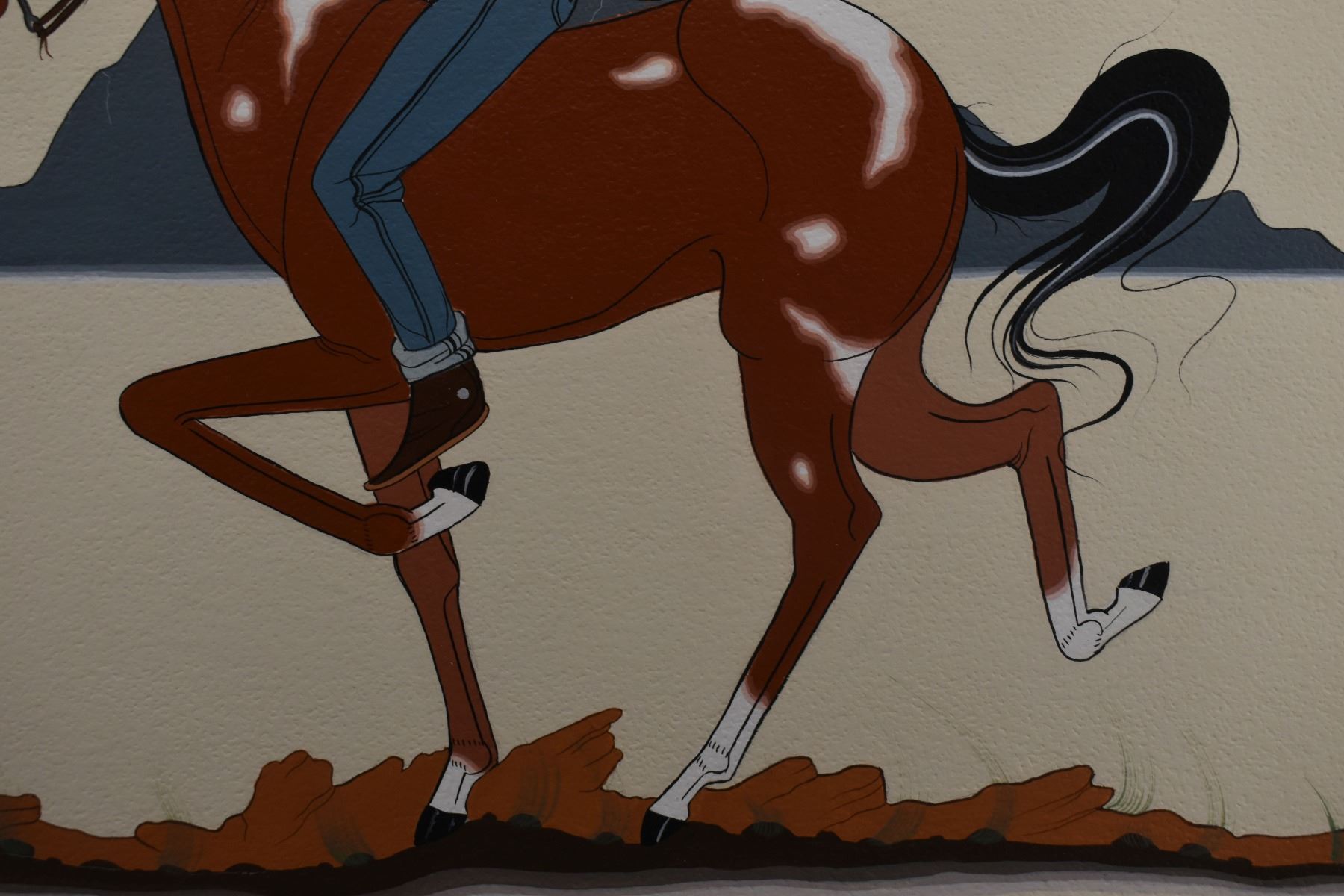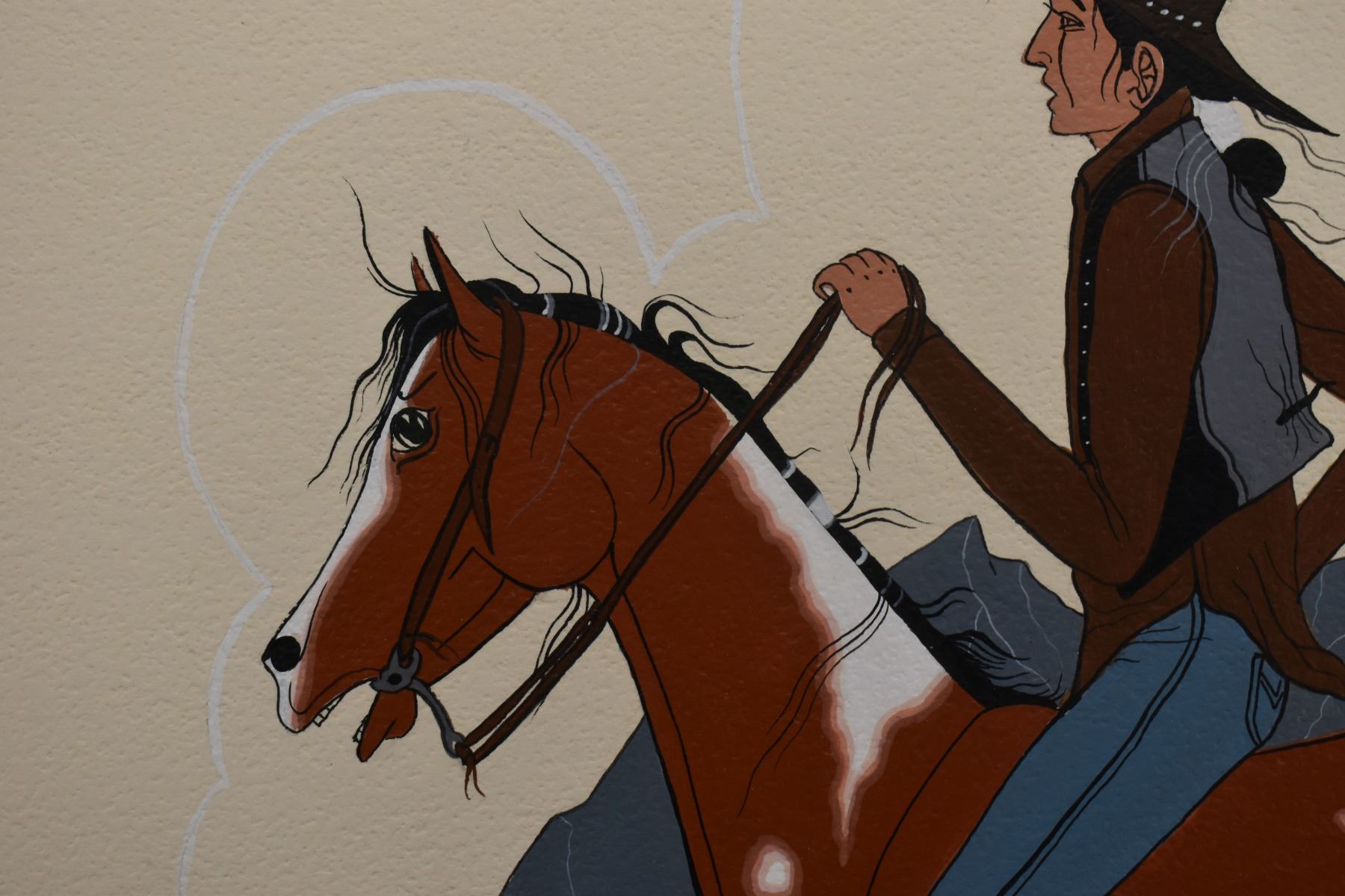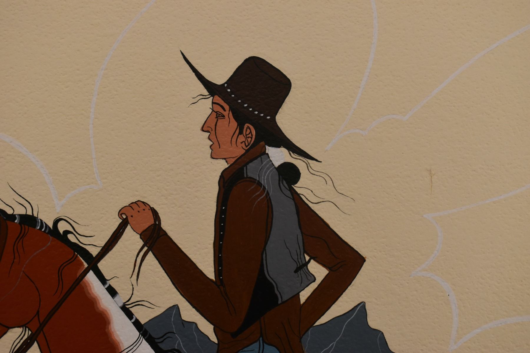 1970's Navajo. Original painting on paper depicting native man on horse, signed Charley Yazzie. 15'' x 19'' frame size 22'' x 26''