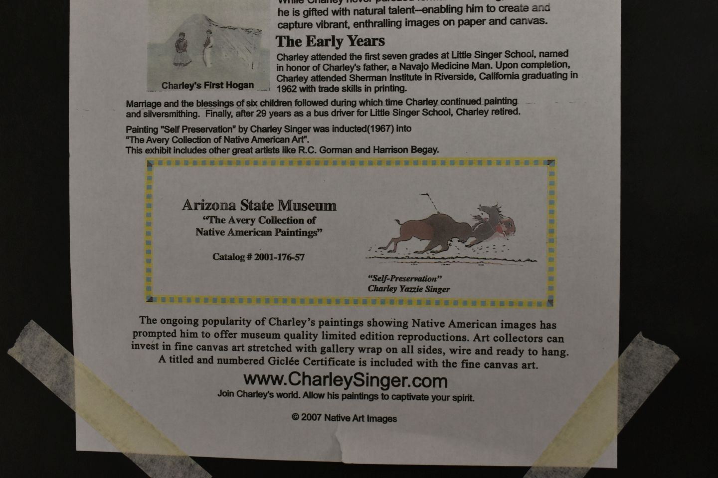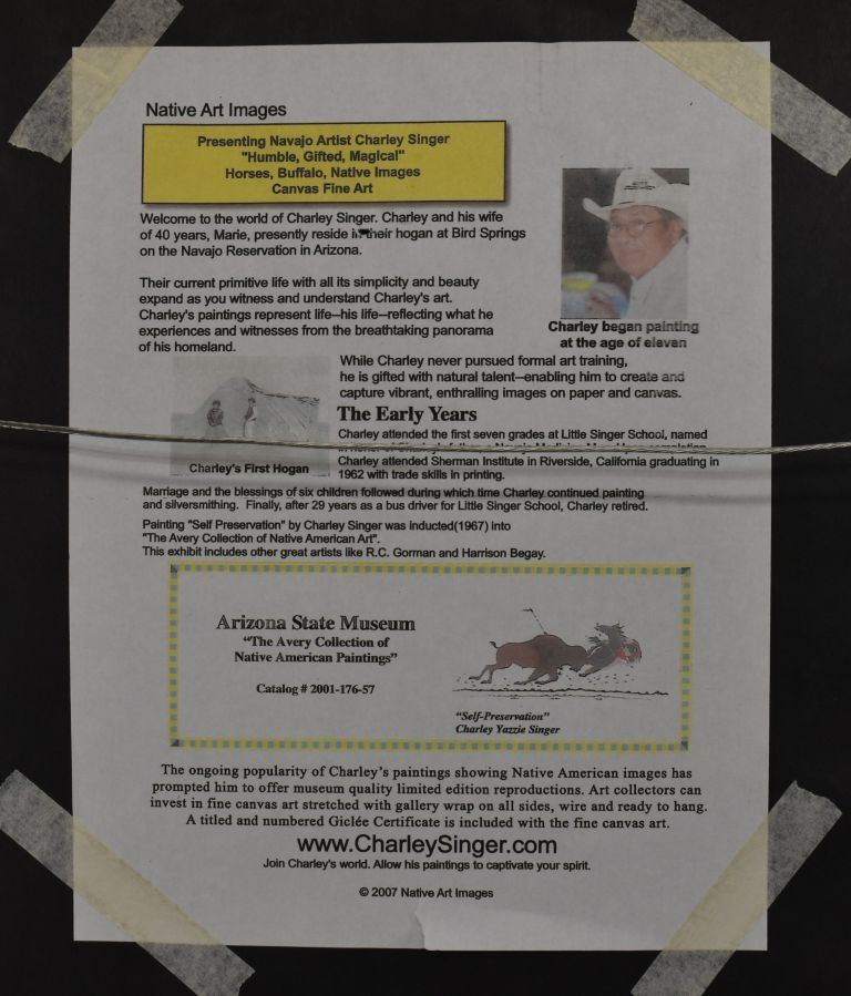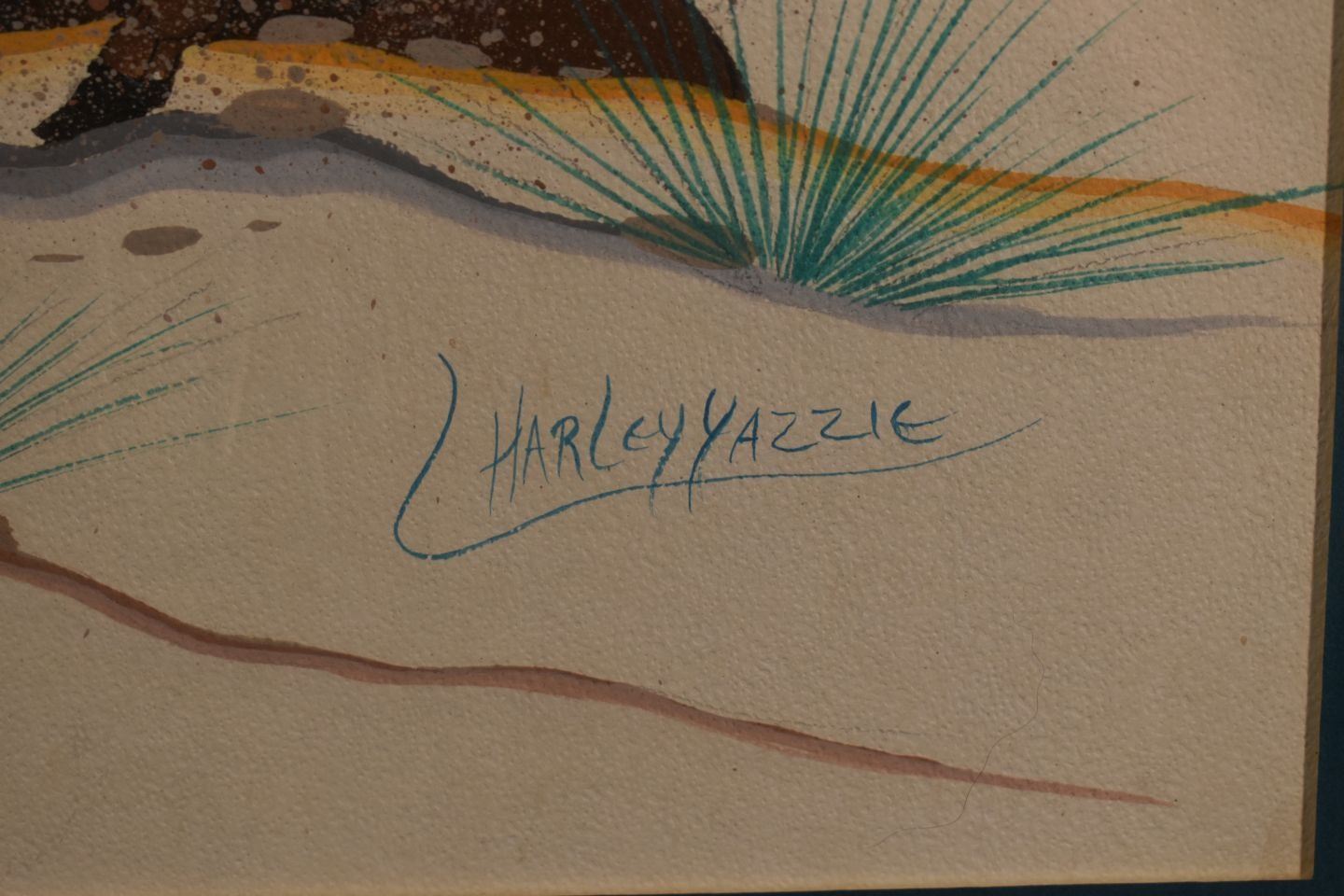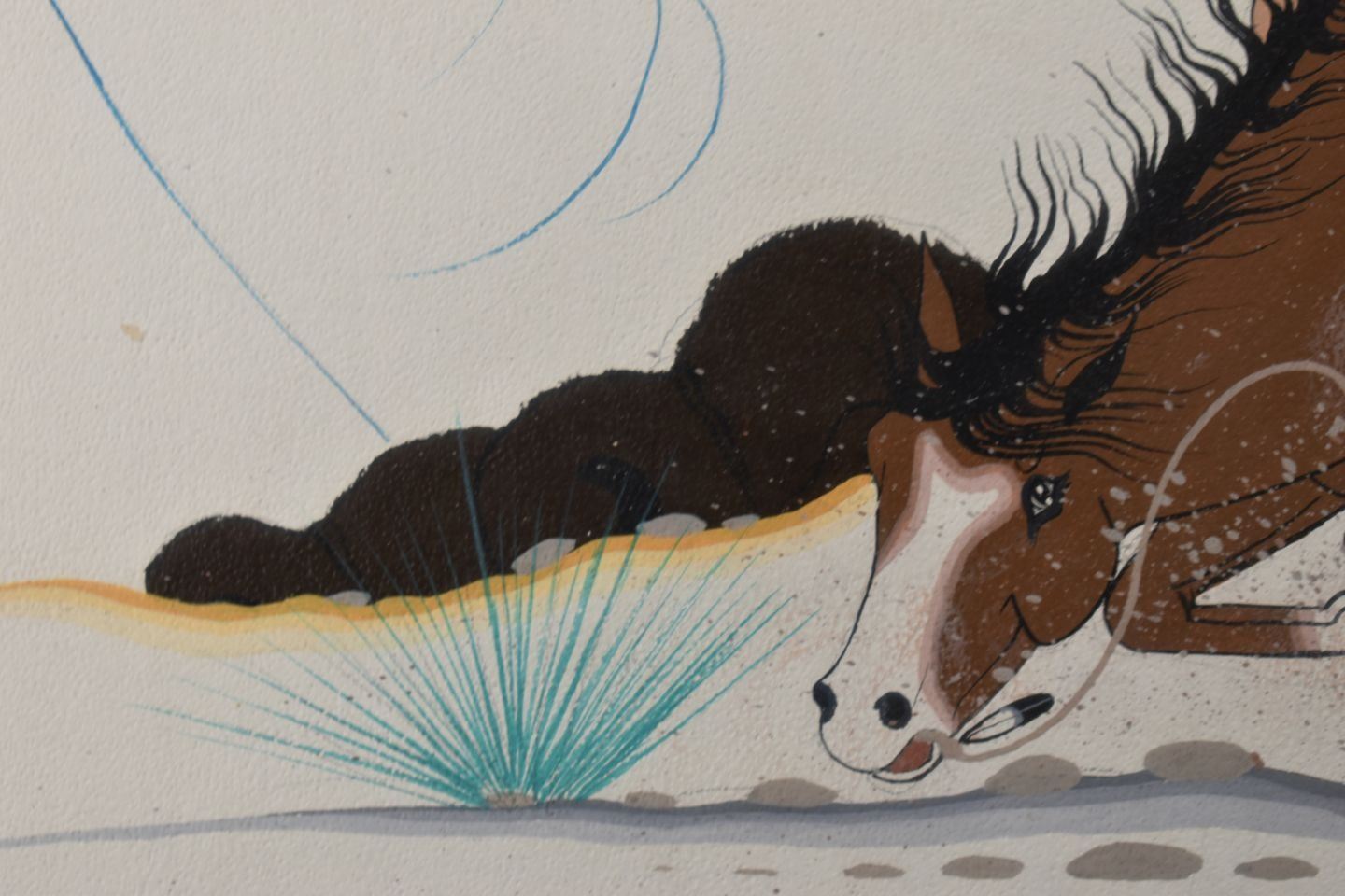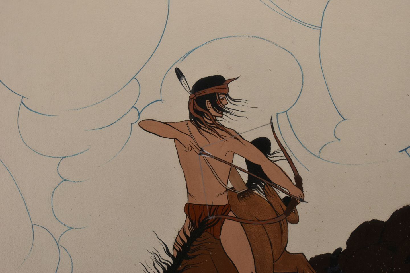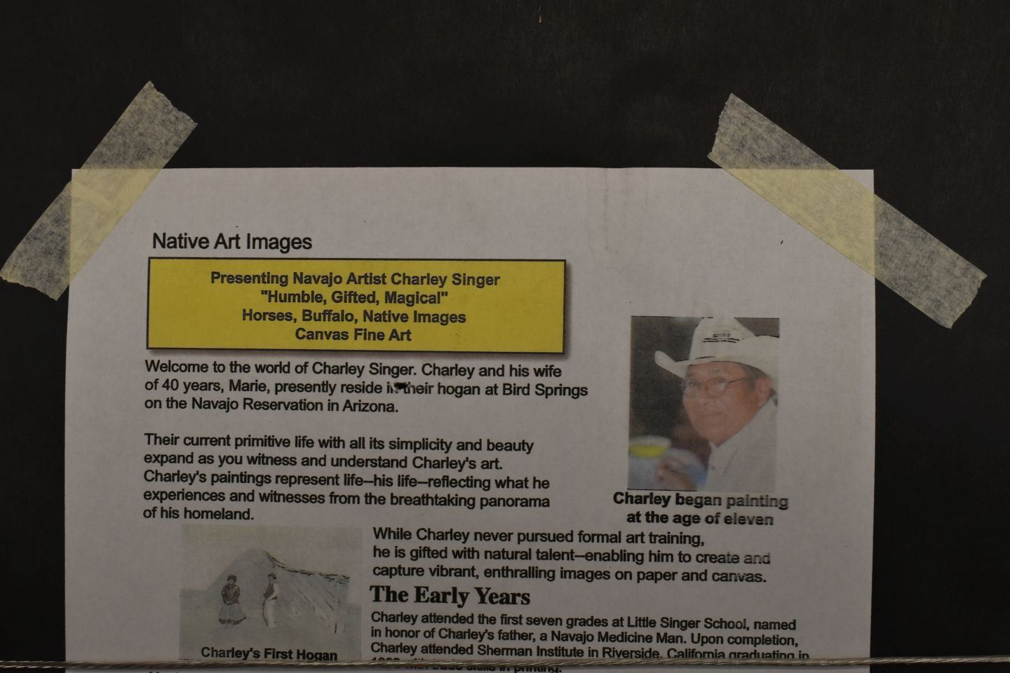 1970's Navajo, original hand painted depicting Buffalo hunt by Charley Yazzie 17.5" x 25.5" matted and framed to 25.5" x 33.5"
