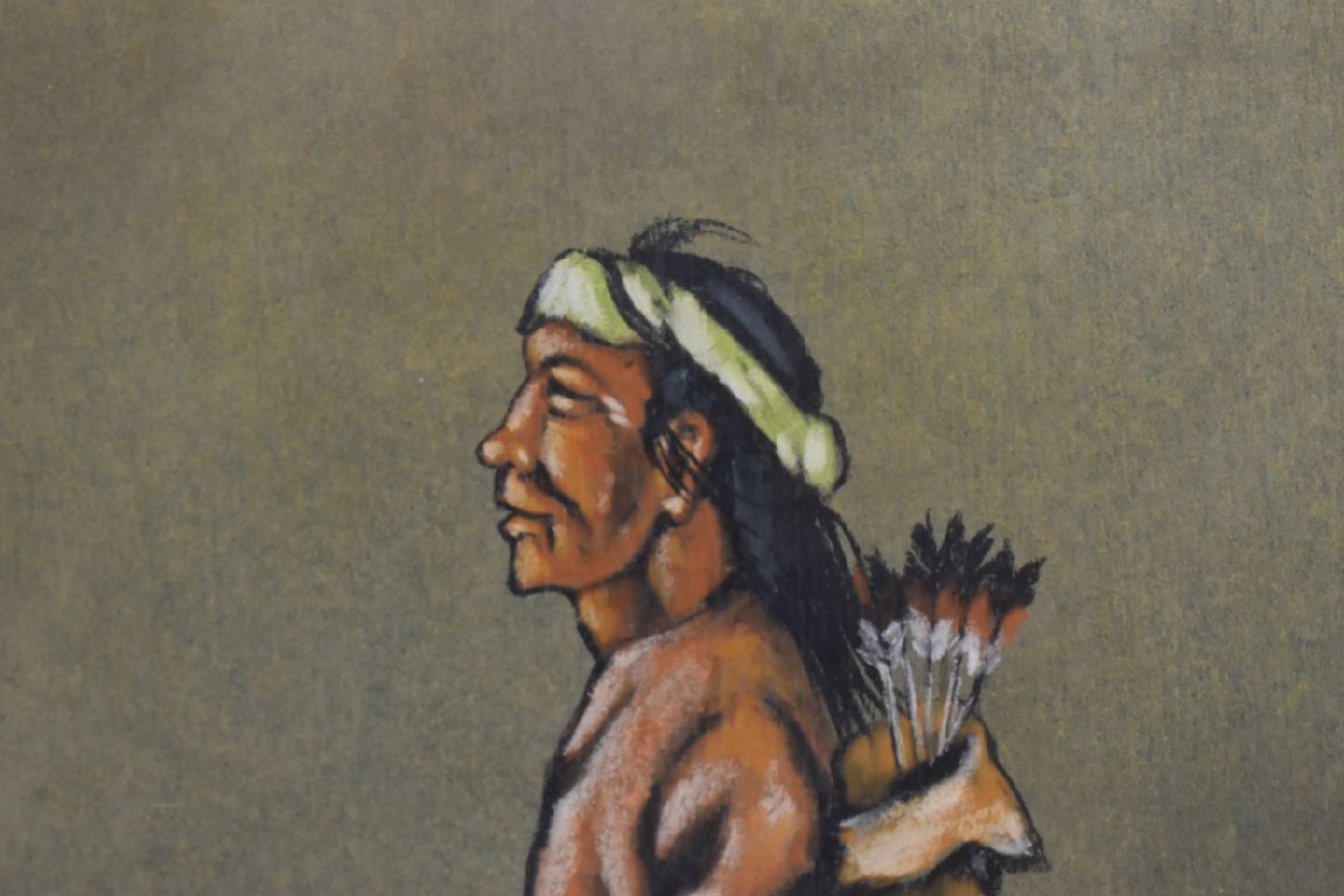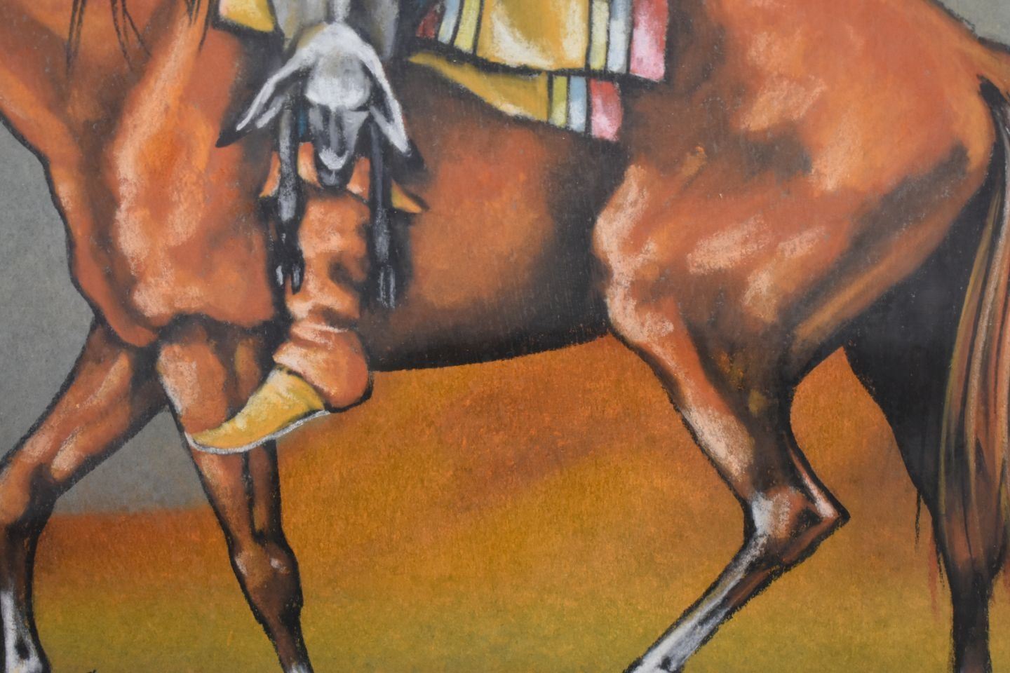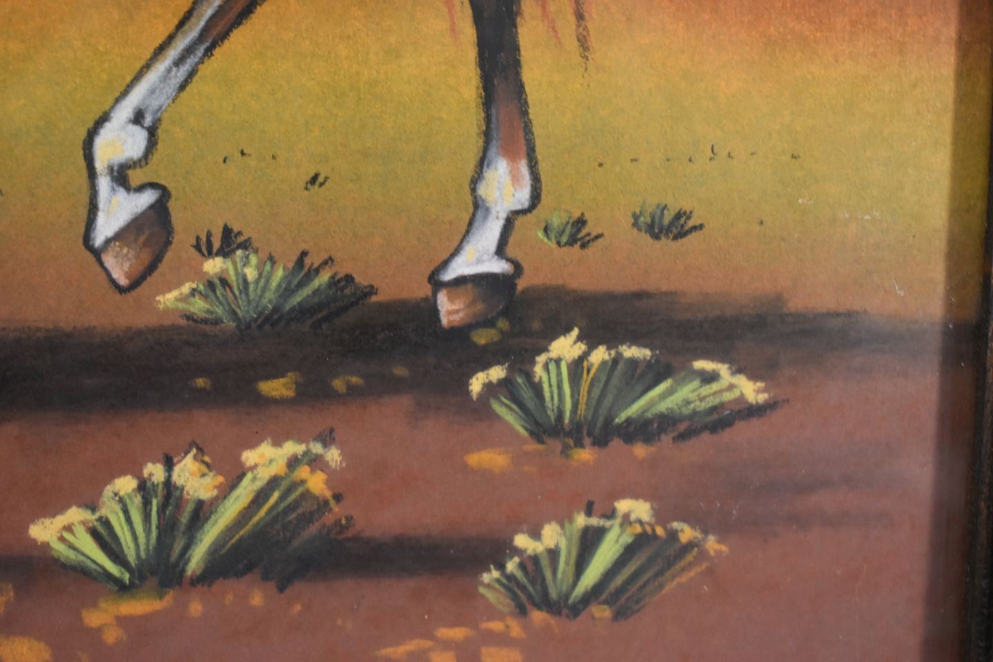 1970's Navajo. Original on paper depicting native Man on horse back, signed Guy Nez Jr, 17'' x 14'' frame size 19'' x 16''