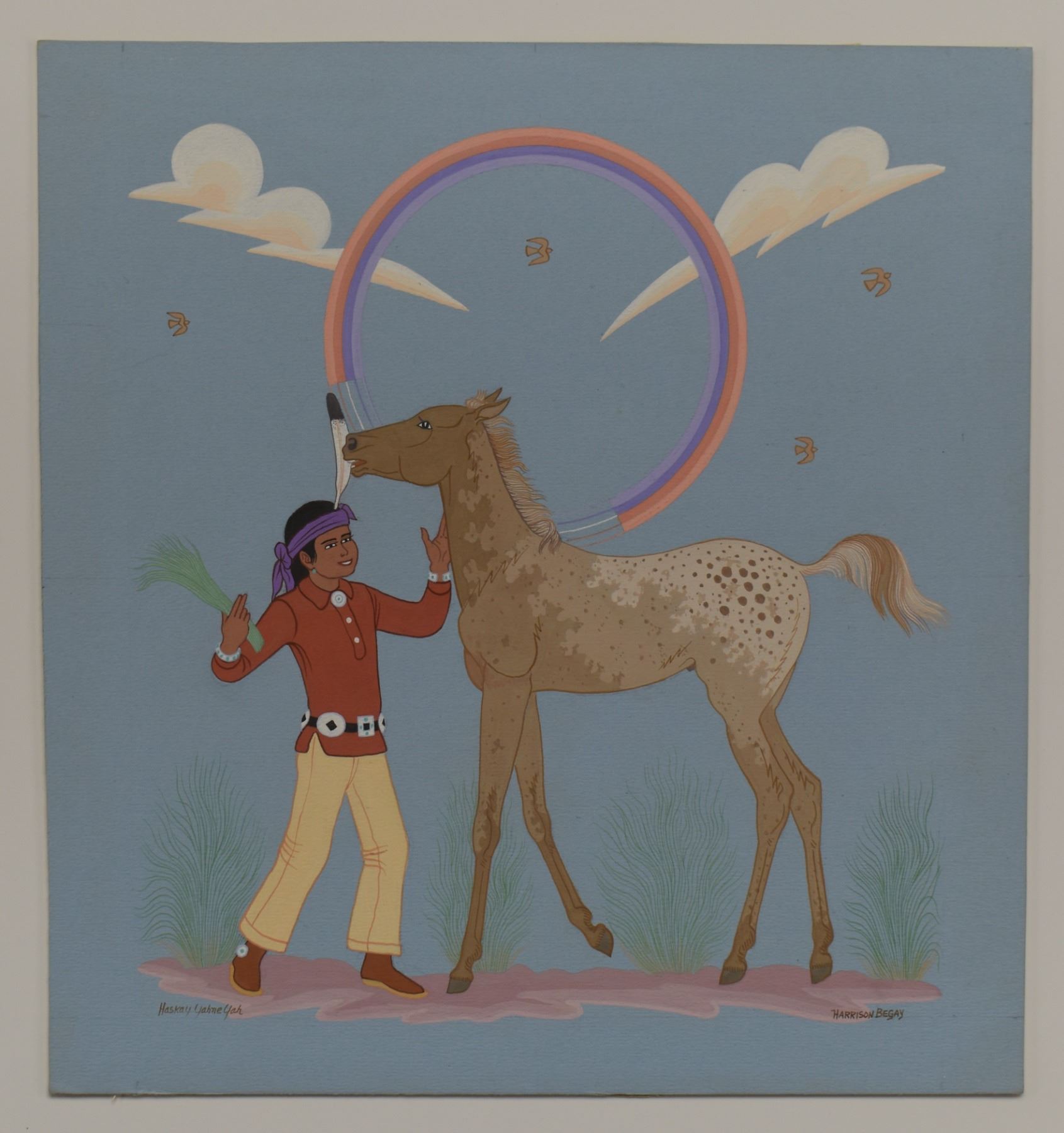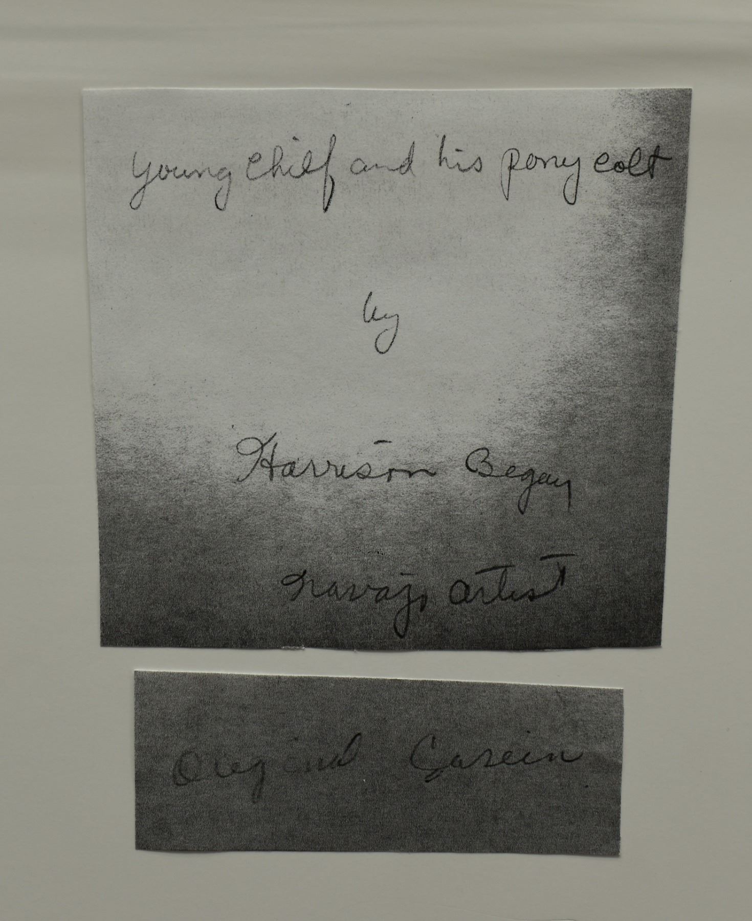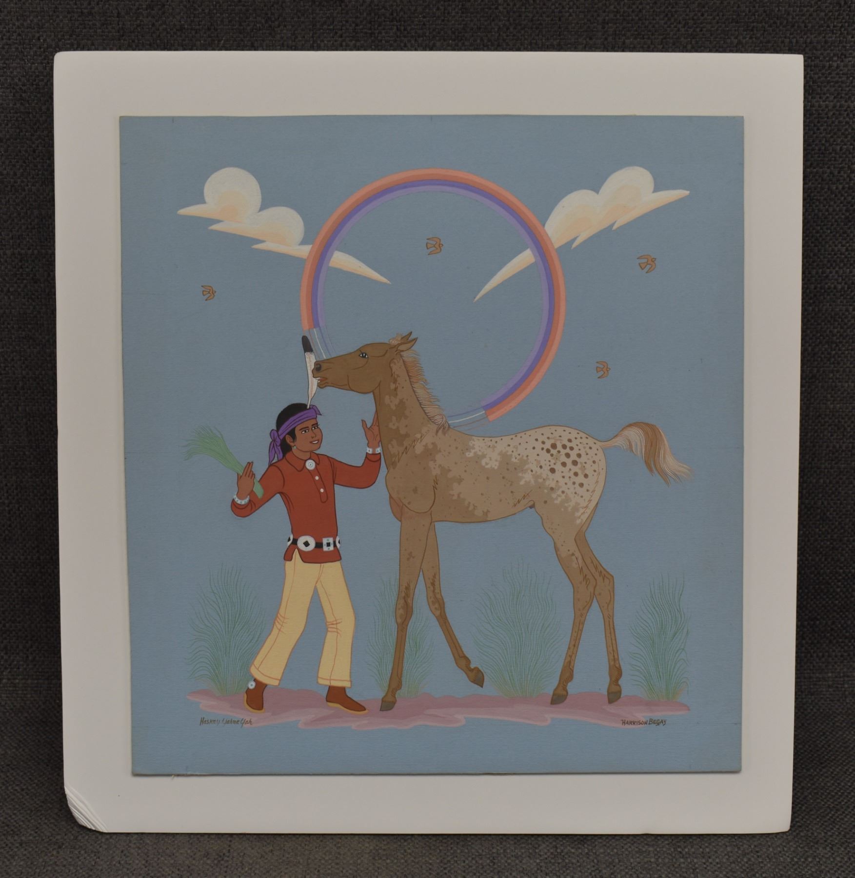 1960's Navajo. Original on artist board depicting native boy and foal. Signed Harrison Begay. 10'' x 10'' matt 13'' x 12''