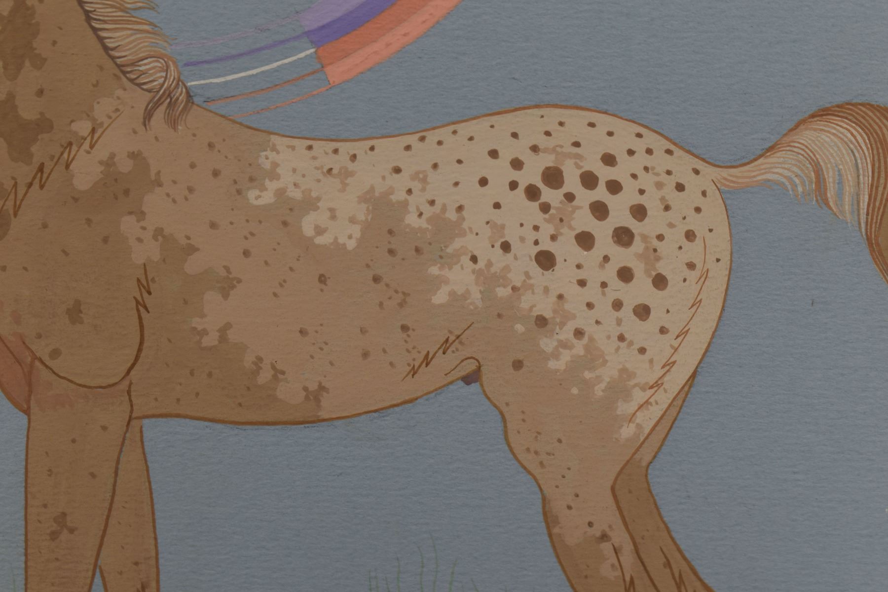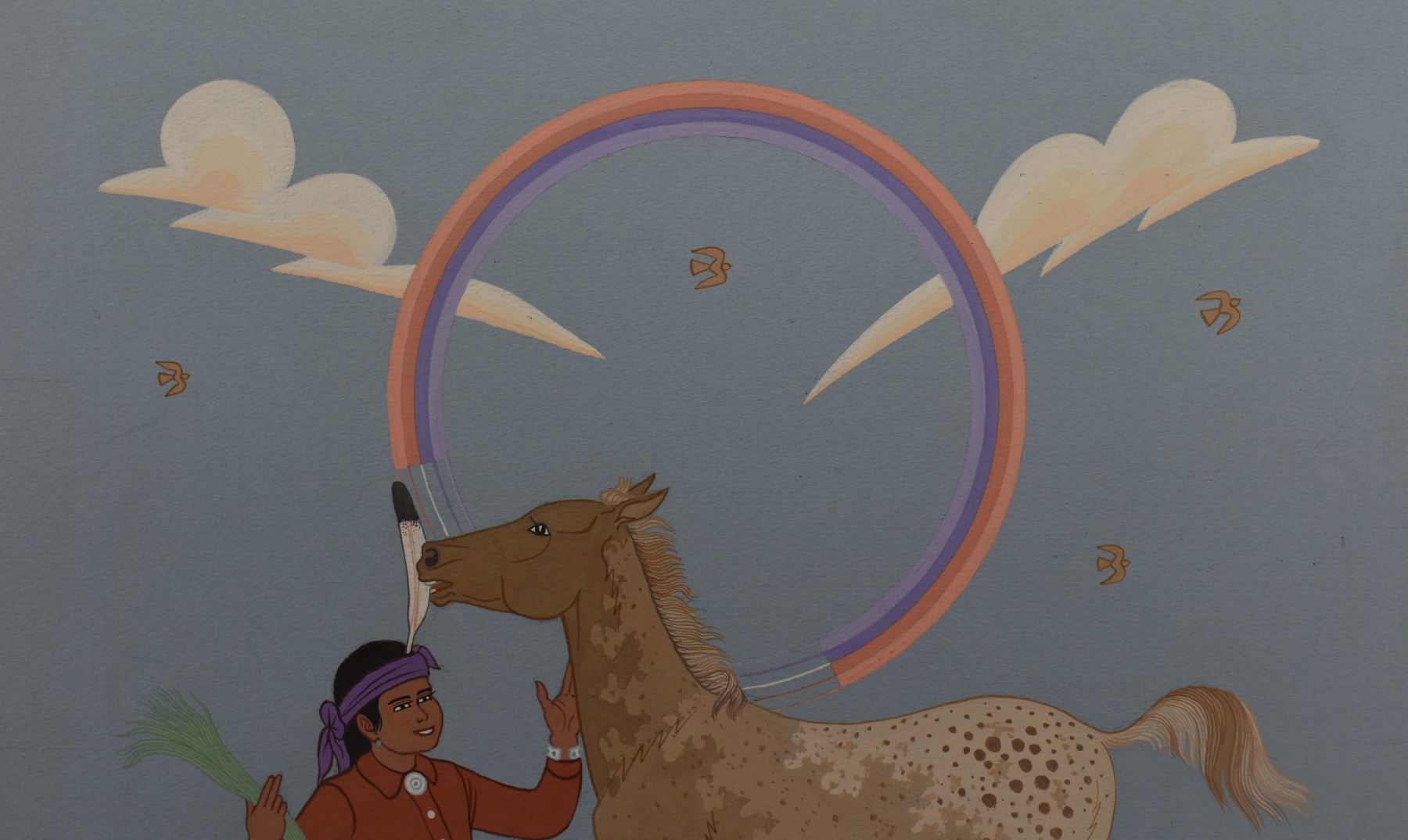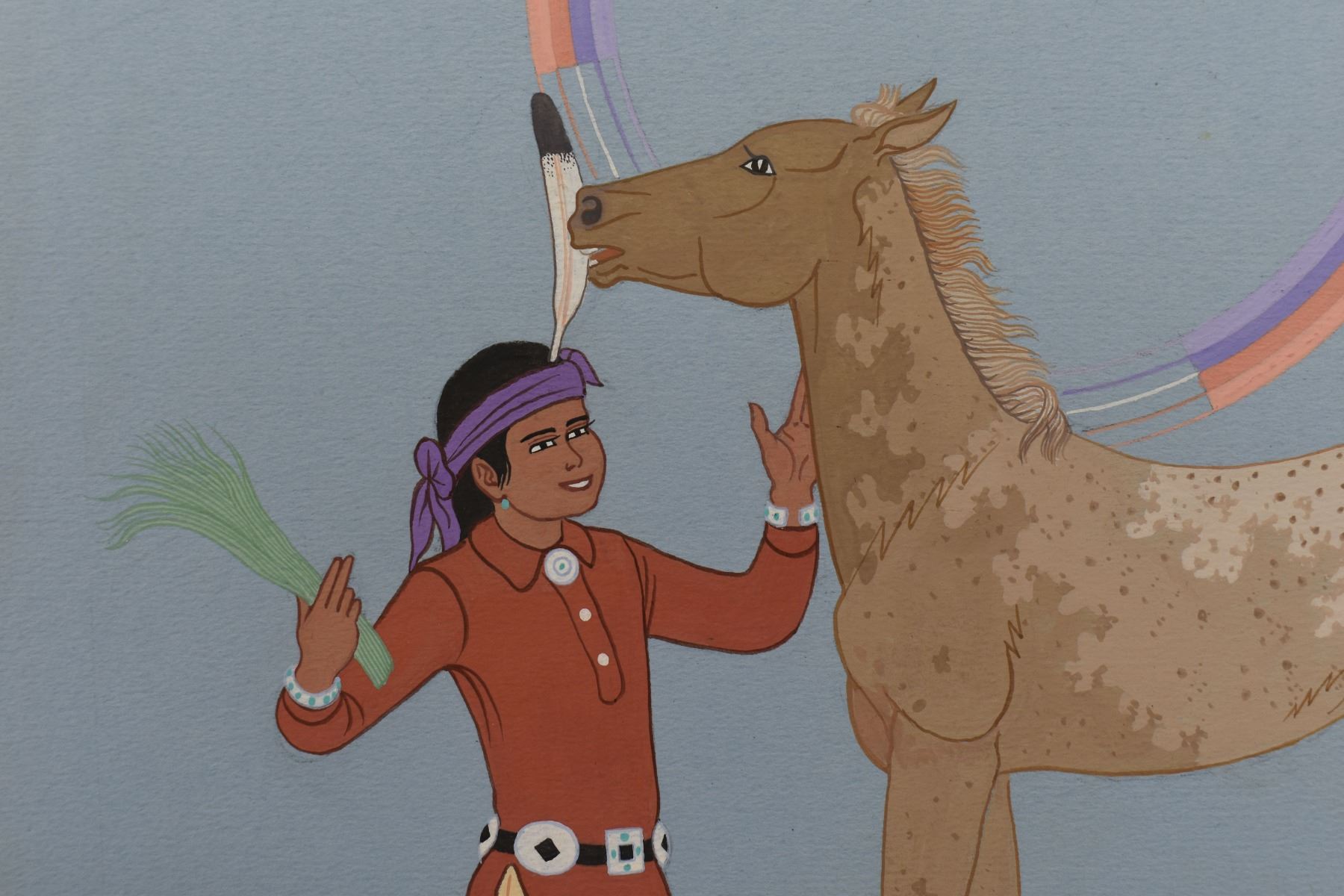 1960's Navajo. Original on artist board depicting native boy and foal. Signed Harrison Begay. 10'' x 10'' matt 13'' x 12''