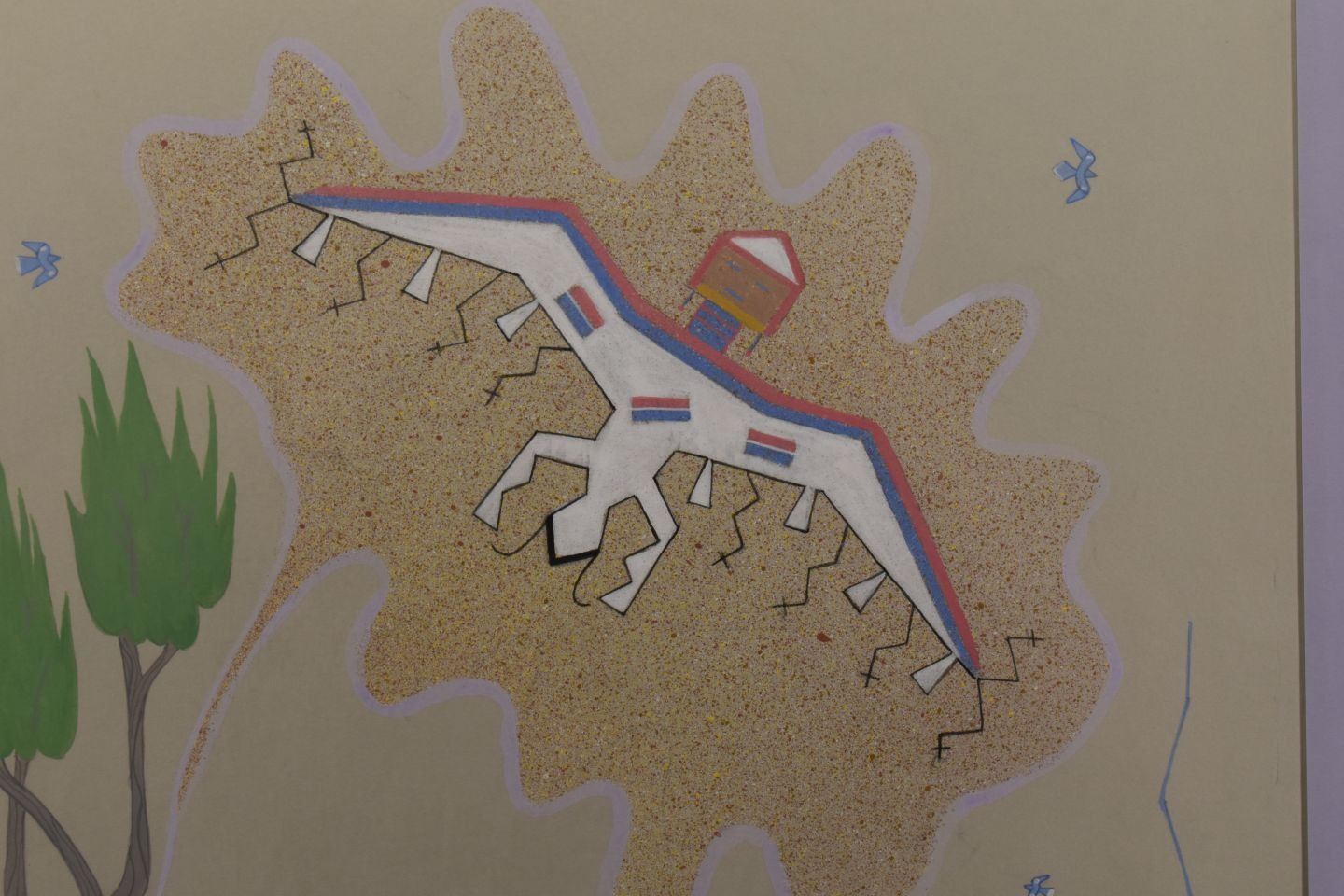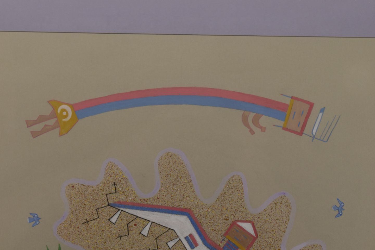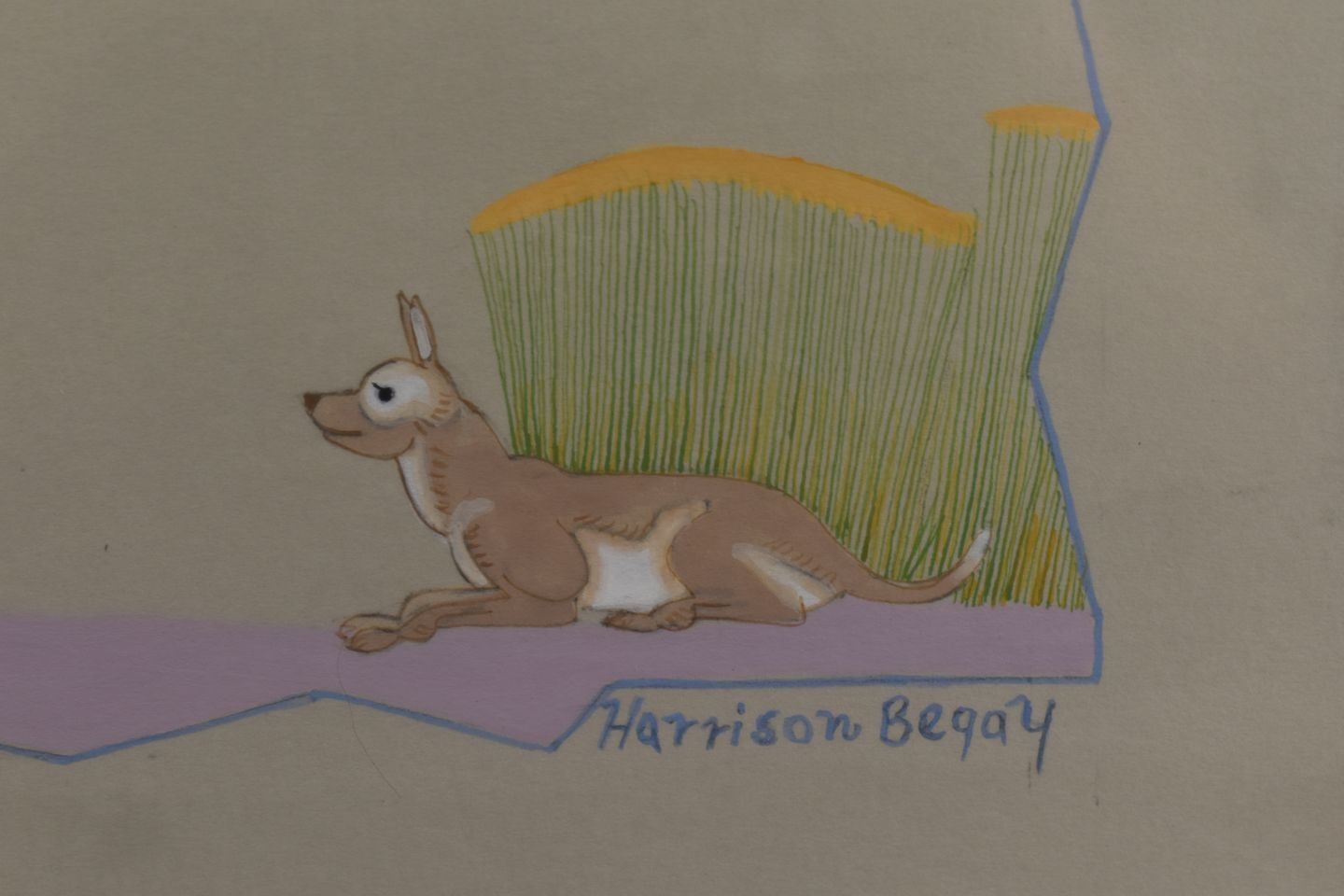 1970-80's Navajo, original hand painted depicting Navajo boy dreaming of thunderbird by Harrison Begay 18" x 14.5" matted and framed to 25.5" x 22"