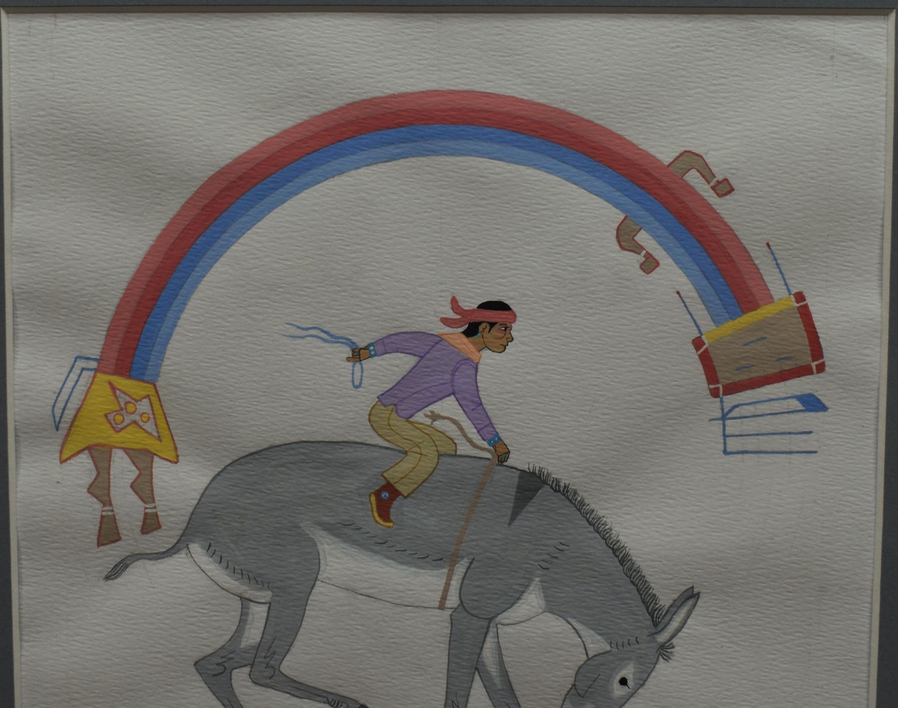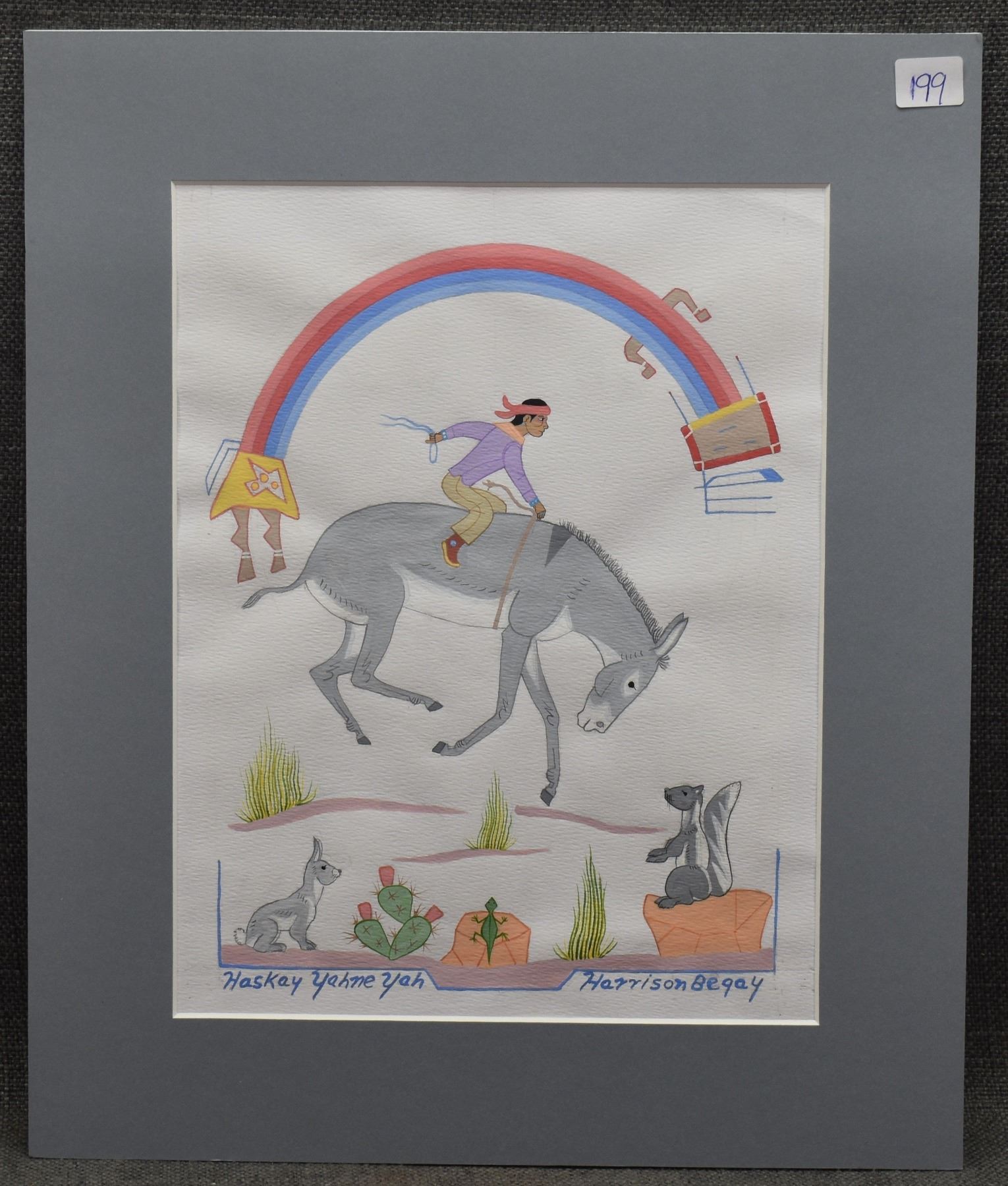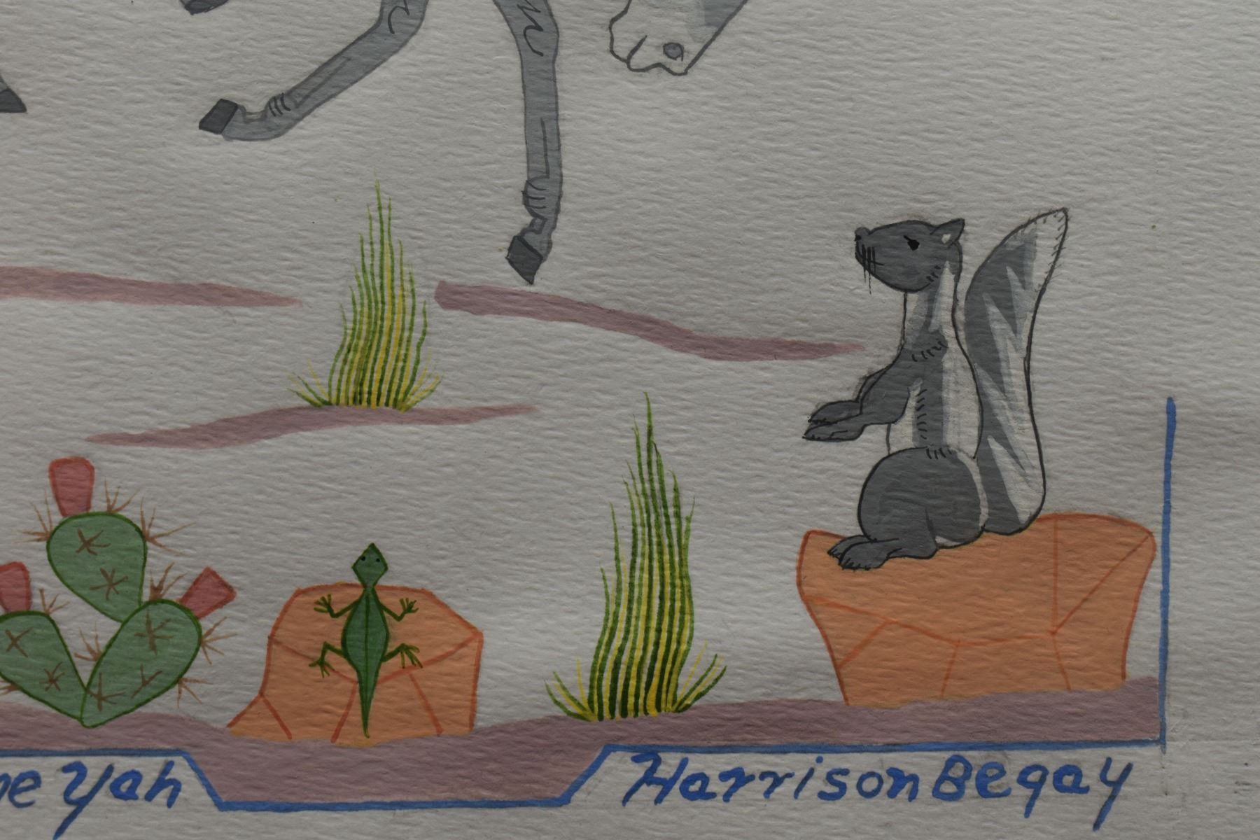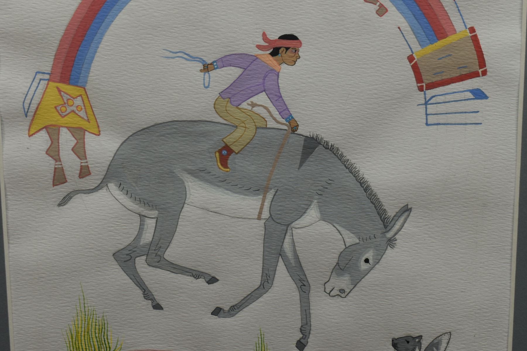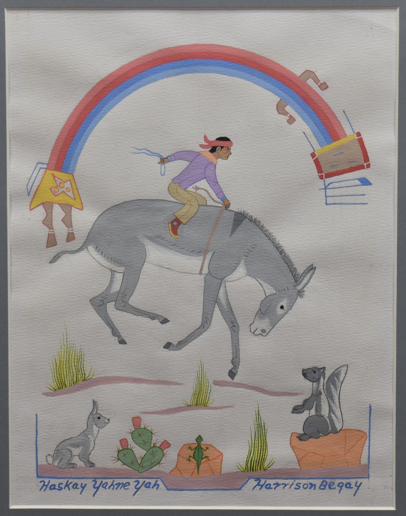 1970's Navajo Indian. Original on paper depicting native child riding horse. Signed Harrison Begay, 11'' x 8'' matt size 15'' x 12''