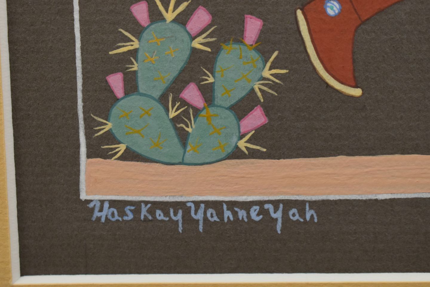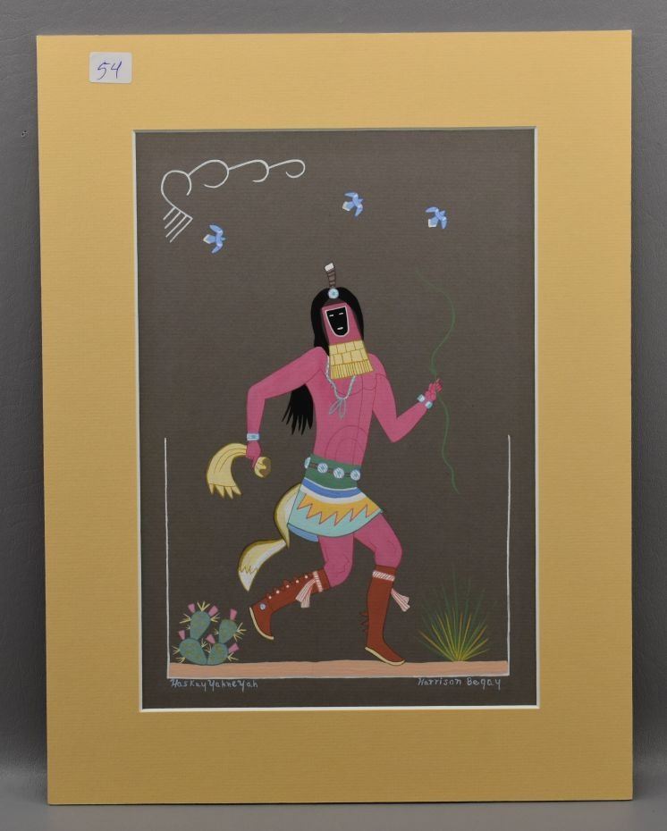 1980's Navajo, hand painted depicting pink whipper Yei by Harrison Begay 12" x 8.25" matted to 16" x 12.25"