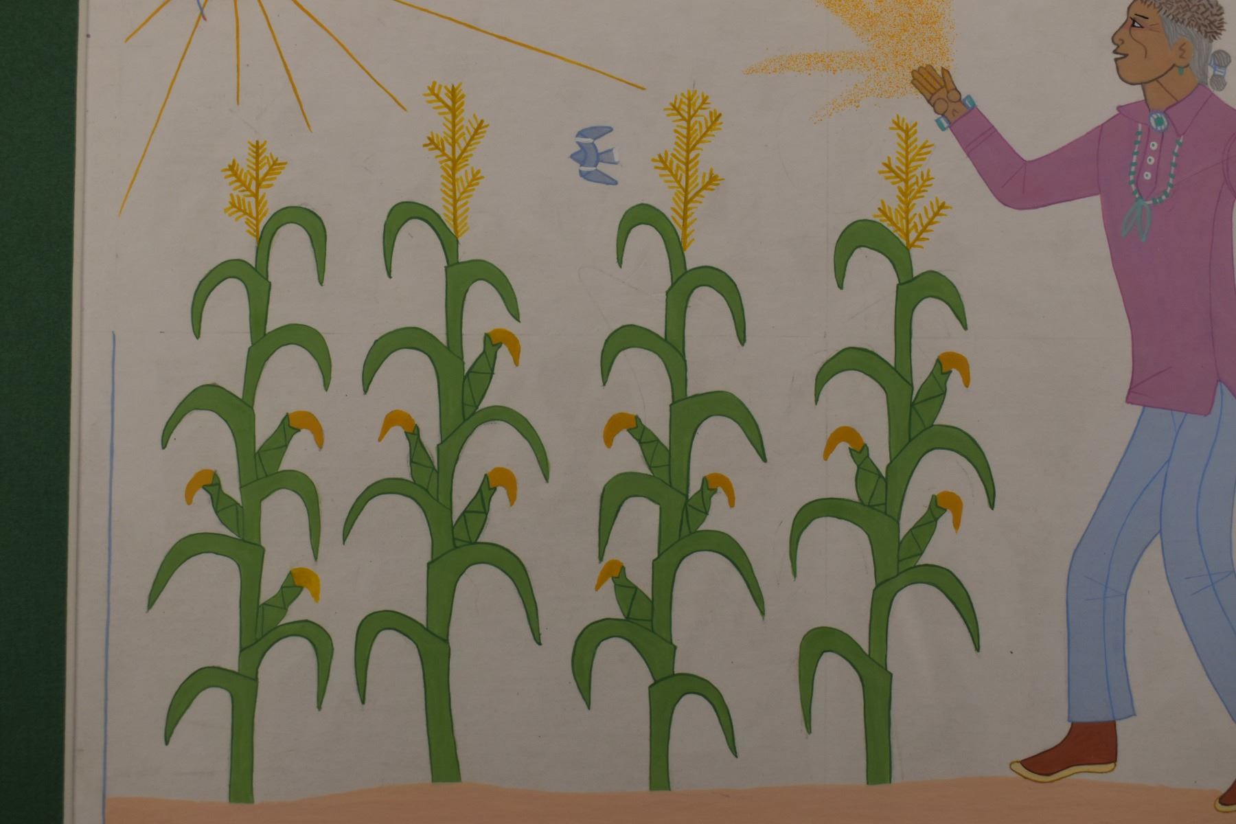 1970's Navajo. Original on paper depicting native and corn stalks. Signed Harrison Begay. 9'' x 12'' frame size 16'' x 19''