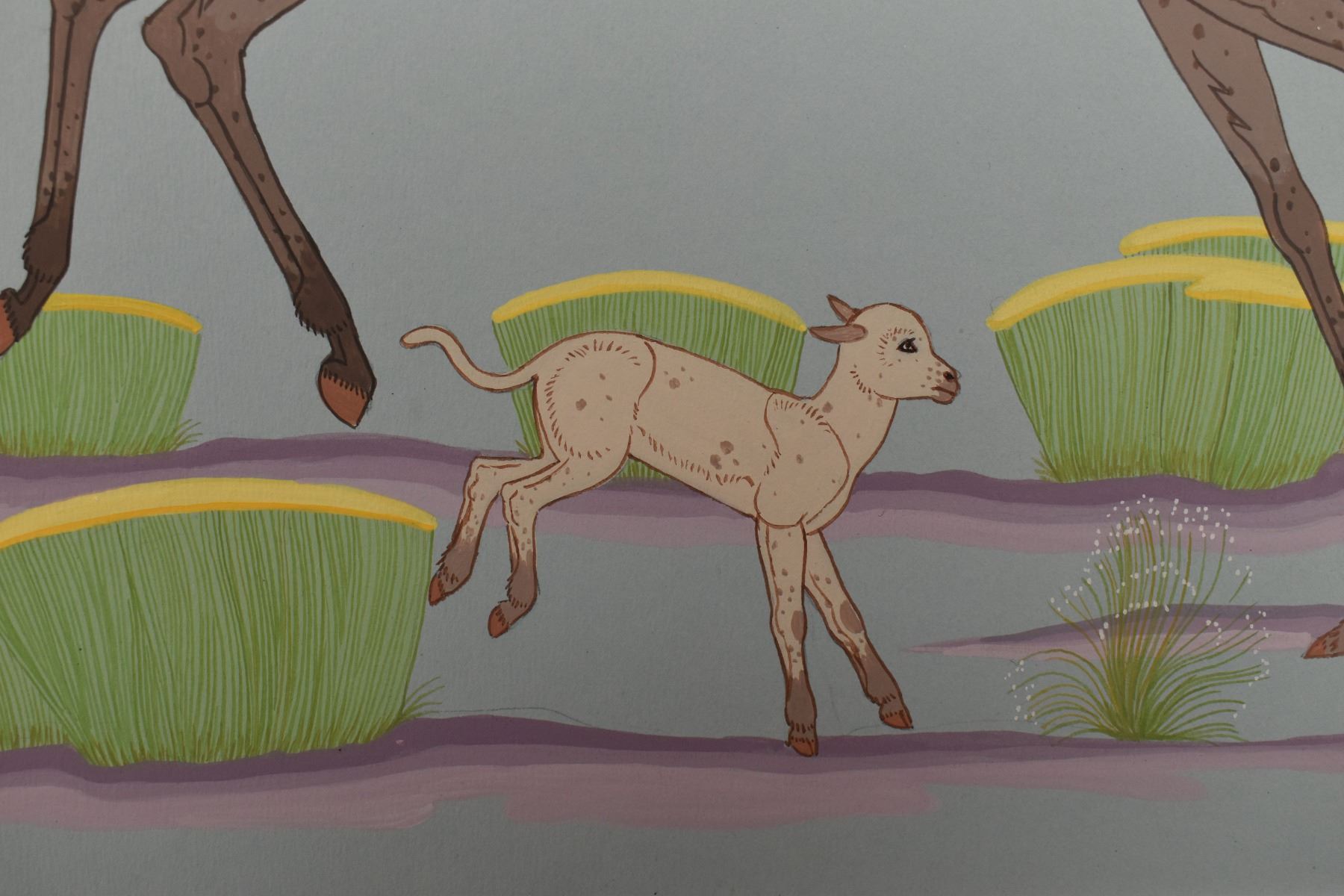 1970's Navajo, original hand painted depicting Navajo woman on horseback with lambs by Harrison Begay 18" x 14.5" matted to 22" x 19"