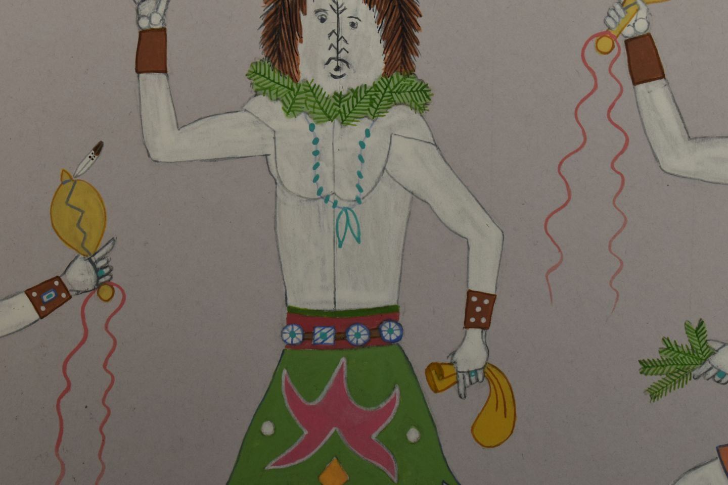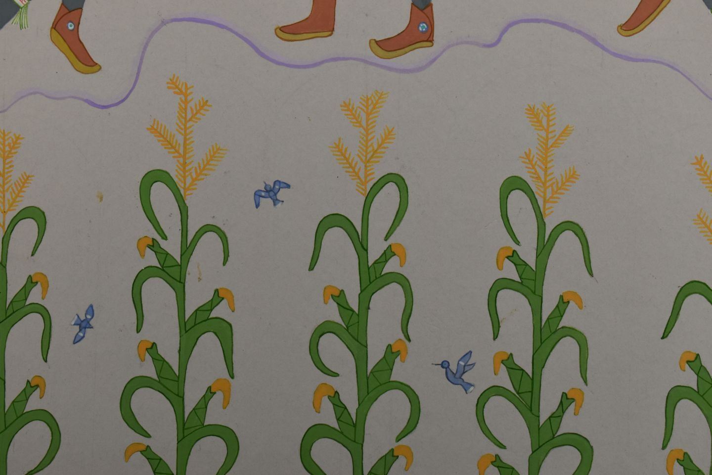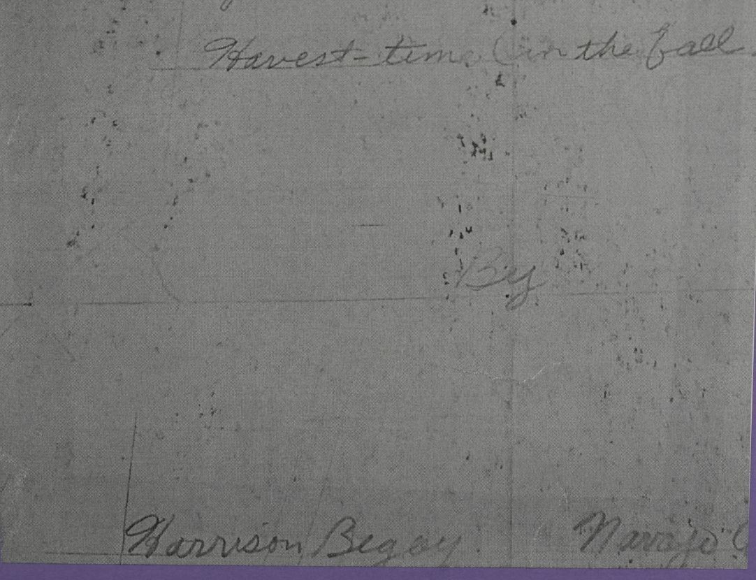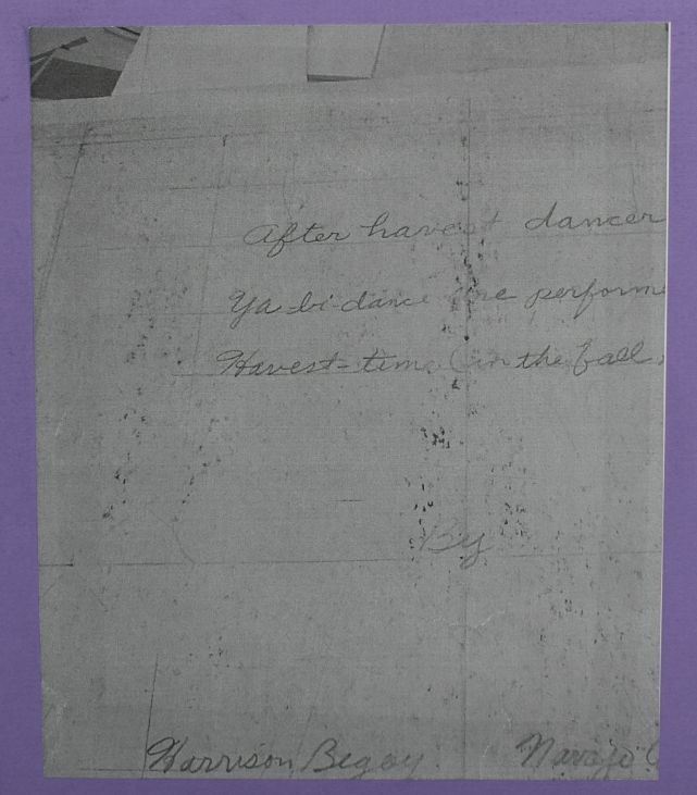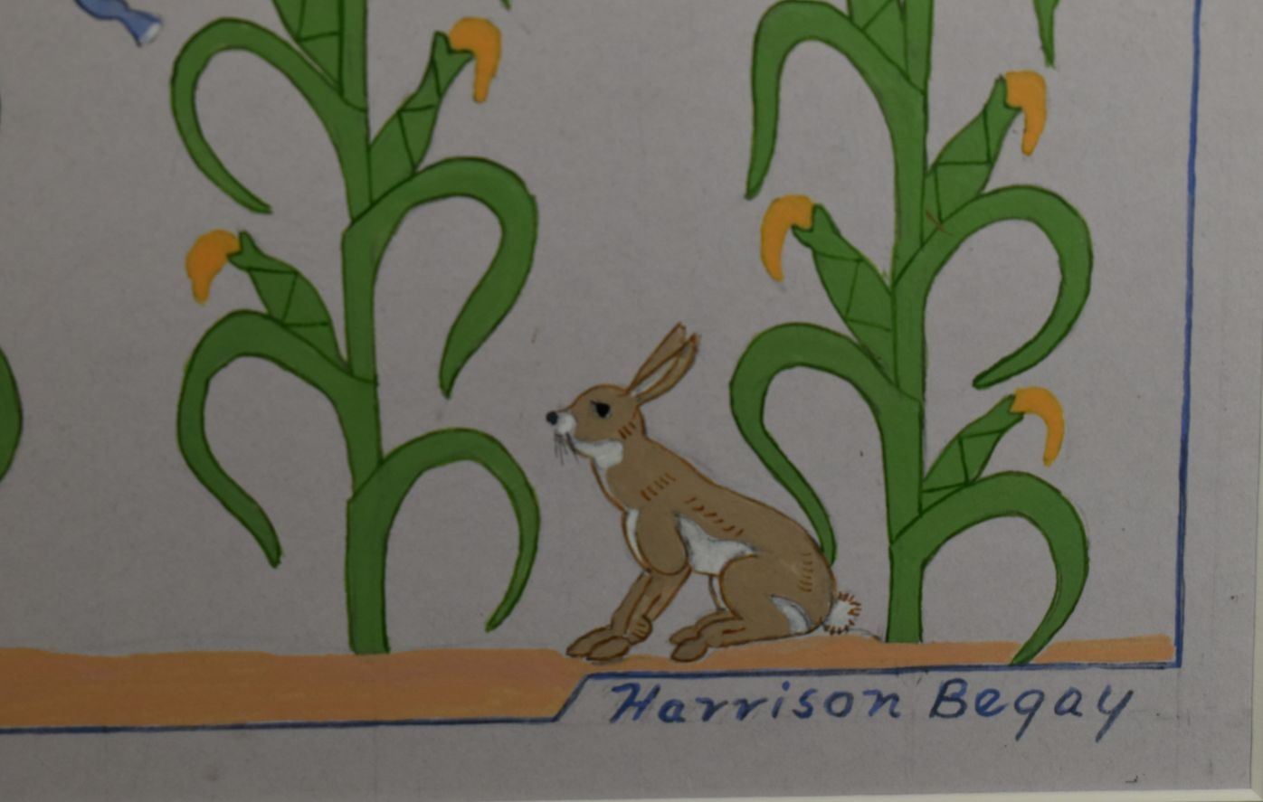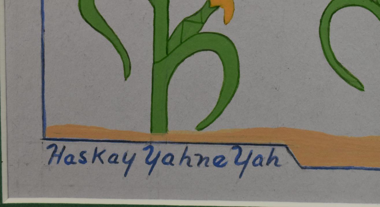 1970's Navajo, original hand painted depicting Navajo Yei Bi Chei in a corn field. Signed Harrison Begay 18" x 14" matted to 23" x 19"