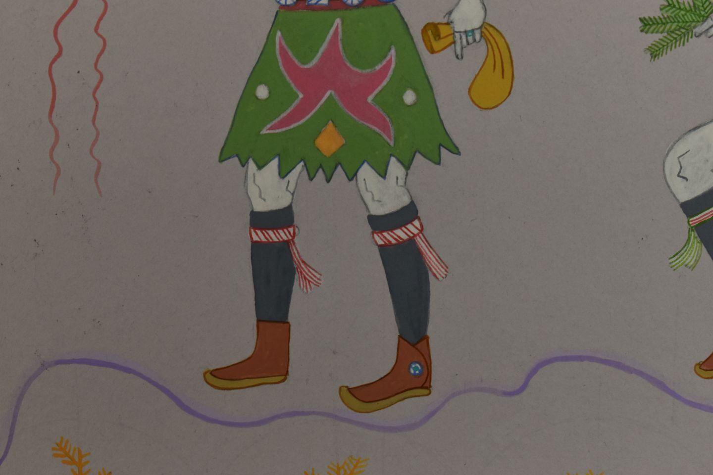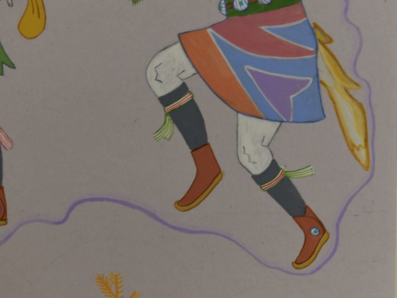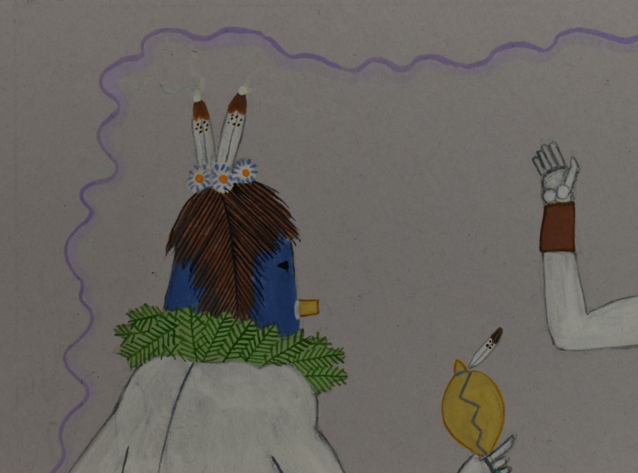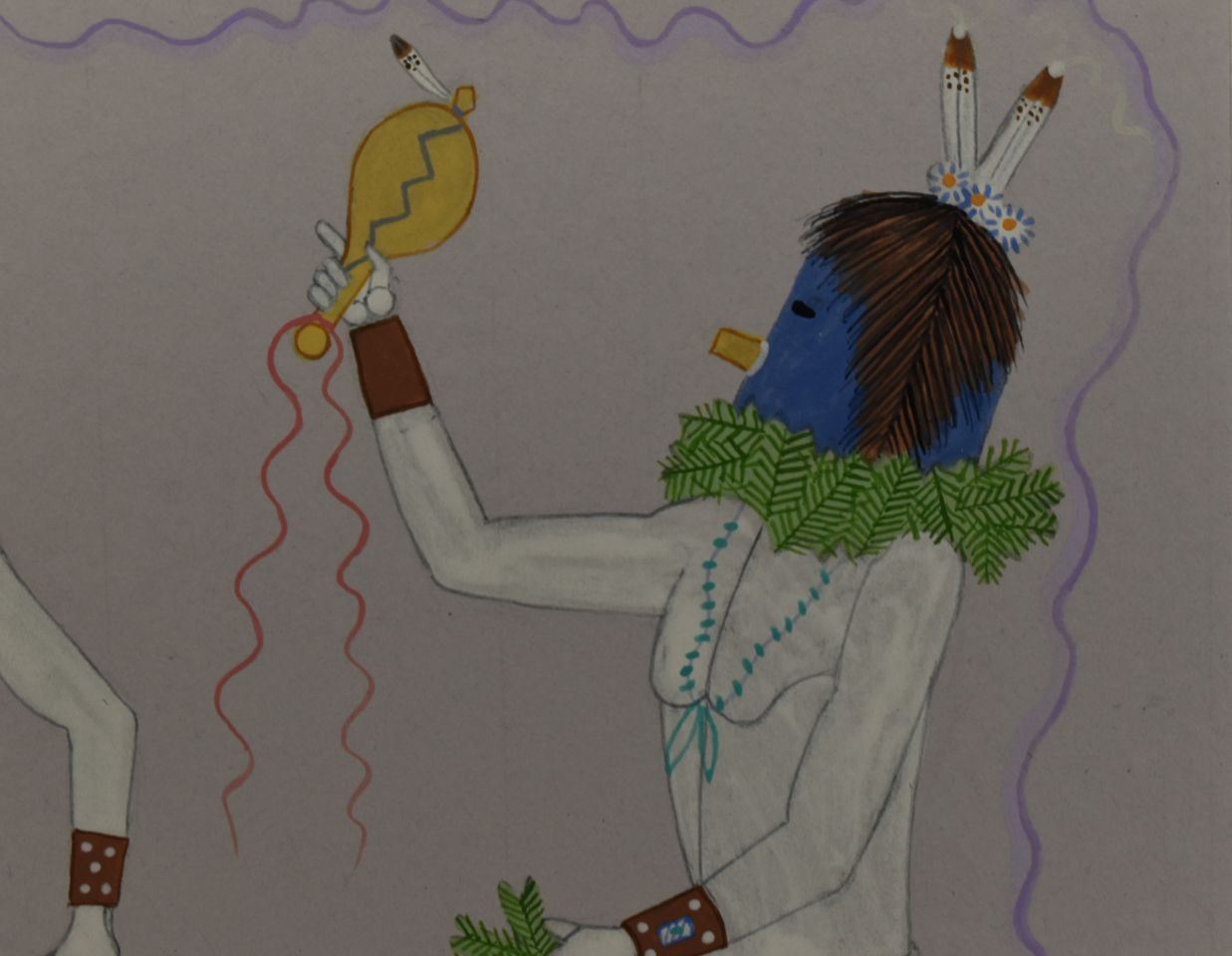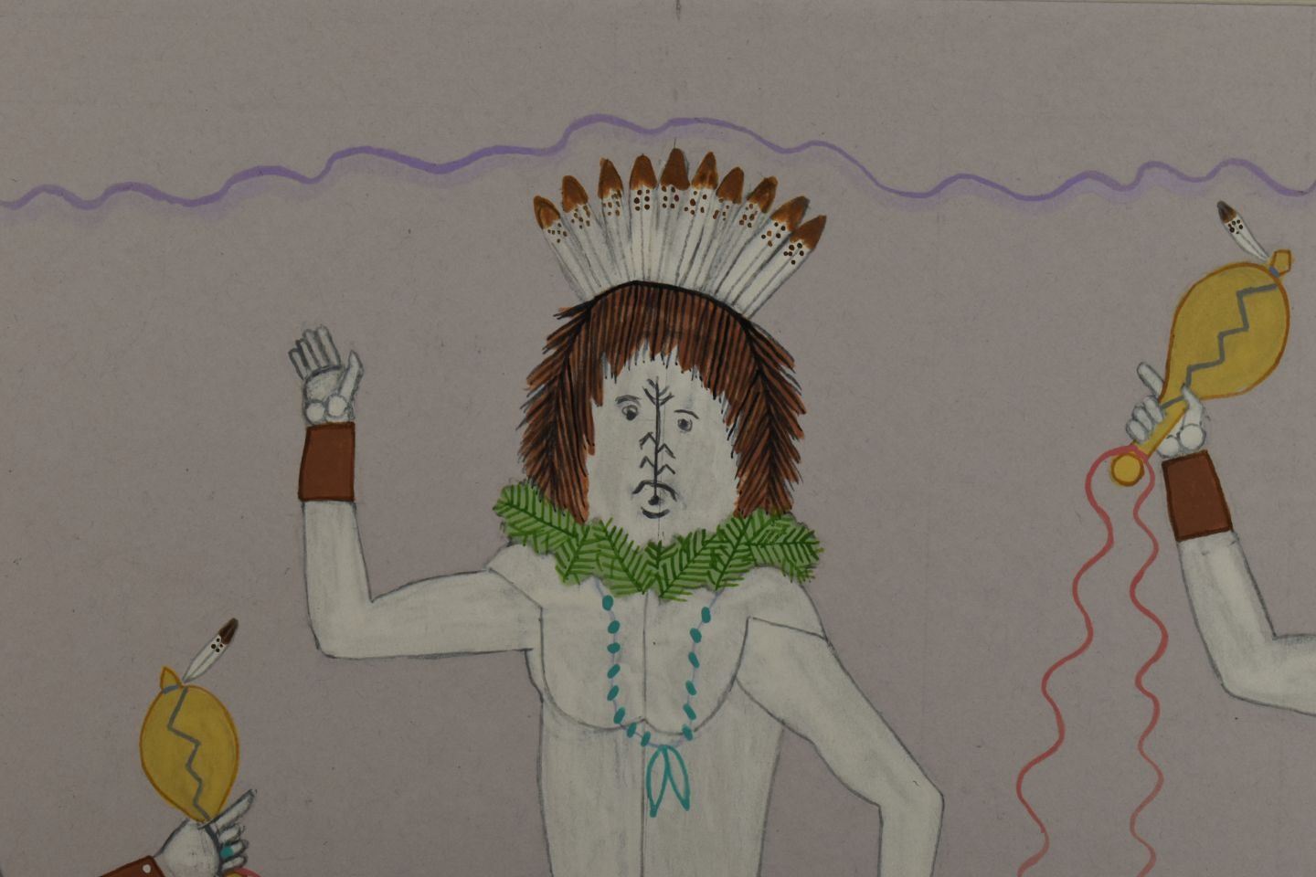 1970's Navajo, original hand painted depicting Navajo Yei Bi Chei in a corn field. Signed Harrison Begay 18" x 14" matted to 23" x 19"