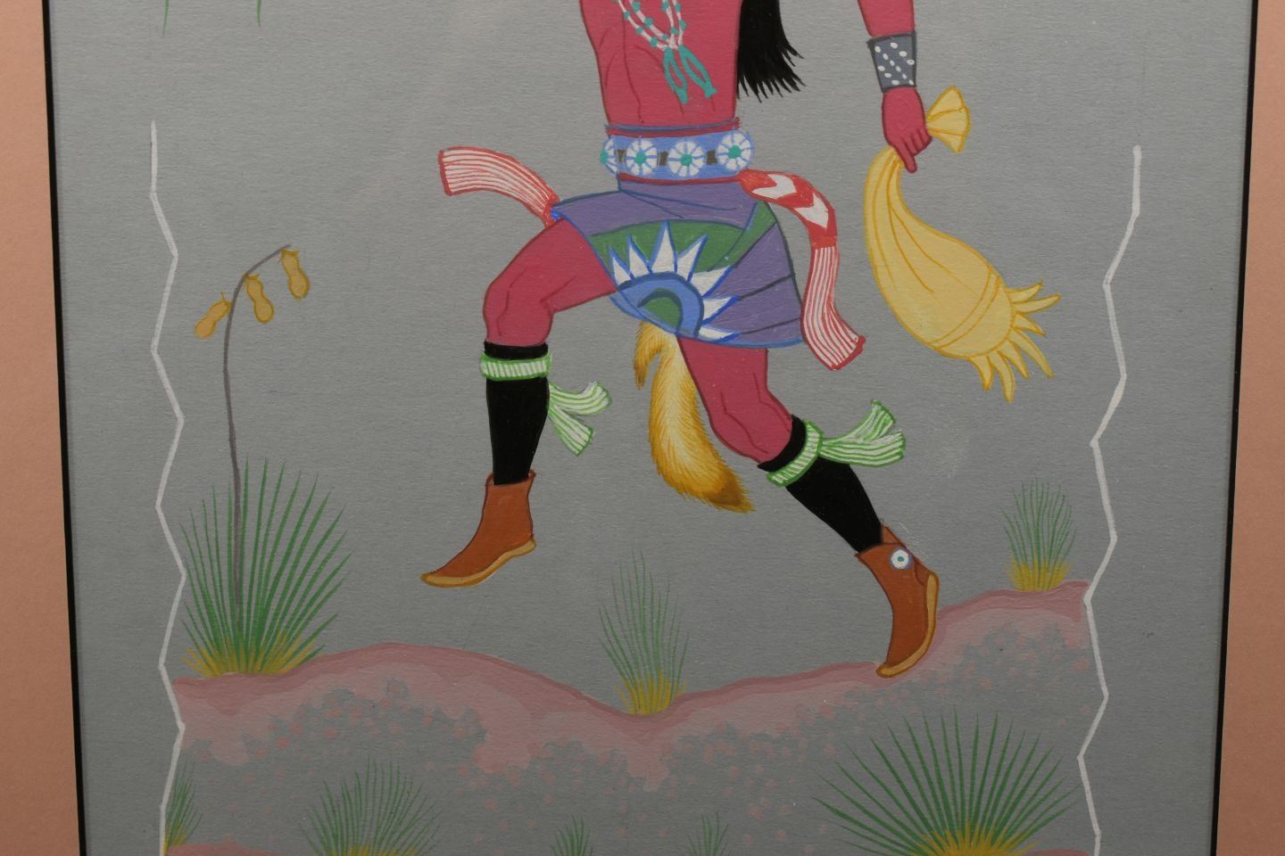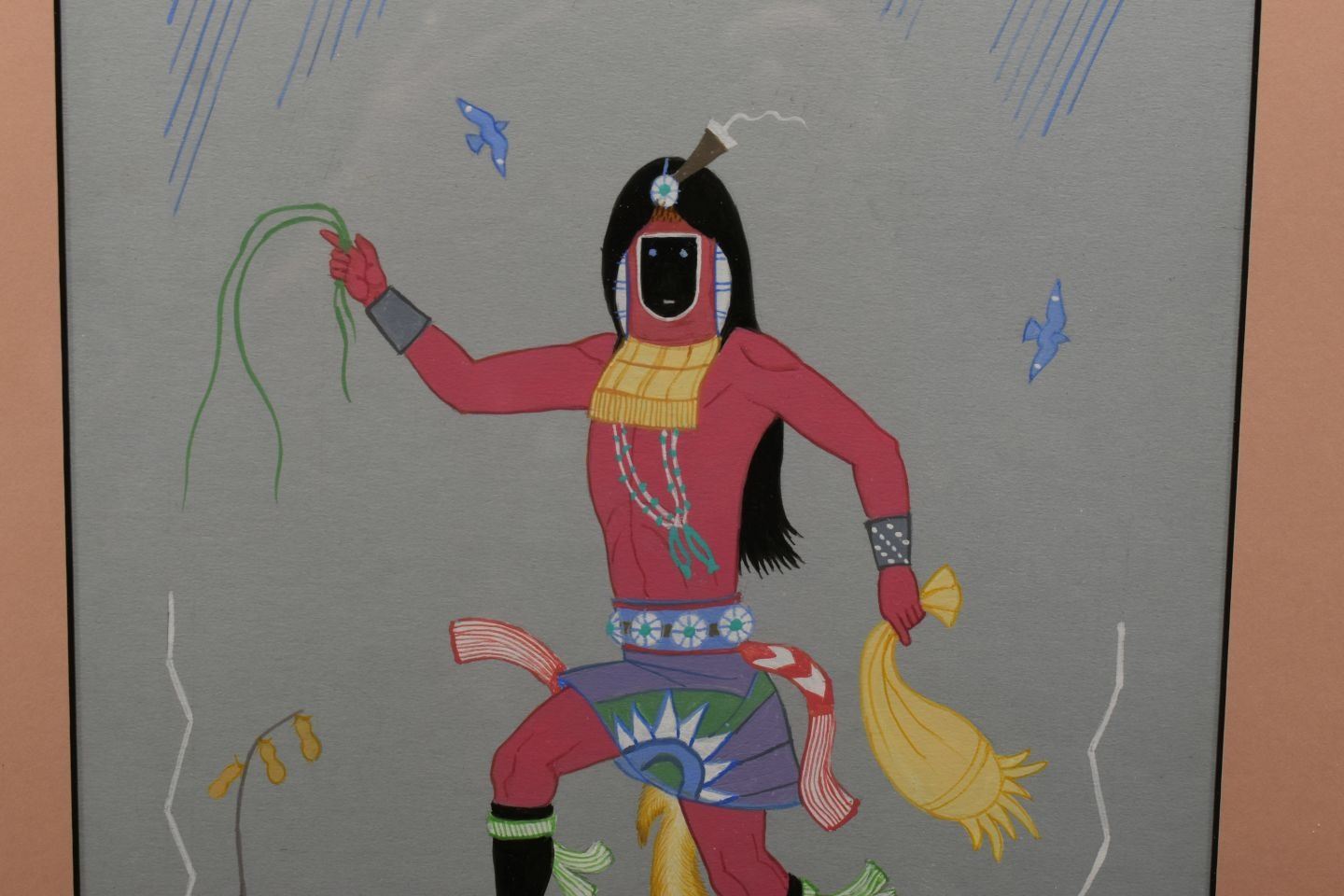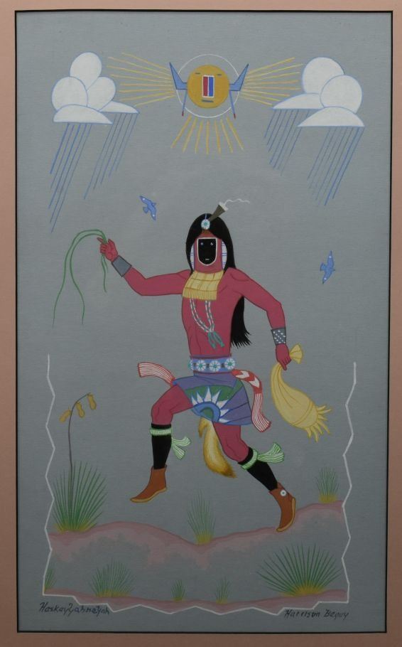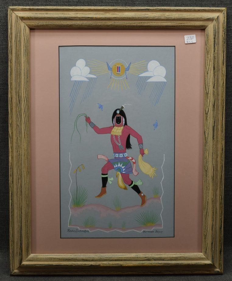 1970's Navajo. Original on paper depicting night chant god. Signed Harrison Begay. 15'' x 9'' Frame size 21'' x 17''