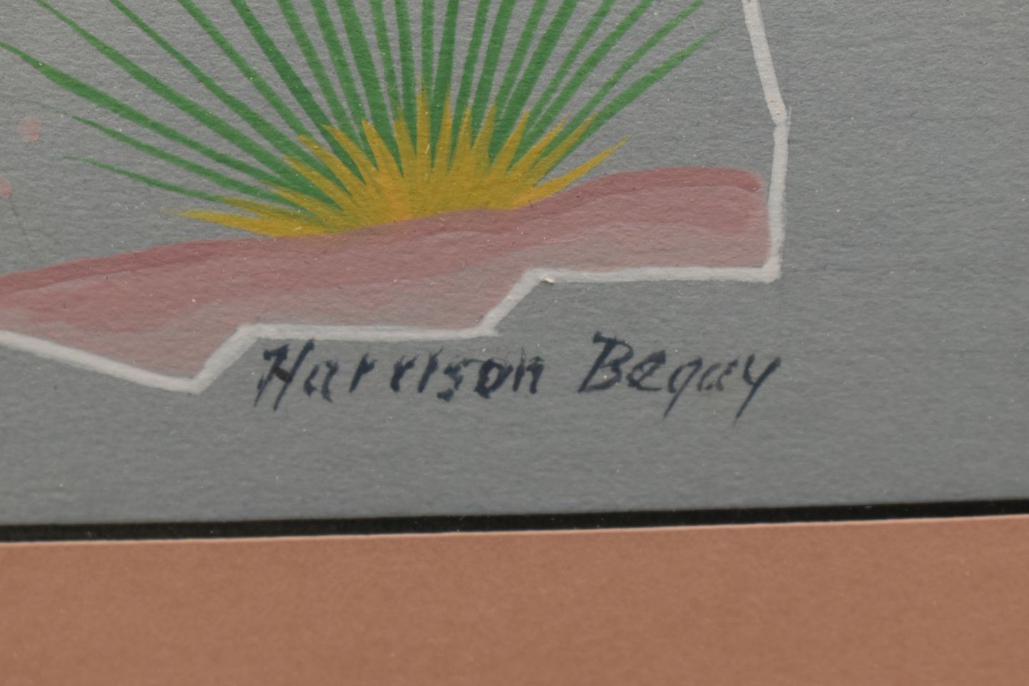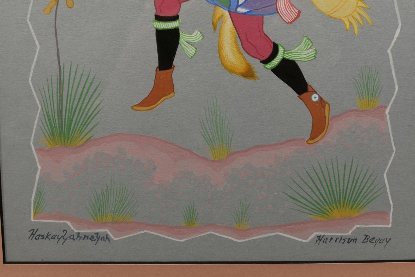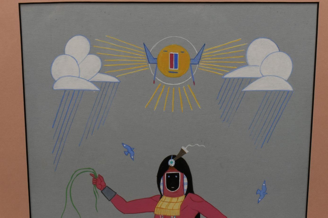 1970's Navajo. Original on paper depicting night chant god. Signed Harrison Begay. 15'' x 9'' Frame size 21'' x 17''