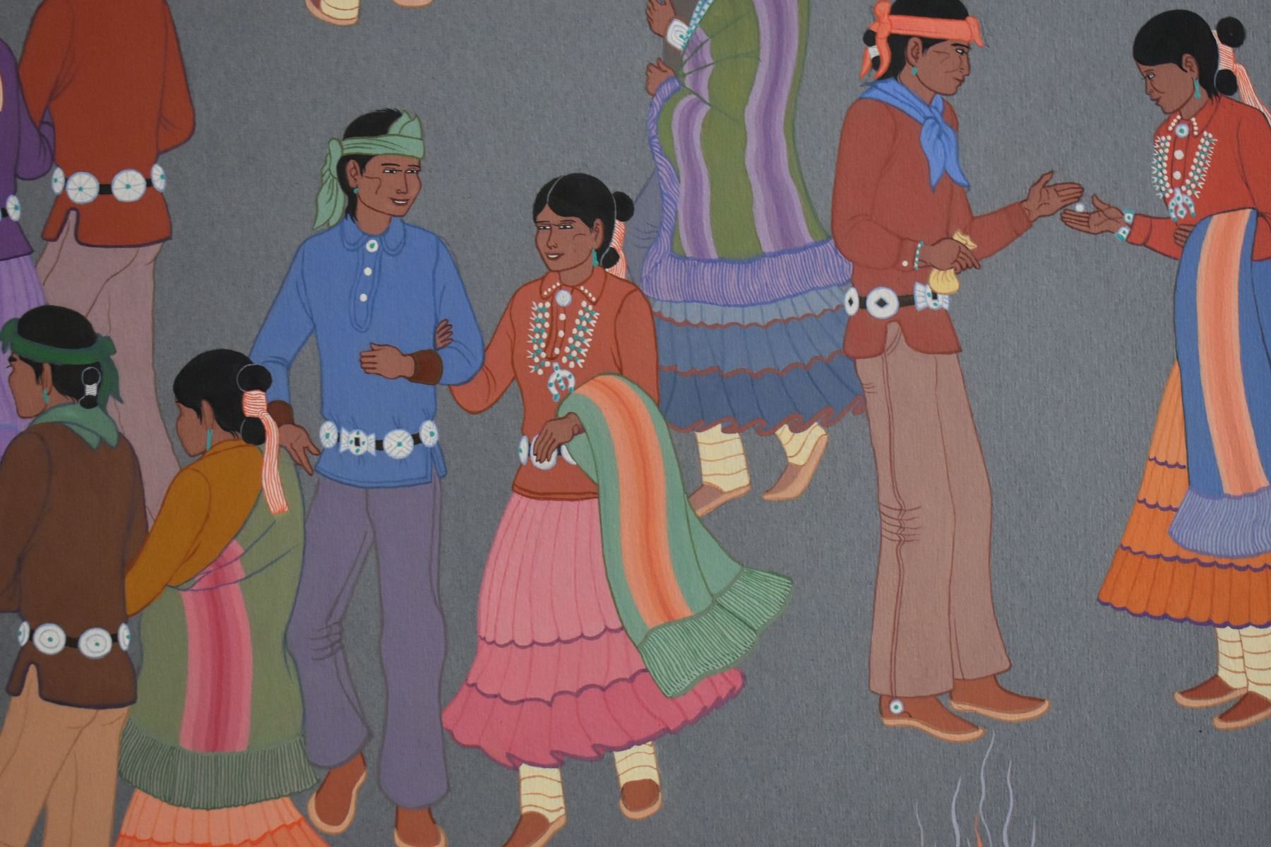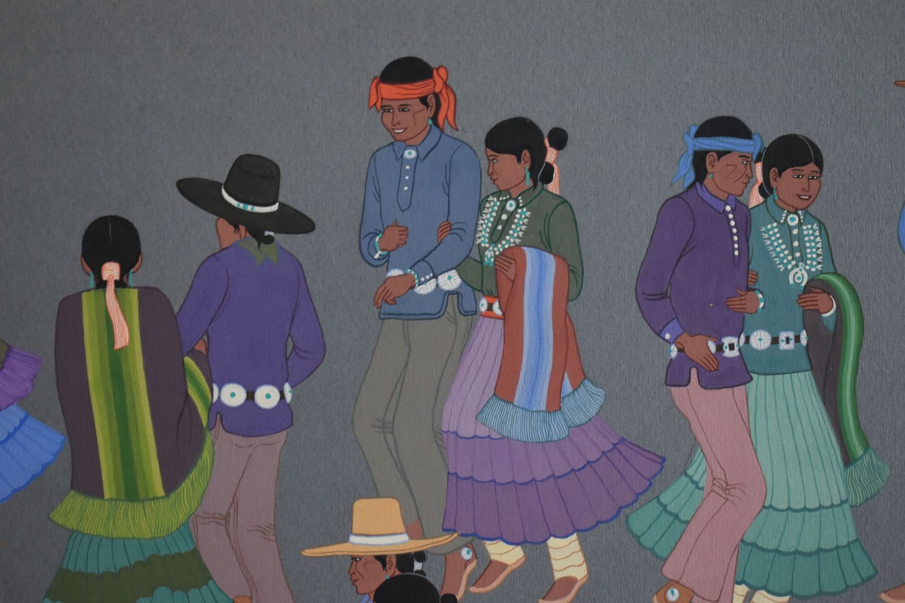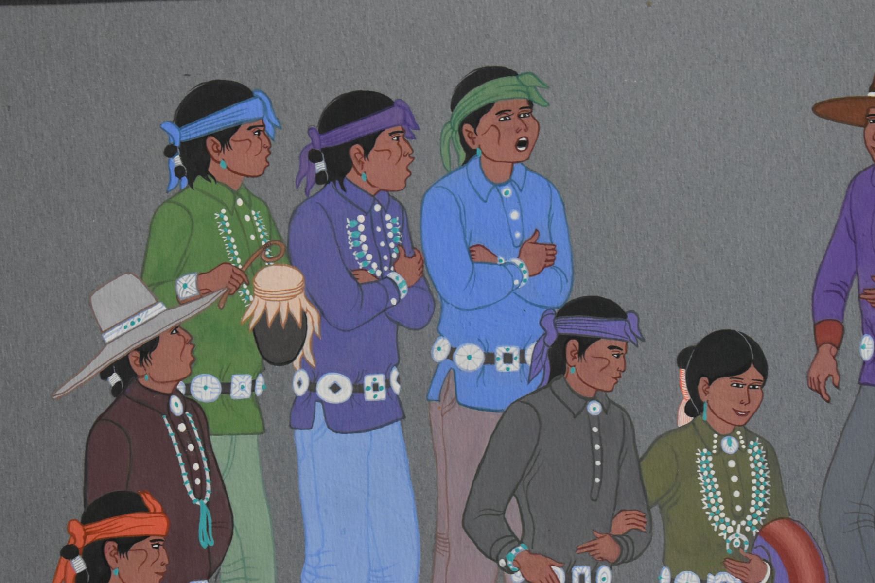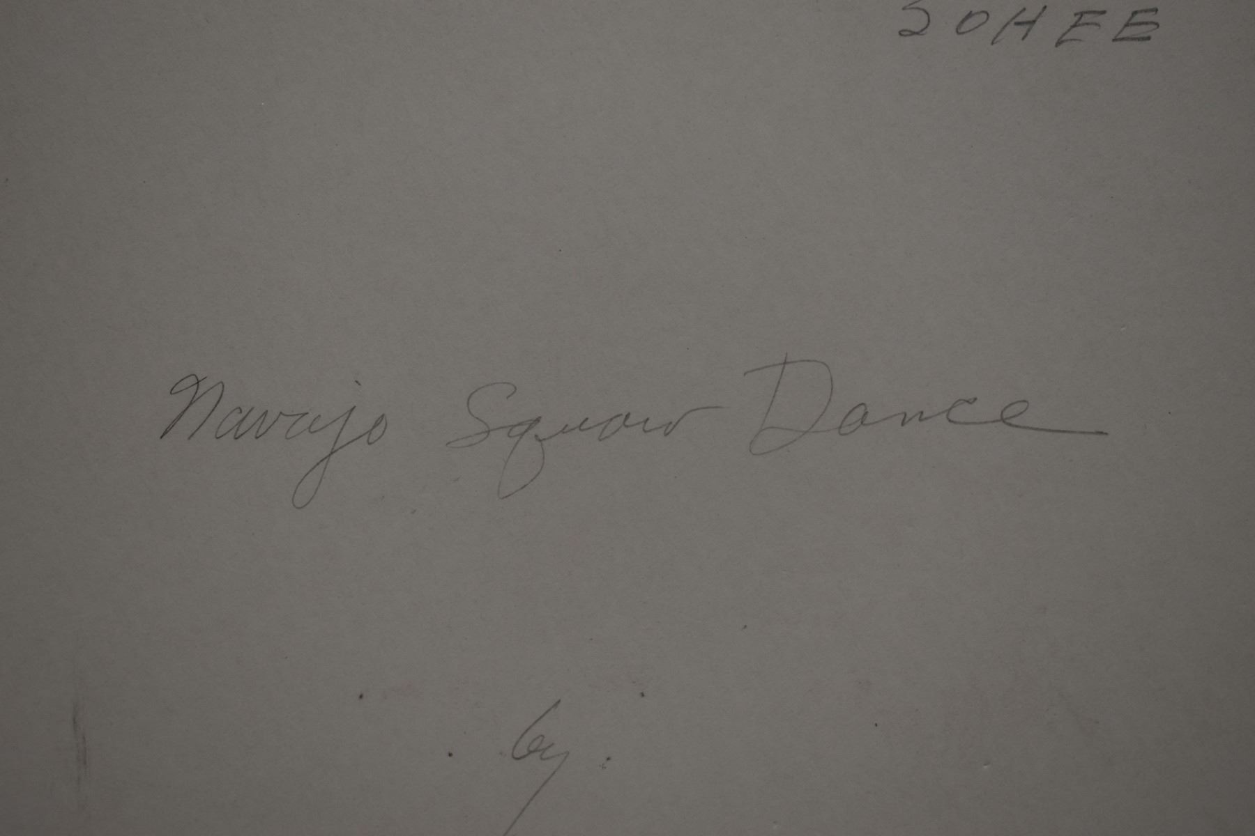 1960's Navajo. Original on paper depicting dance. Signed Harrison Begay. 21'' x 30'' matt size 30'' x 37''