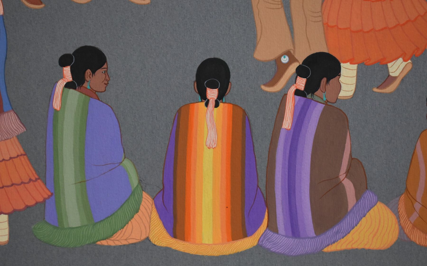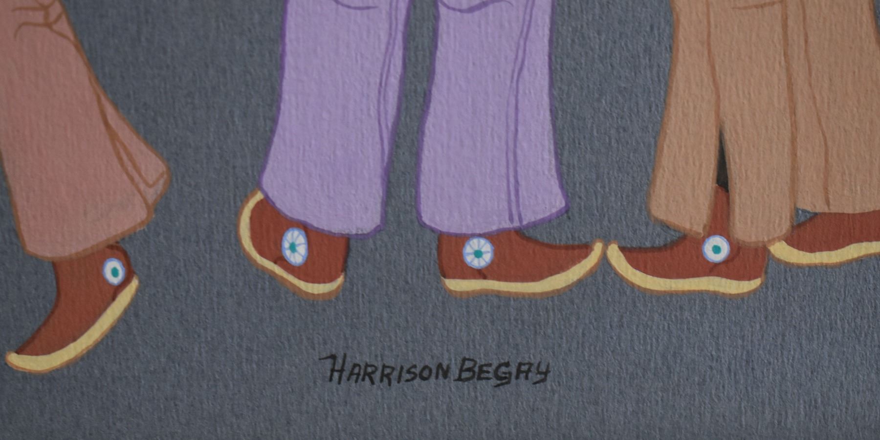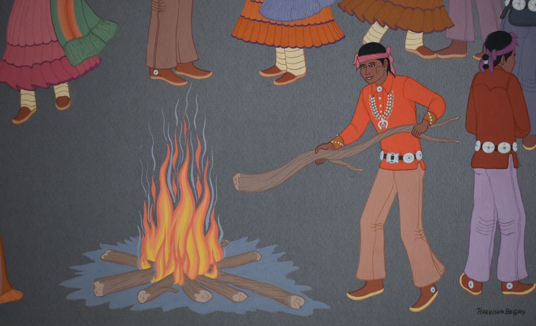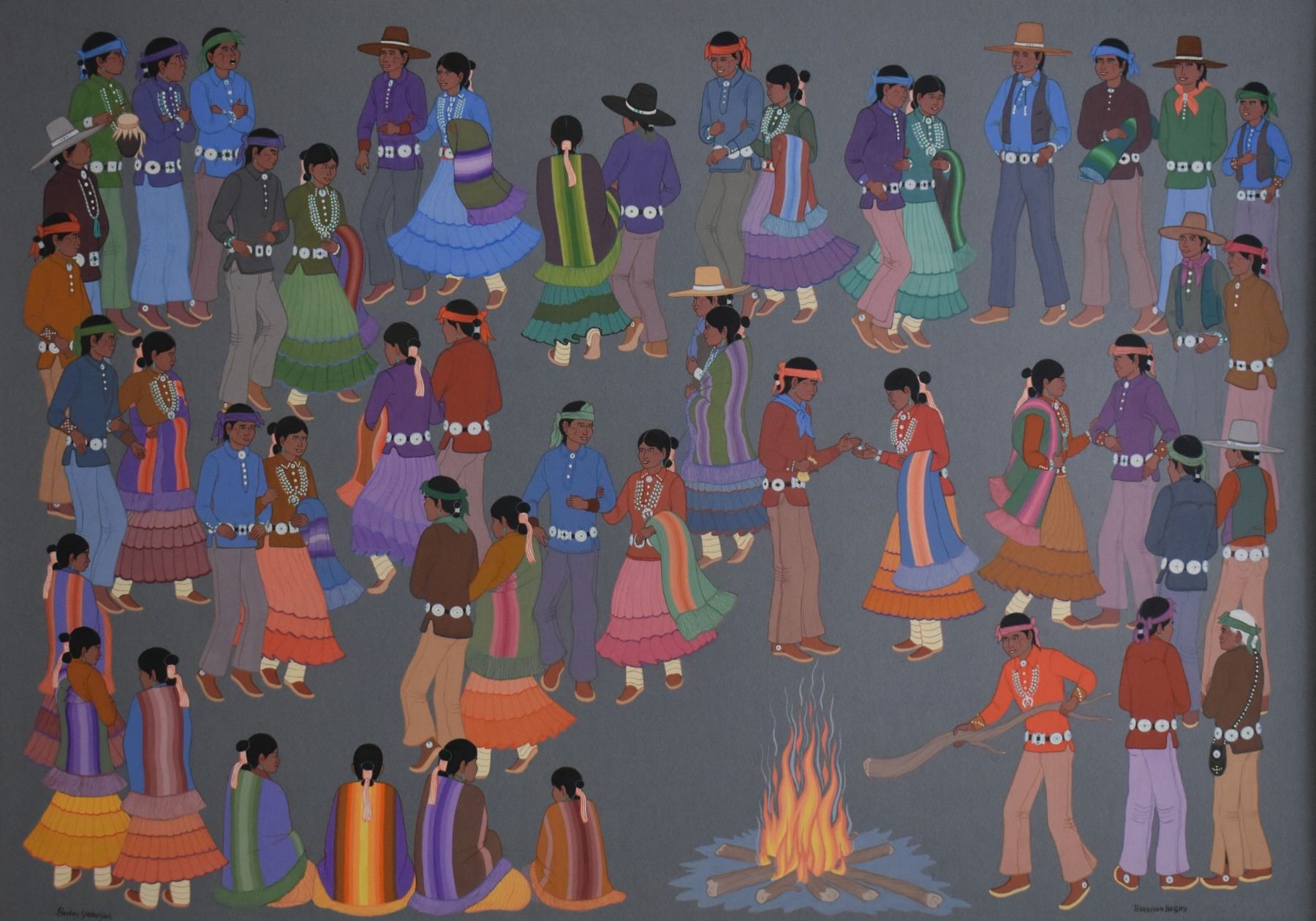 1960's Navajo. Original on paper depicting dance. Signed Harrison Begay. 21'' x 30'' matt size 30'' x 37''
