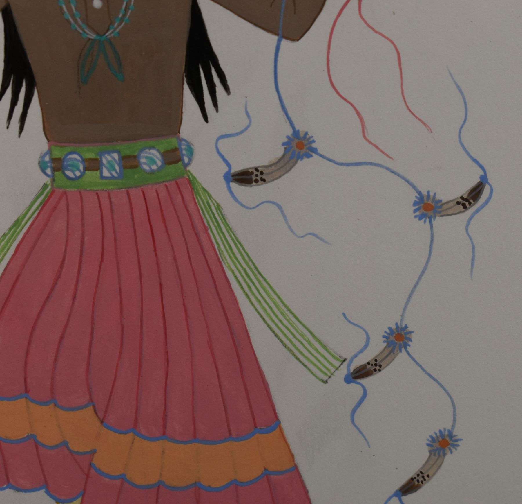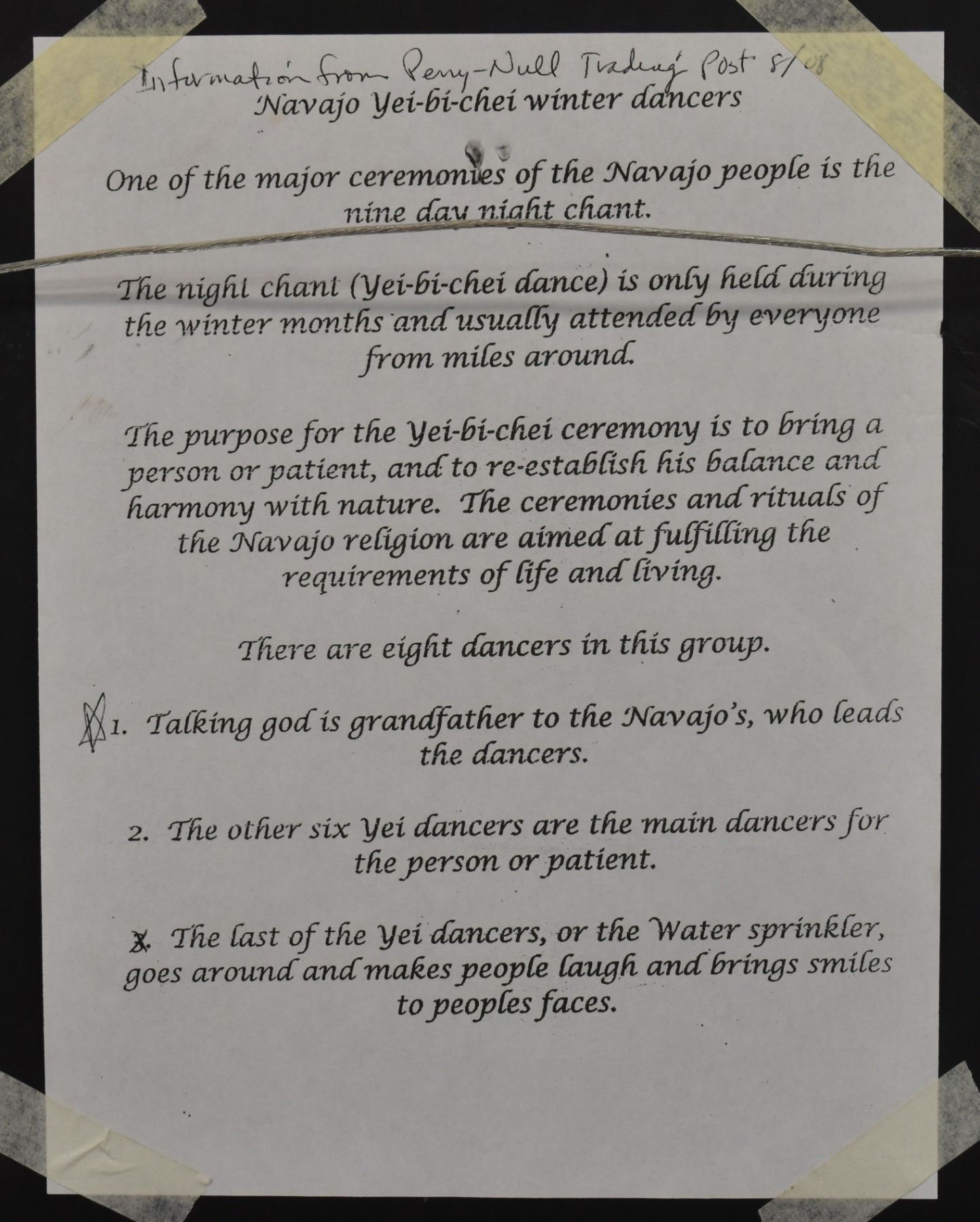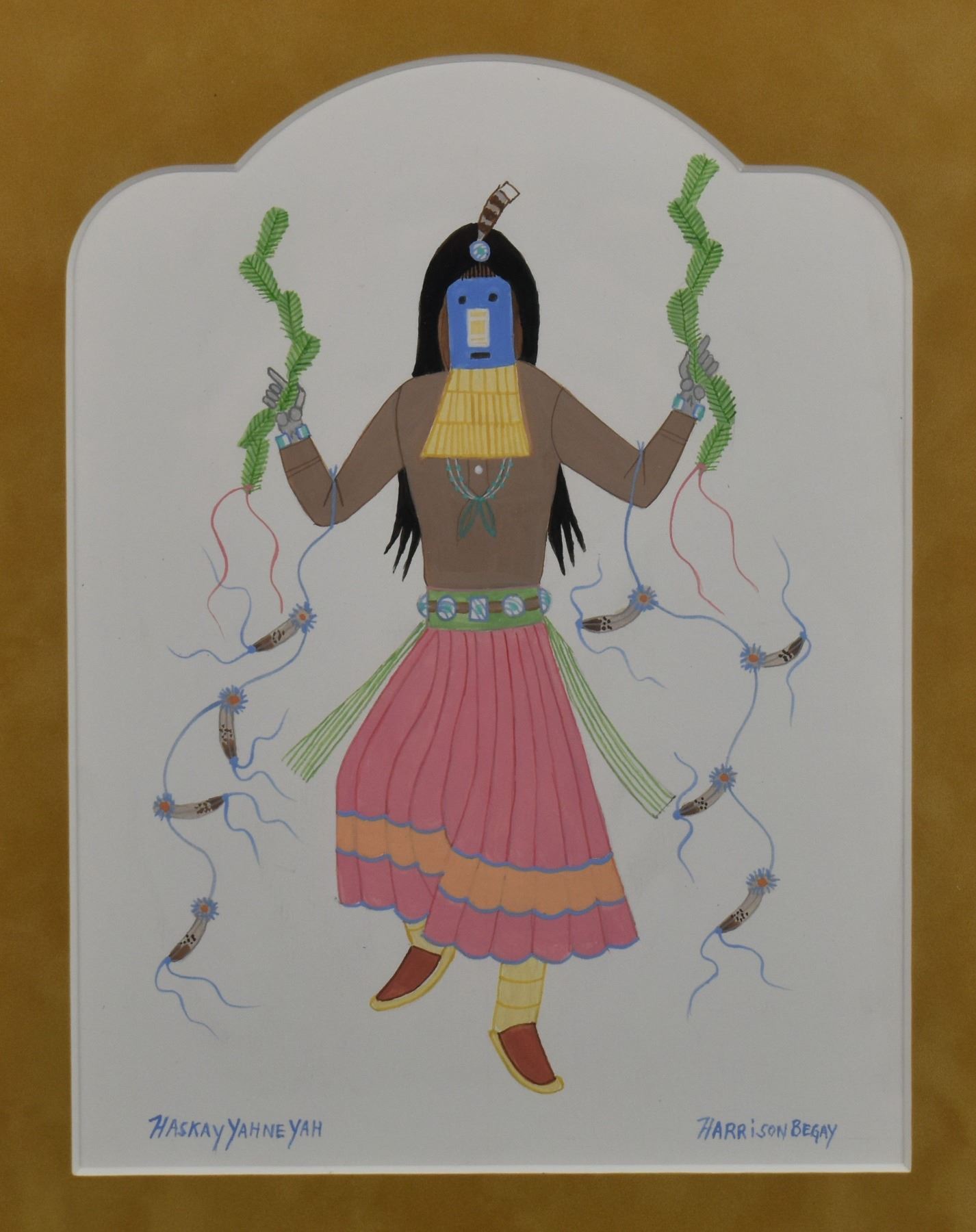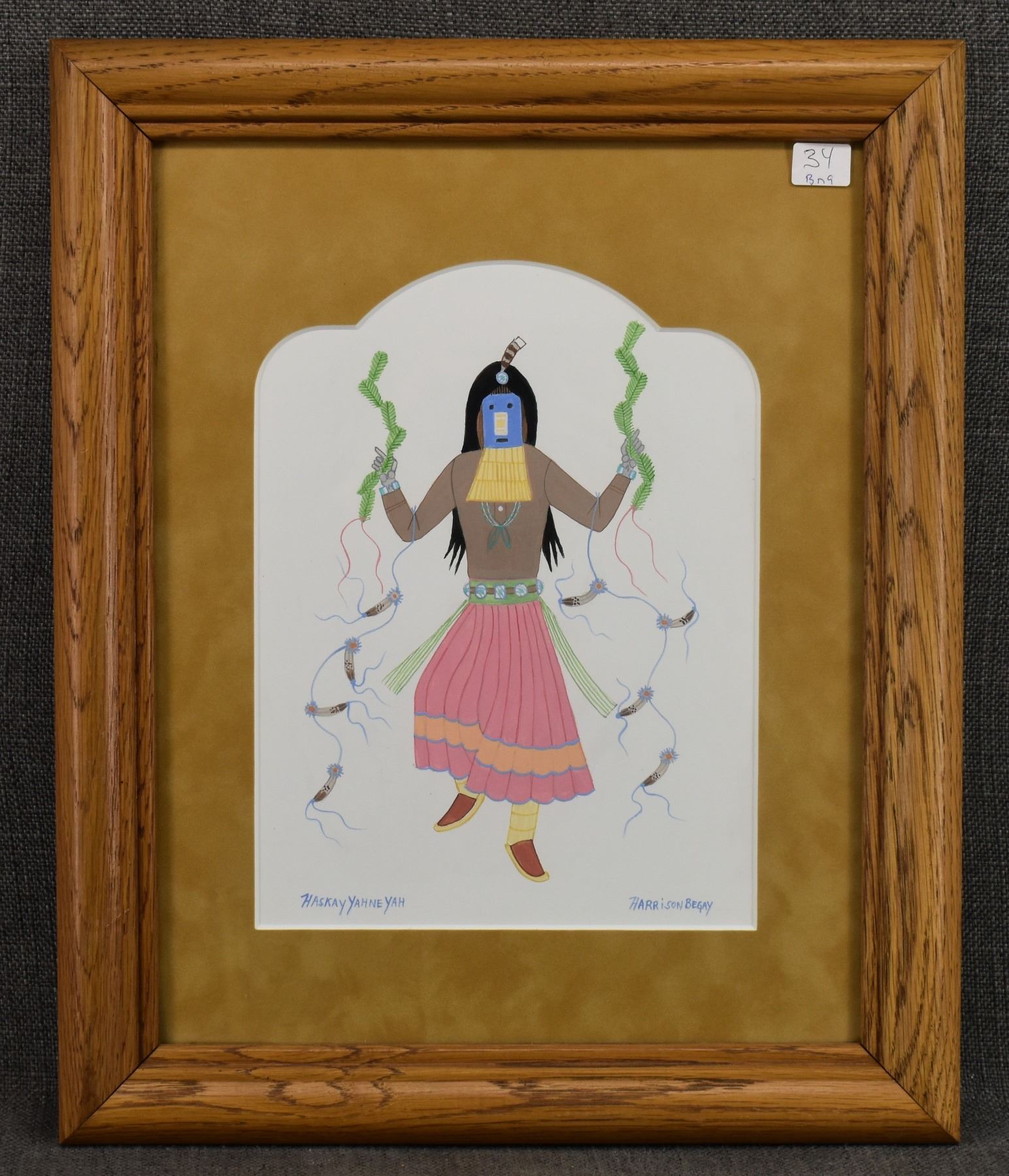 1970's Navajo. Original on paper depicting Yei-bi-chei. Signed Harrison Begay. 10'' x 7'' frame size 16'' x 14''
