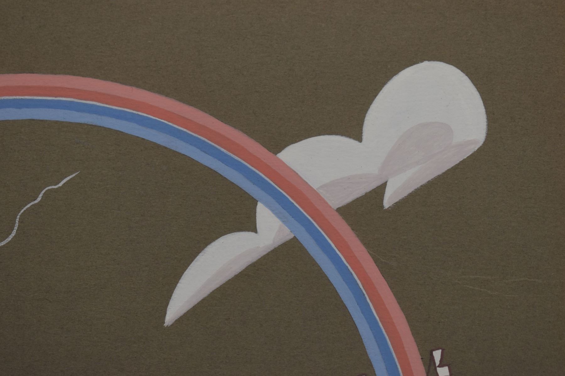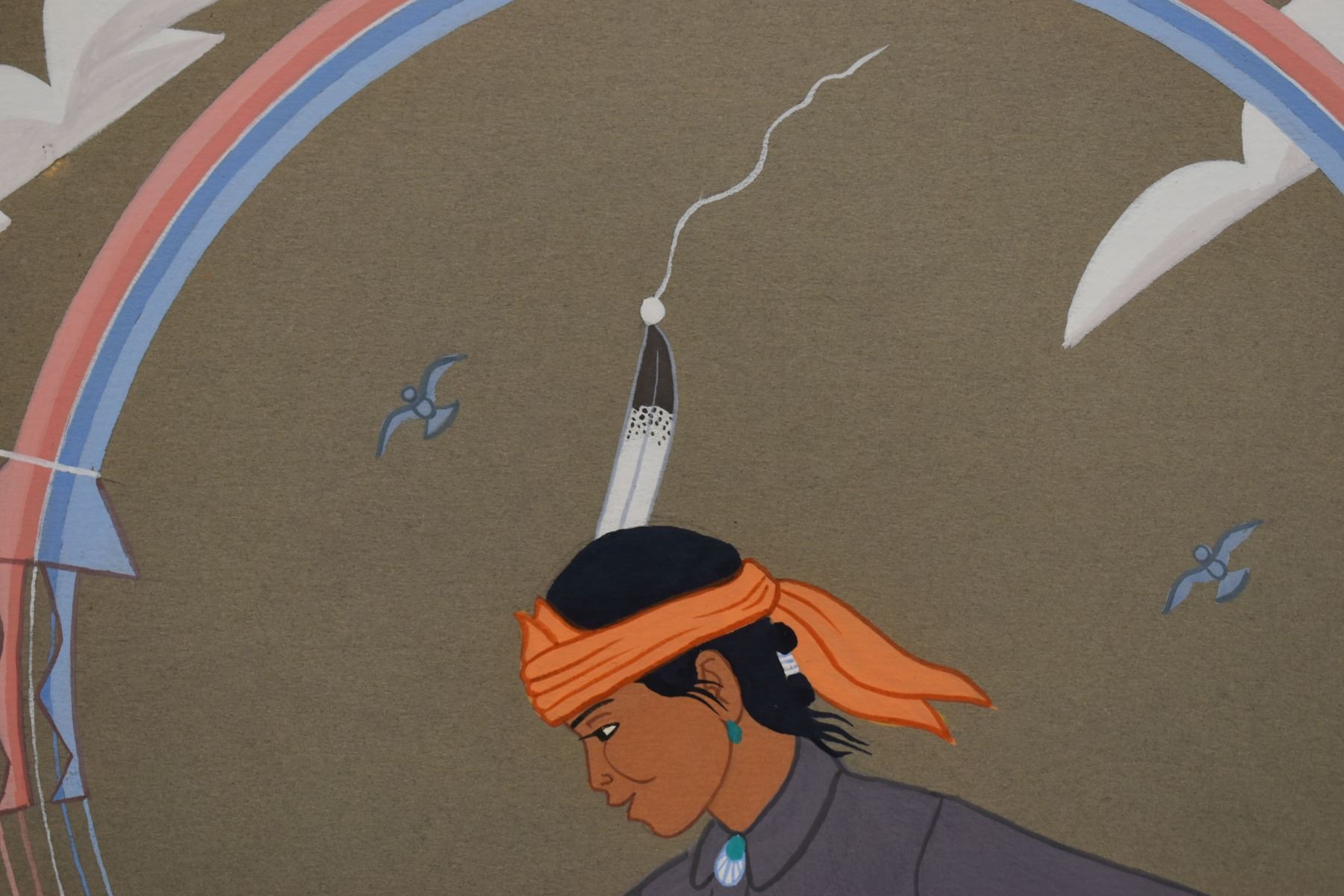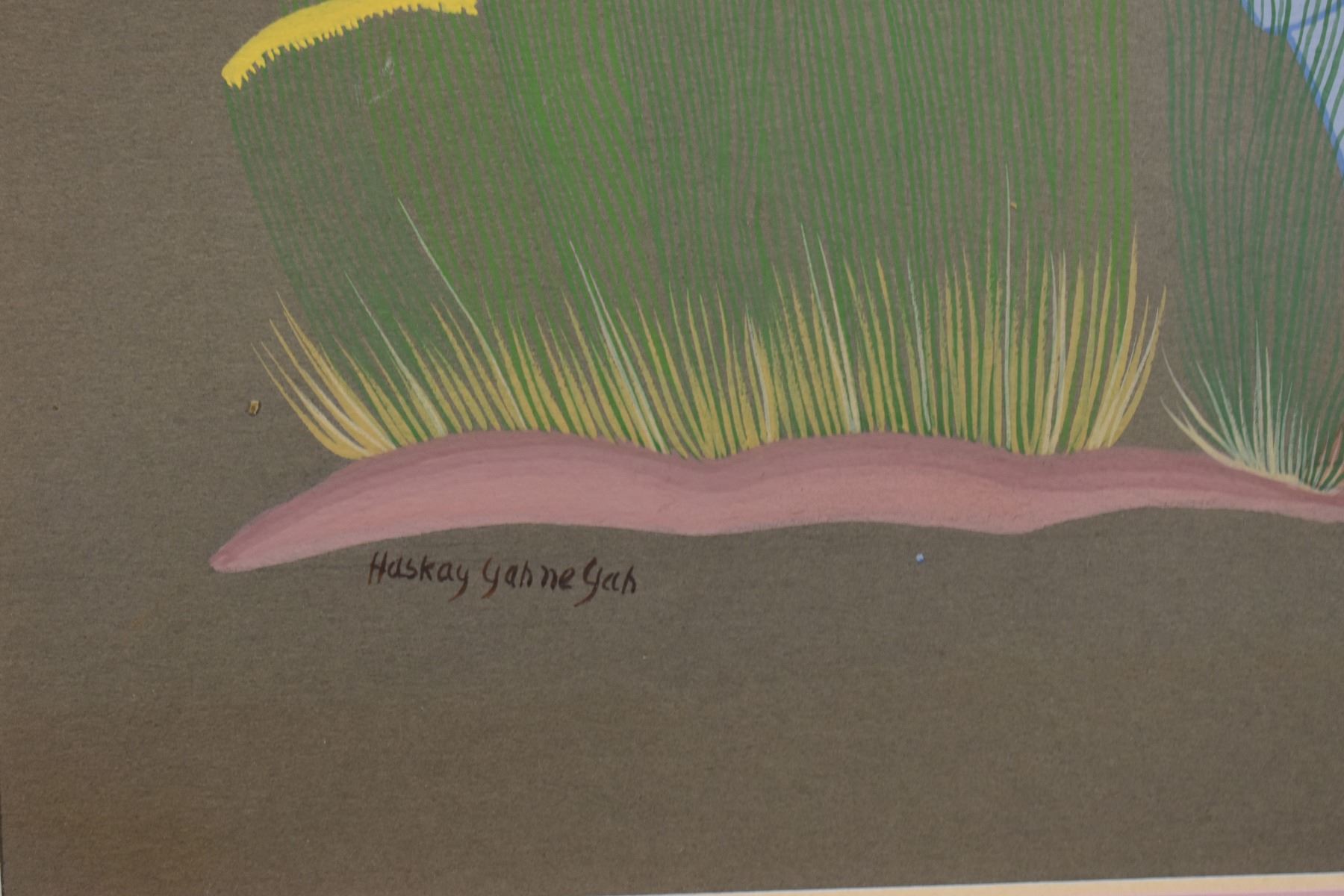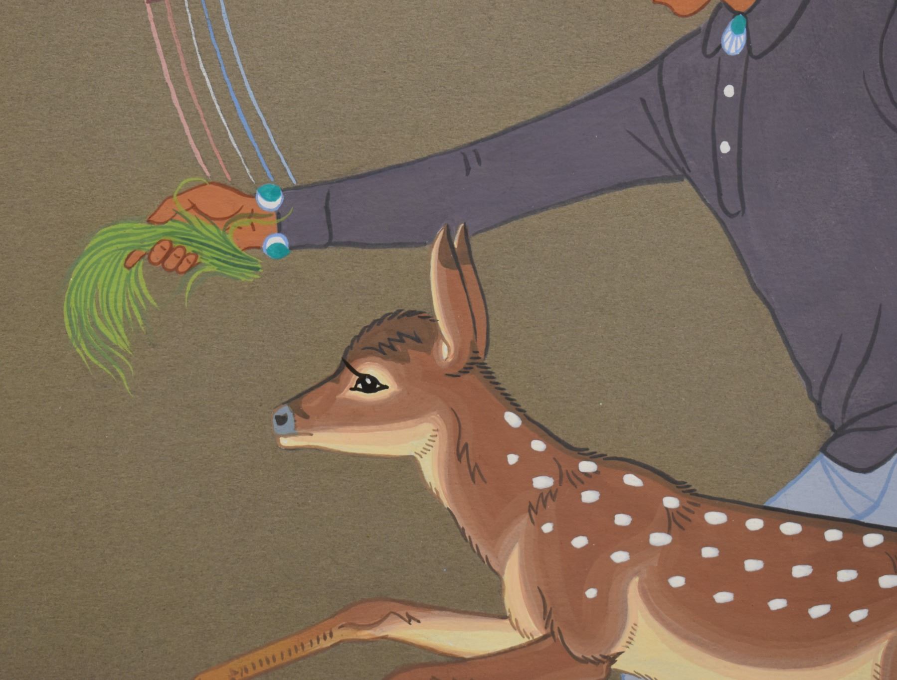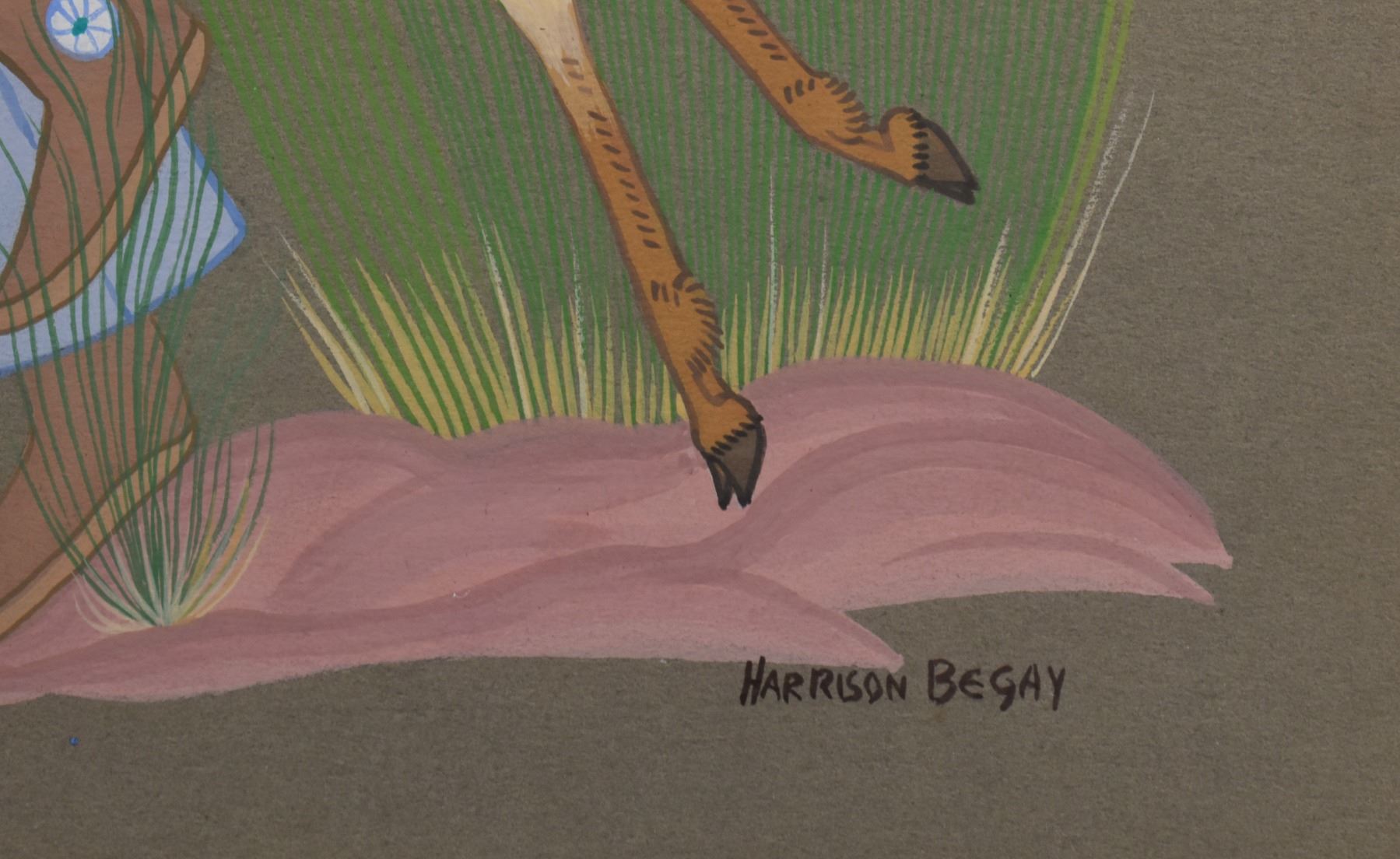 1960's/70's Navajo original hand painted on paper depicting boy playing with deer. Signed Harrison Begay. image 13" x 9.5" framed to 19.5" x 15.5"