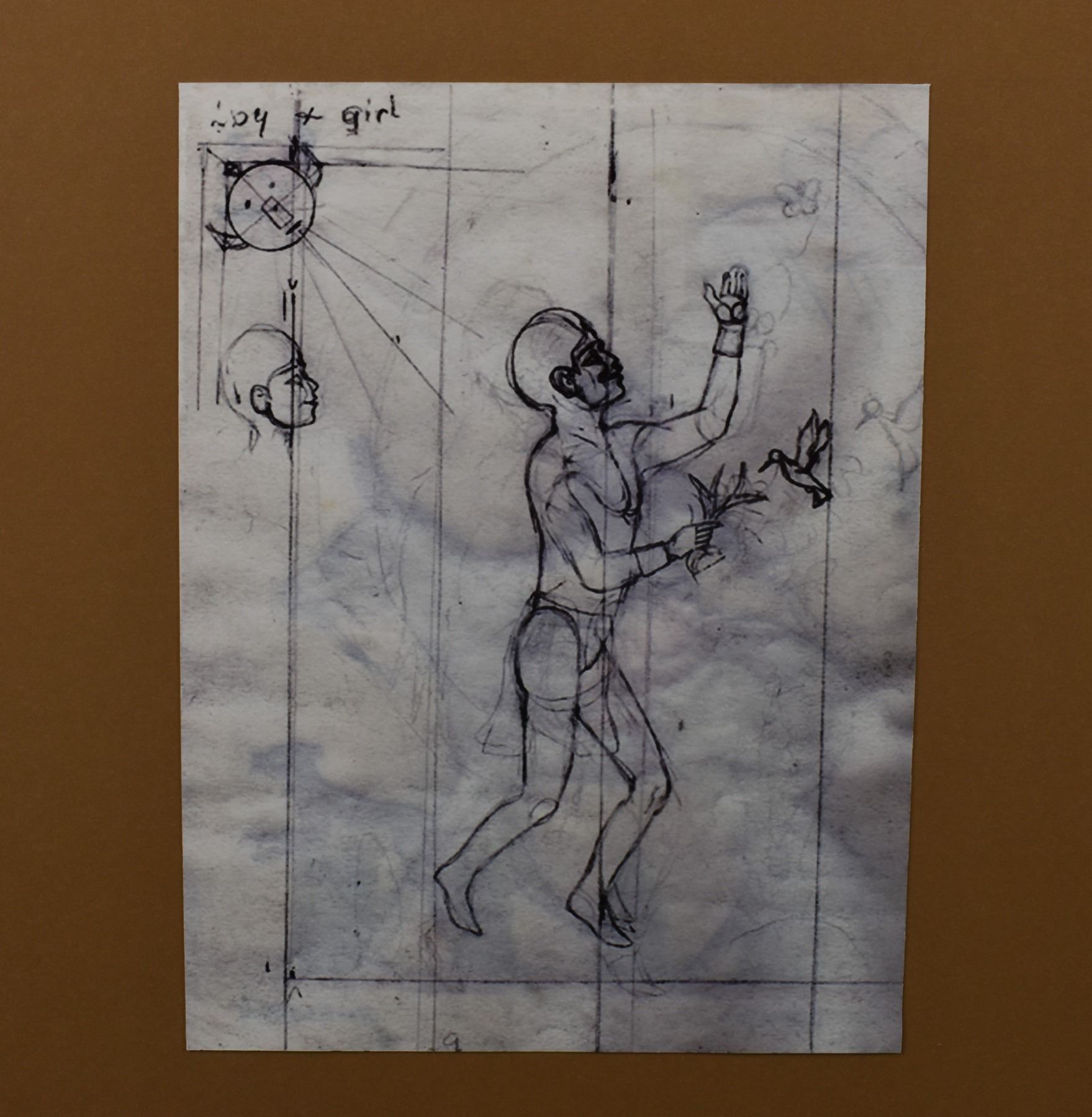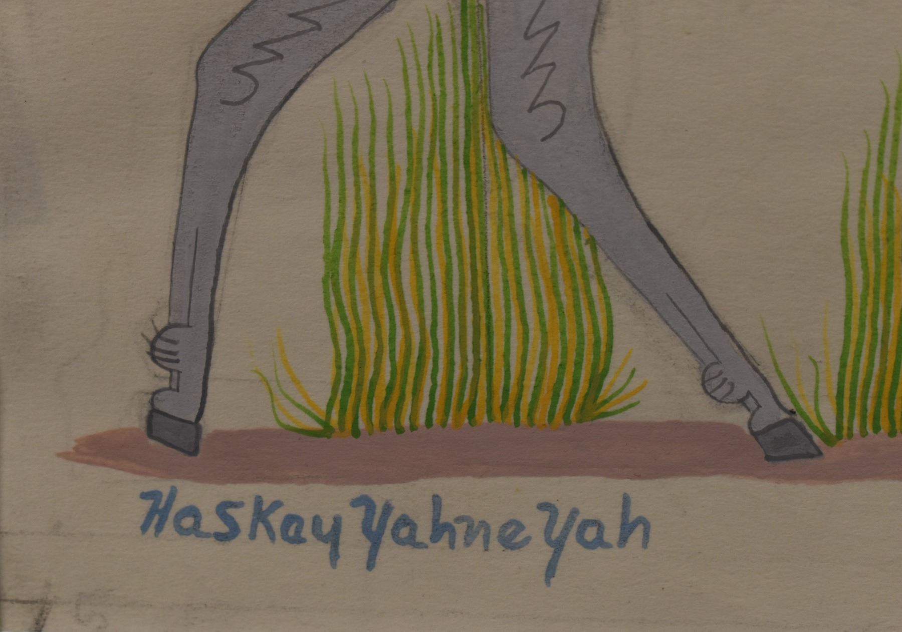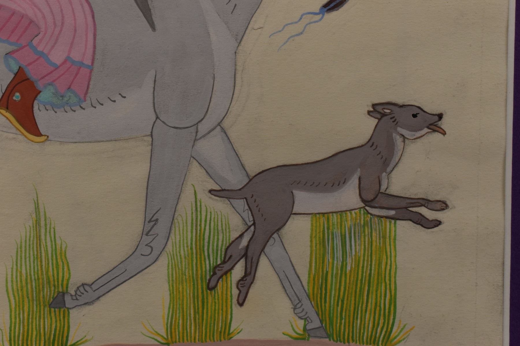 1980-90's Navajo, original hand painted on paper depicting Navajo Lady on mule signed Harrison Begay 10.5" x 8.25" matted to 15" x 13"
