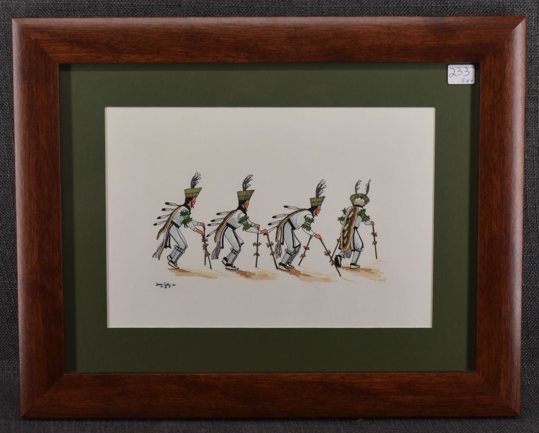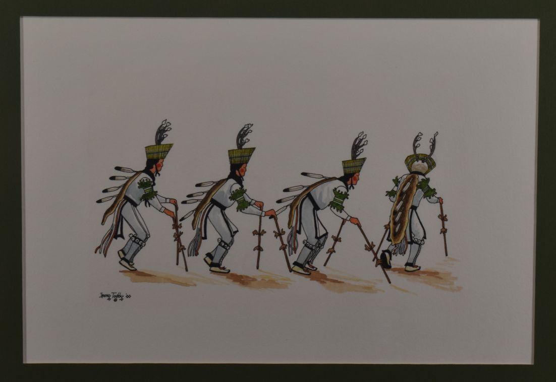 2000 Navajo, original hand painted on paper depicting Deer dance by Jimmy Toddy 7.25" x 10.75" matted and framed to 13.25" x 16.75"