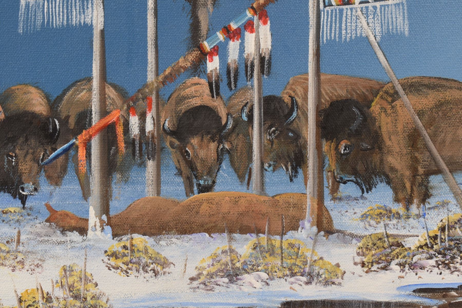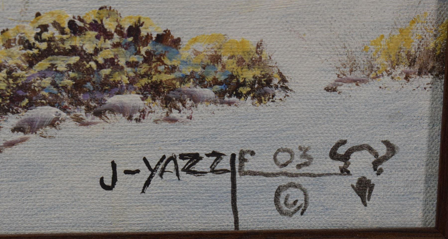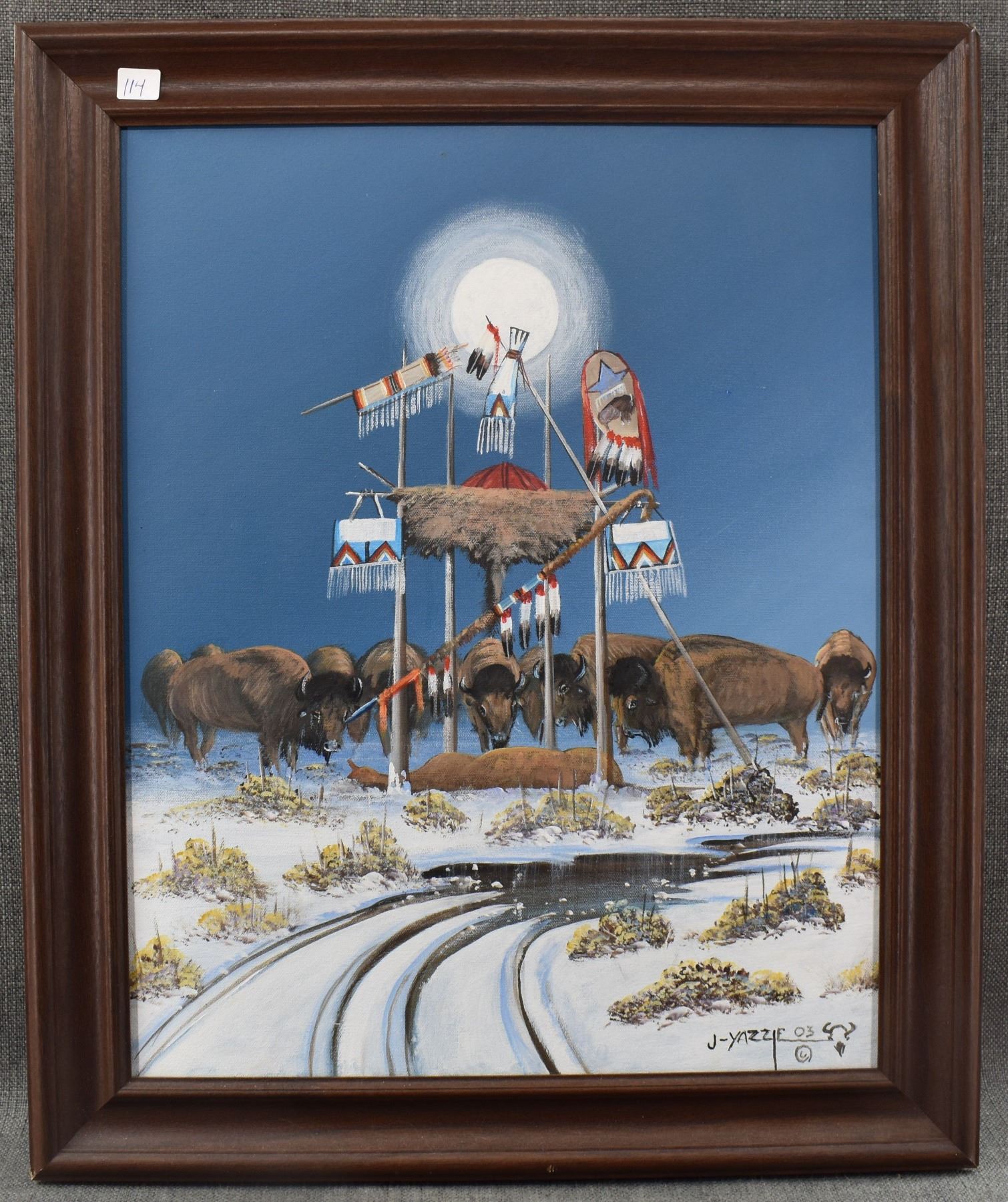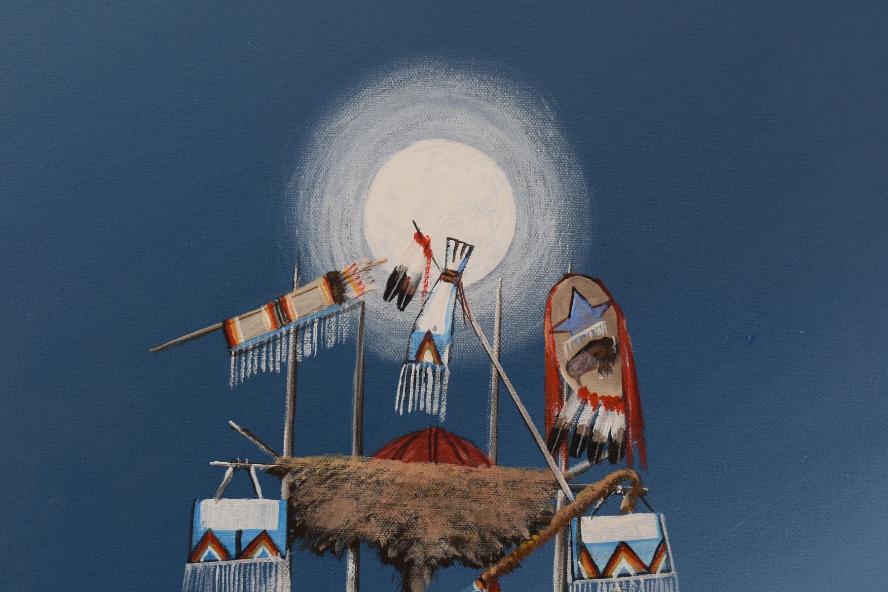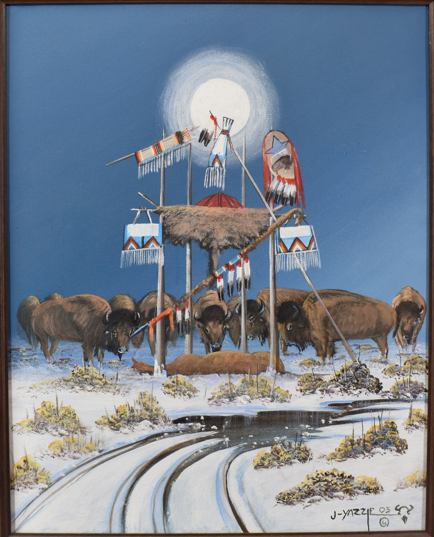2003 Navajo, original hand painted on canvas titled "Paying Respect" by Johnny Yazzie 20" x 16" framed to 23.5" x 20"