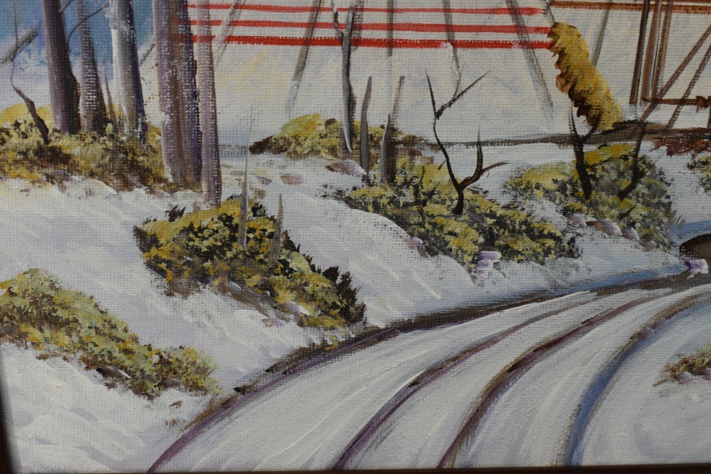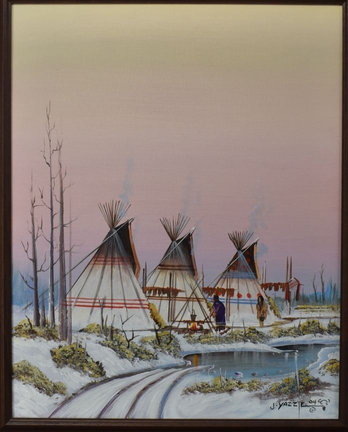 2004 Navajo, original hand painted on canvas titled "Been Warm Day" by Johnny Yazzie 19.5" x 15.5" framed to 23.5" x 19.5"
