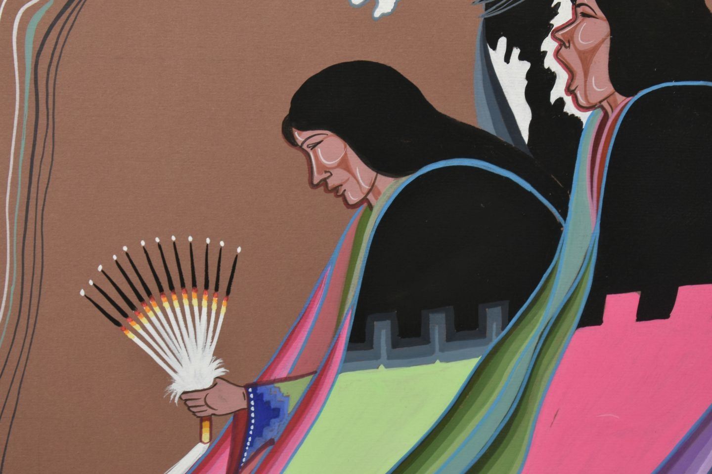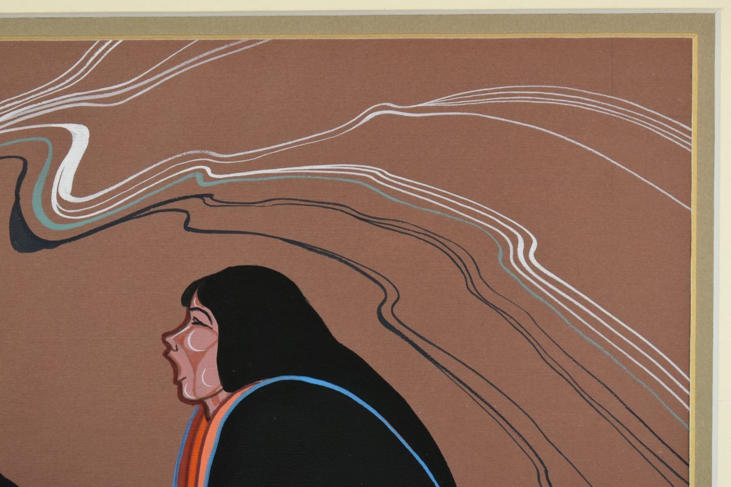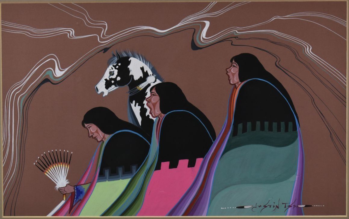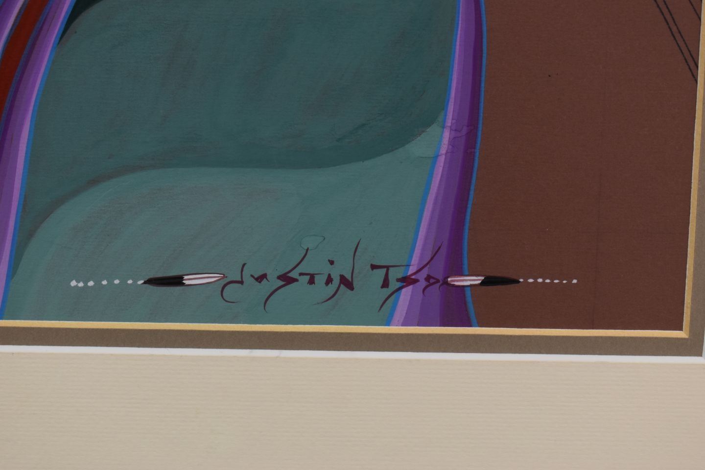 2002 Navajo, original hand painted titled "The Purple Bealle" by Justin Tso 10.75" x 17.25" matted and framed to 19.25" x 25.75" has honorable mention ribbon from Gallup Ceremonial