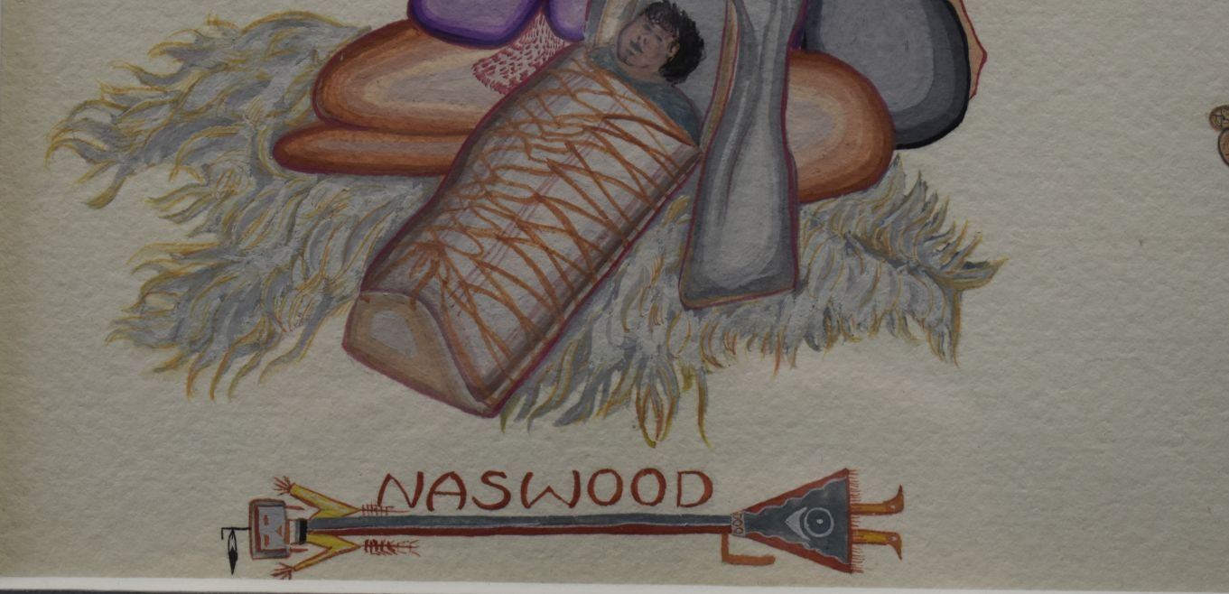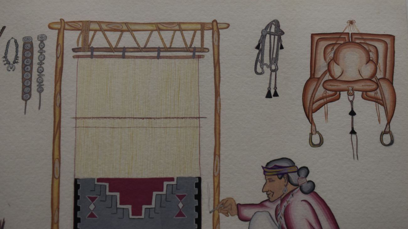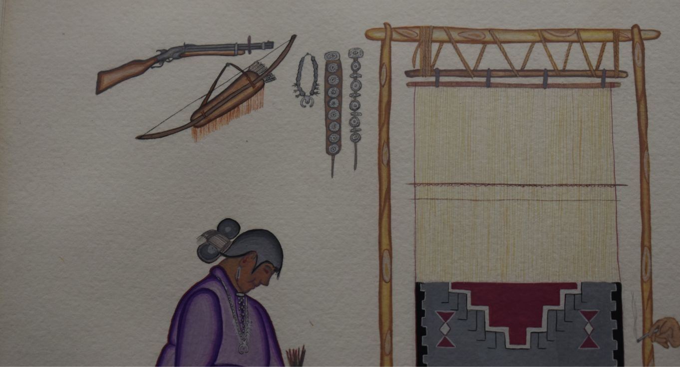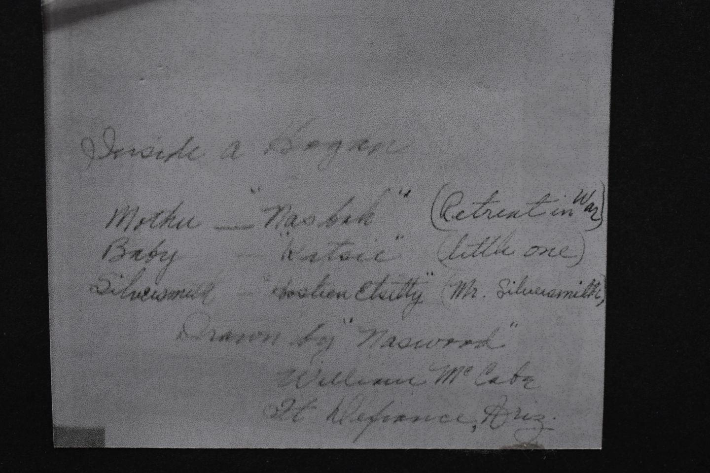 1950-60's Navajo, original hand painted on paper by Naswood 8" x 11.5" matted and framed to 13.5" x 16"