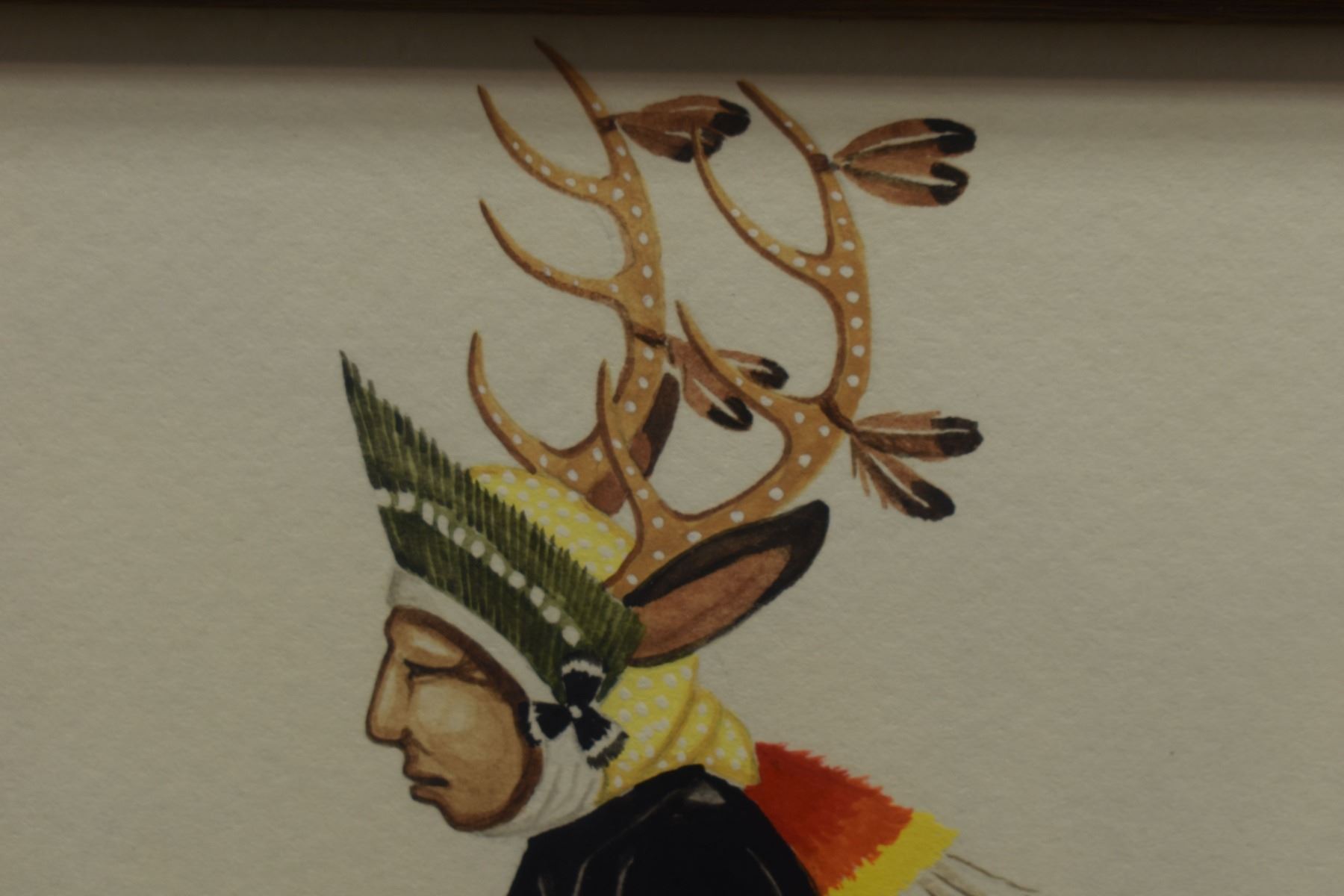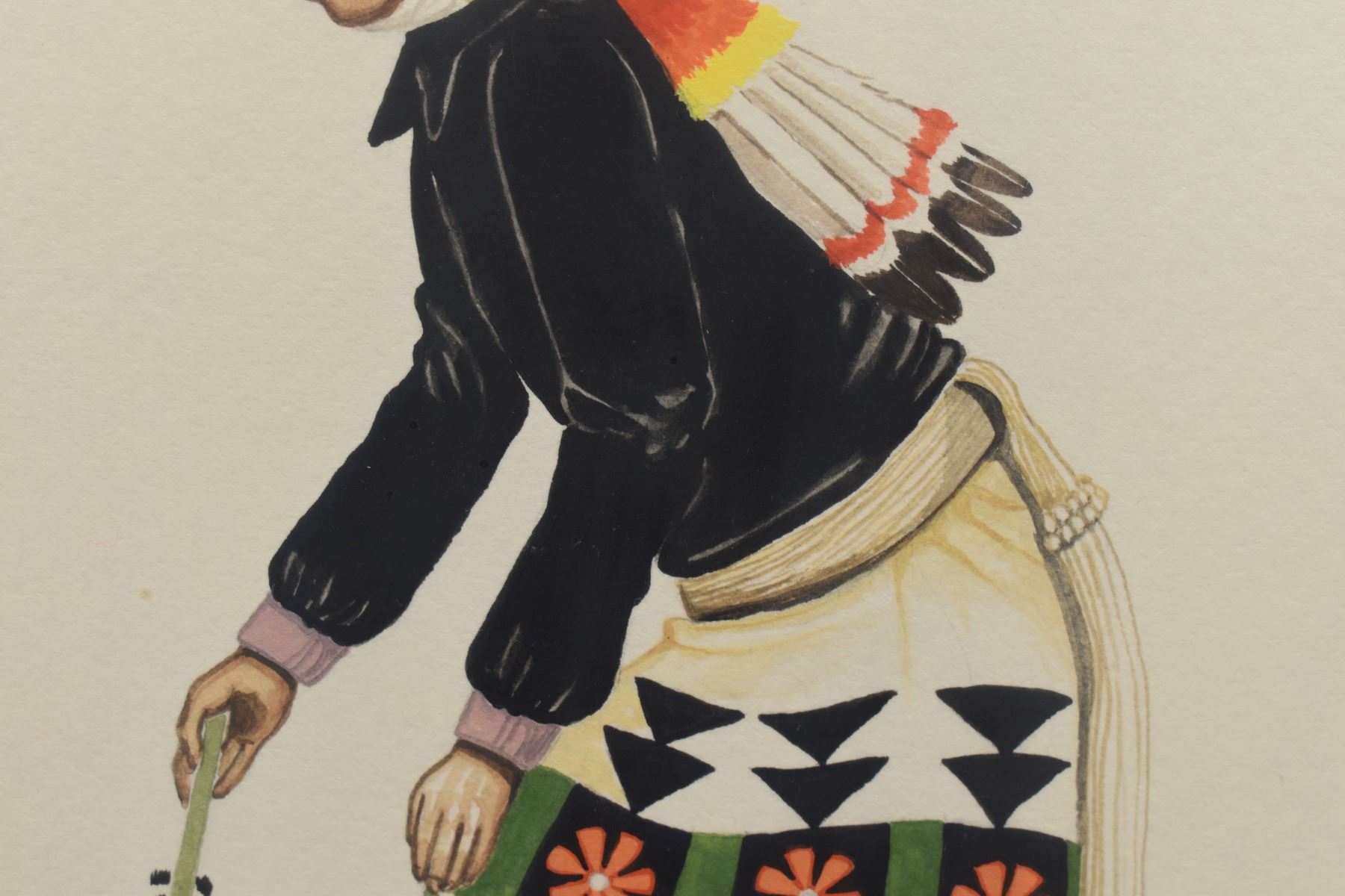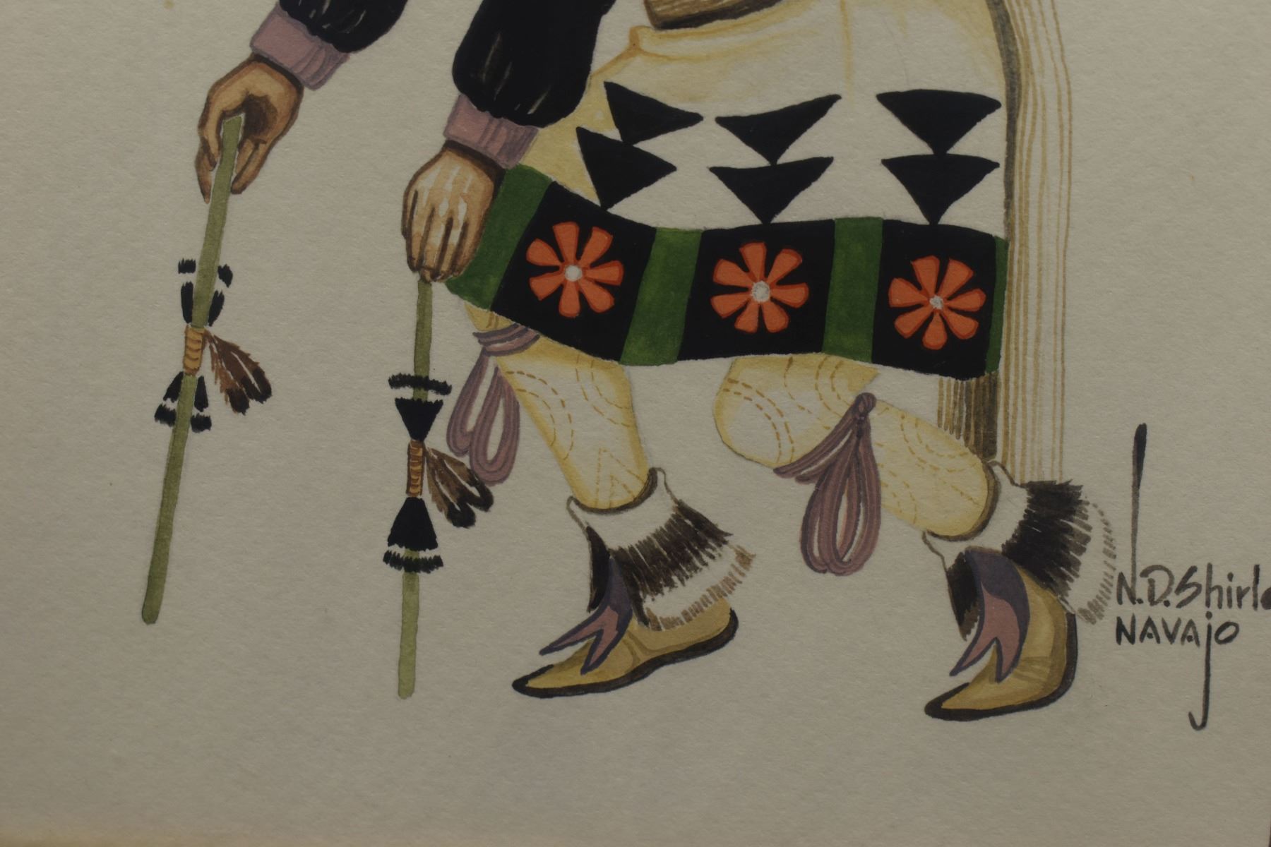 1980 Navajo. Original on paper depicting deer dancer, signed N.D. Shirley. 10'' x 8'' frame size 11'' x 9''