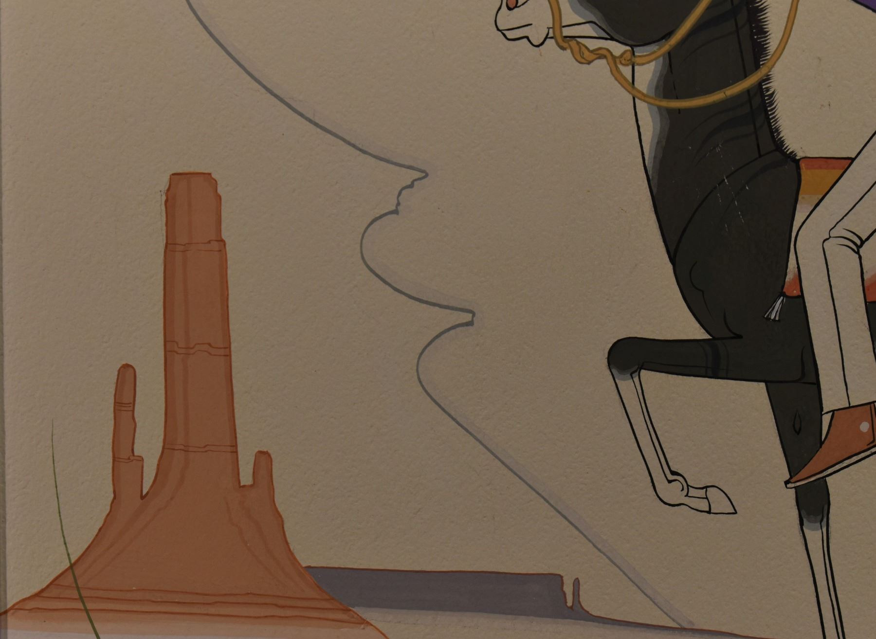 1960's Navajo, original hand painted depicting Navajo man riding donkey by Robert Chee 17.75" x 19.75" matted and framed to 24.75" x 26.75"