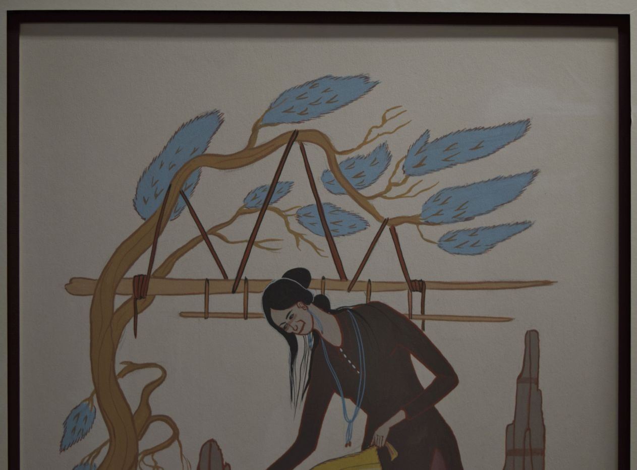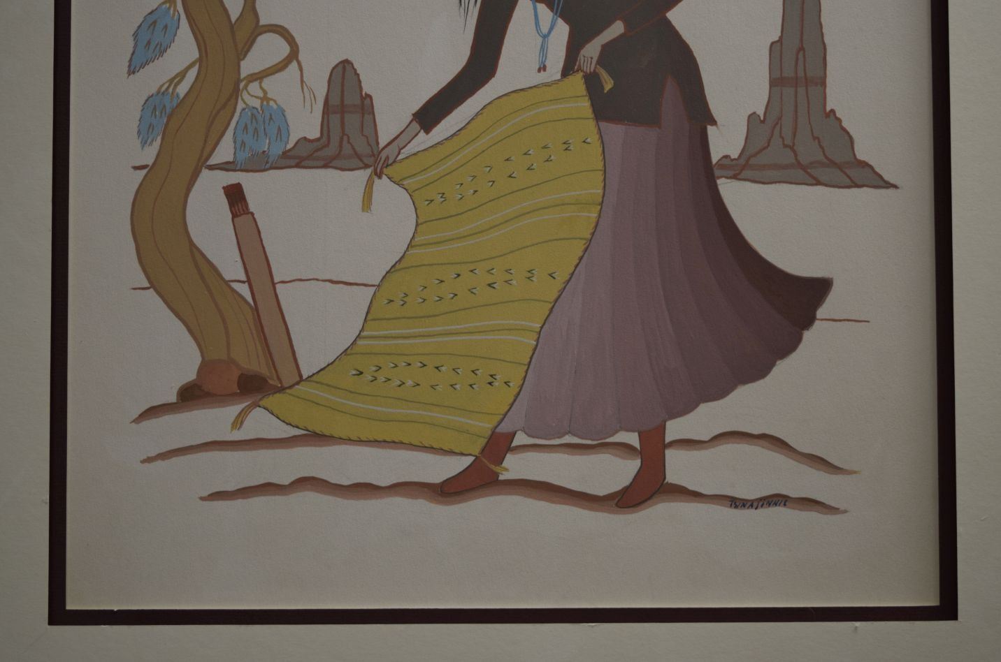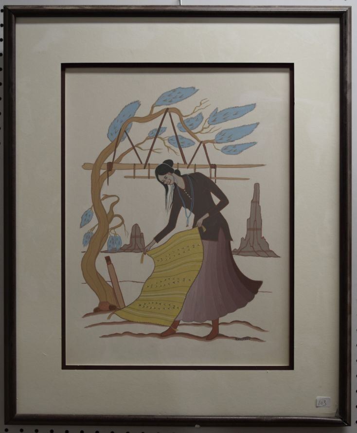 1970's original on paper depicting Navajo weaver signed Tsinajinnie. 19'' x 14'' frame is 27'' x 22''