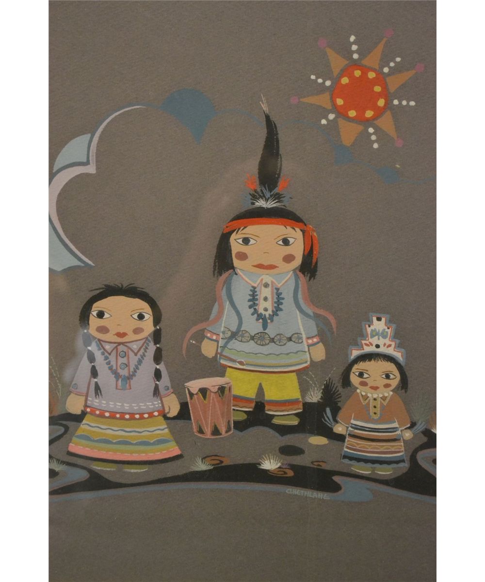 1960s 70s watercolor on paper signed chethlahe 11.25" x 8.5"