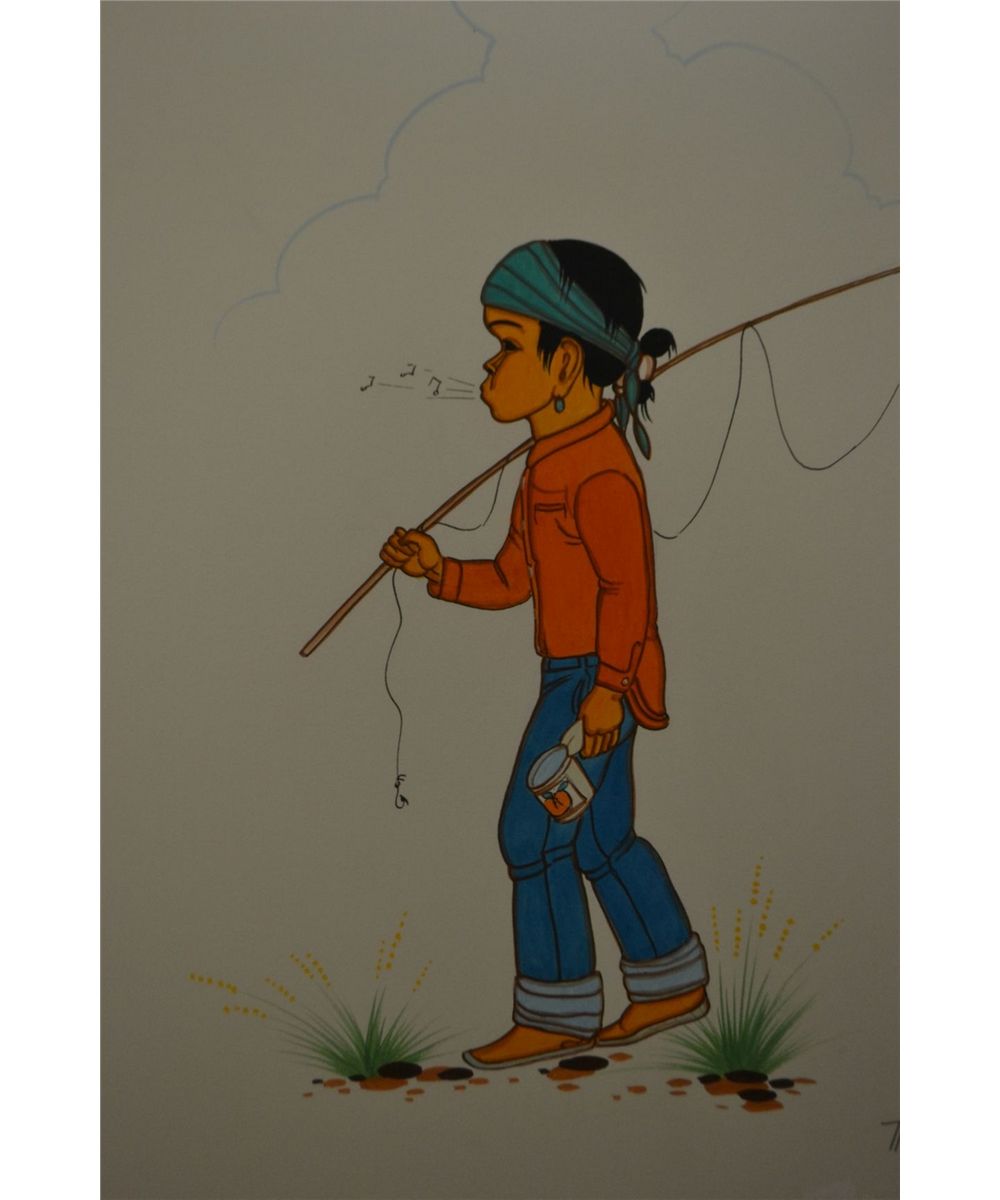 1960s 70s watercolor on paper signed beatin yazz 19.25" x 14.5"