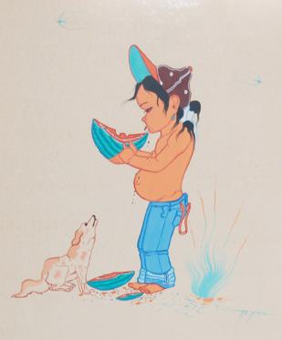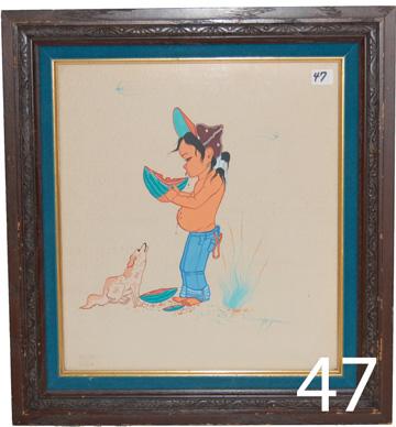 ca. 1960'S original casein, signed Beatin Yazz, 13" x 11.5".