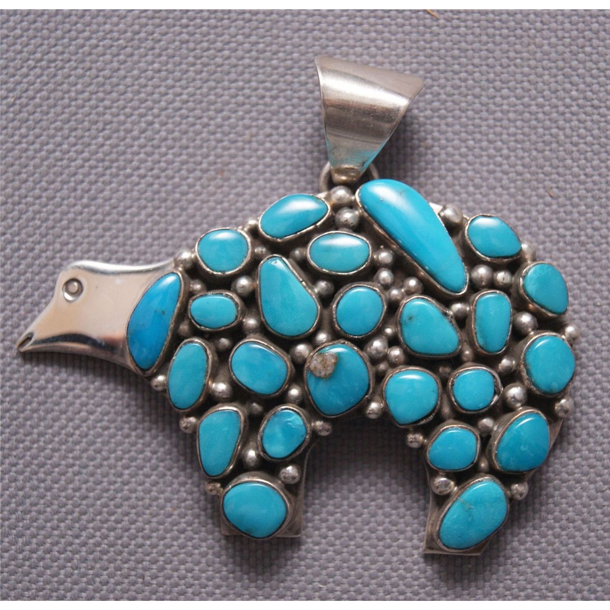 contemporary sterling silver and turquoise signed Bea Tom, 2.25"x2.5"