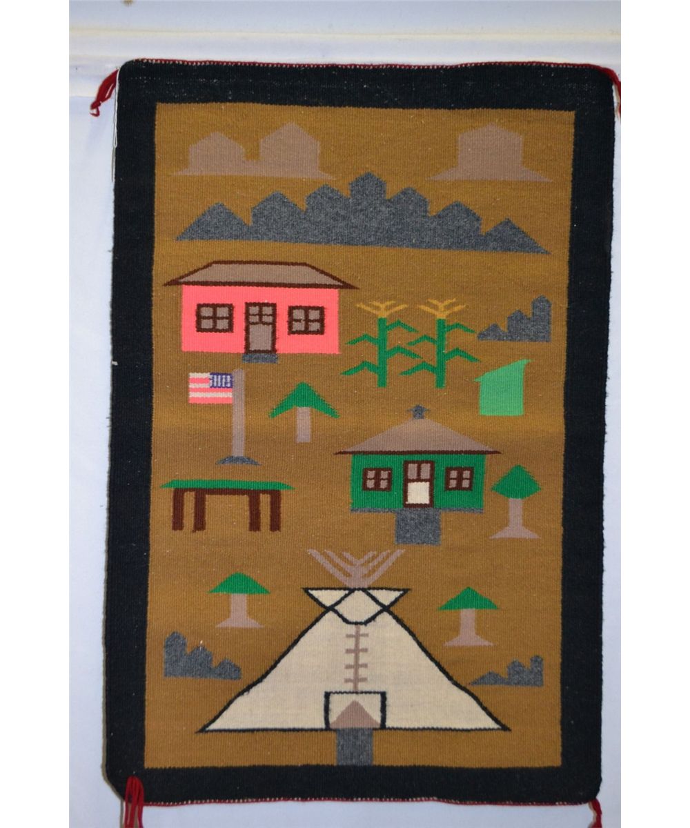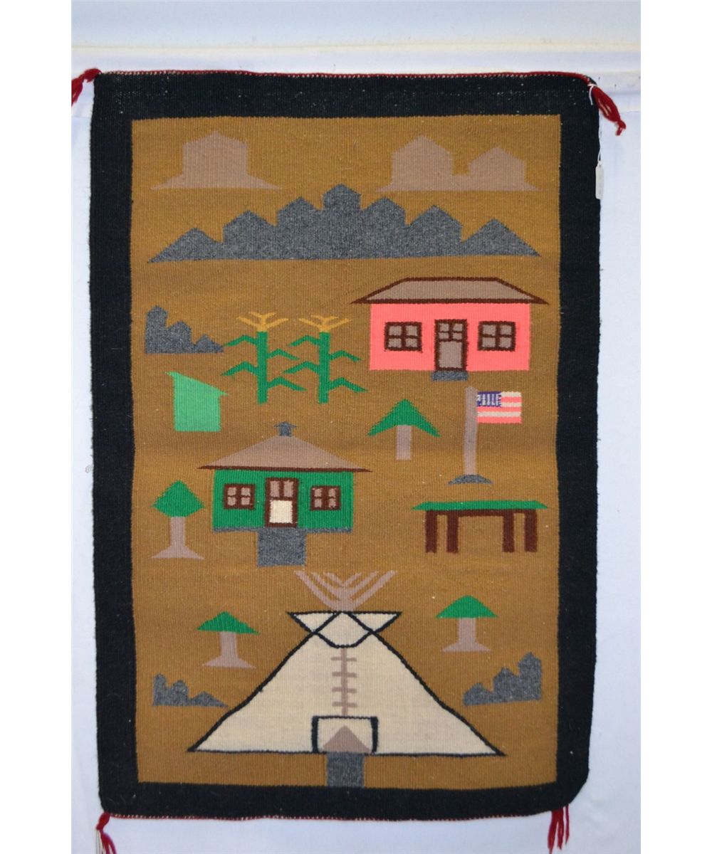 1960s 70s handwoven teepee and houses 34" x 23.5"