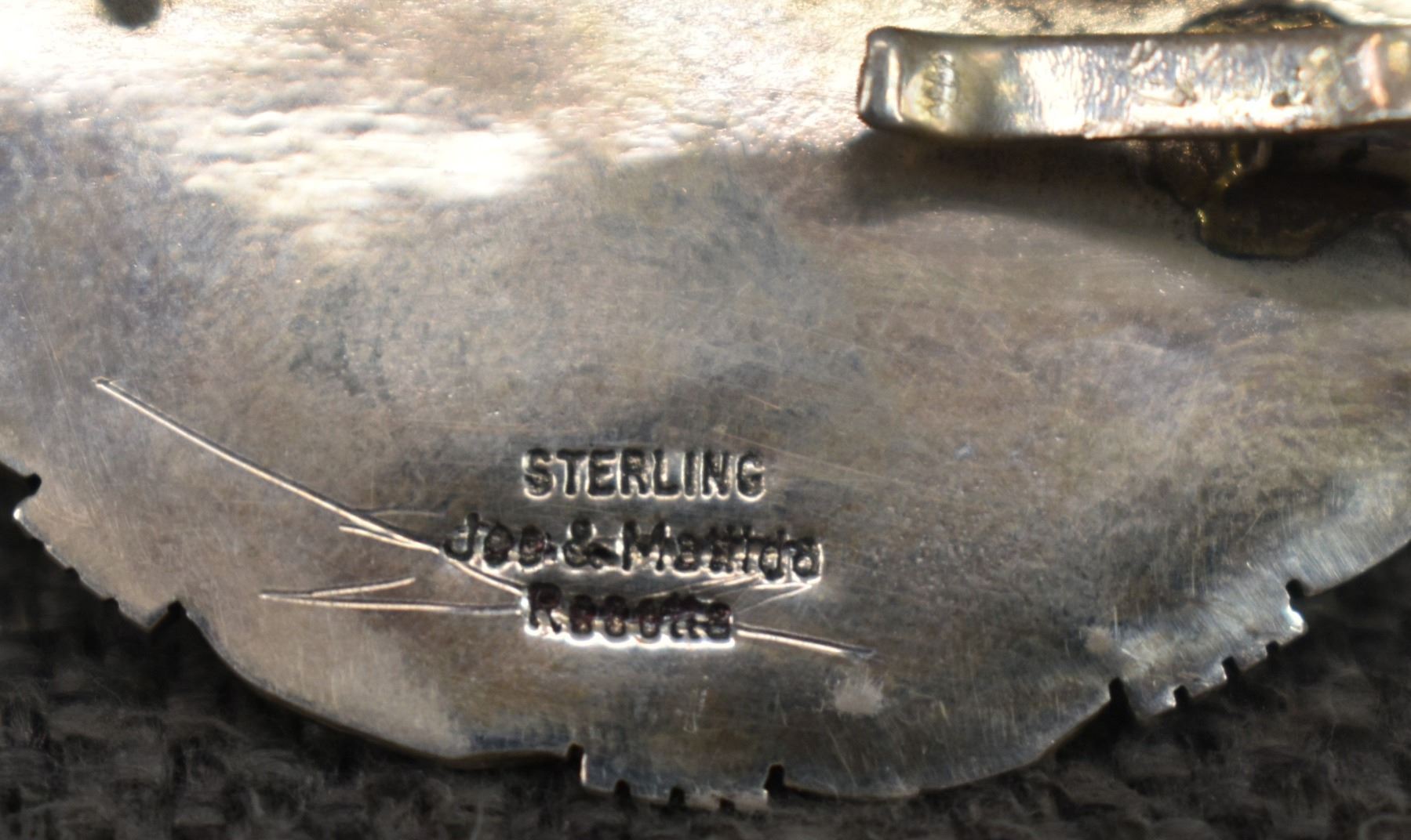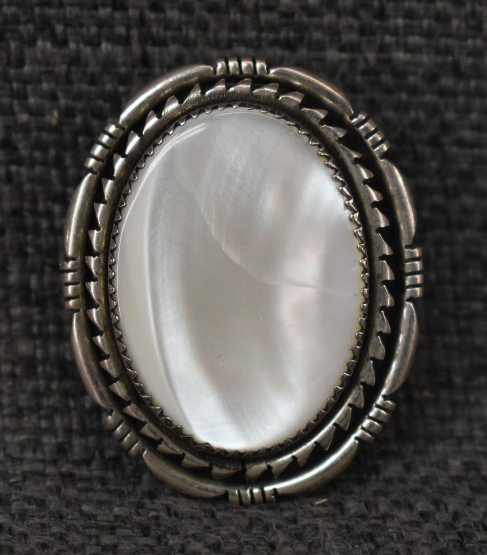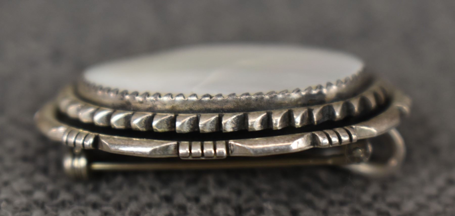 1990's Navajo, Sterling silver and mother of pearl signed Joe and Matilda Rosetta, 1.5" x 1.25" total weight 16 grams