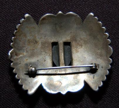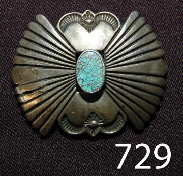 ca. 3RD Q 20TH CENT. heavy silver, possibly sand cast, #8 spiderweb turquoise, 1.5” x 1.25”.