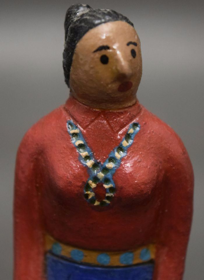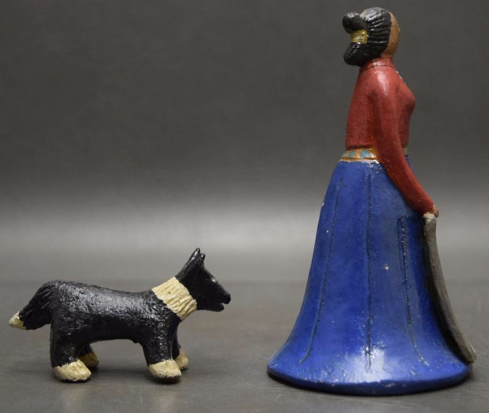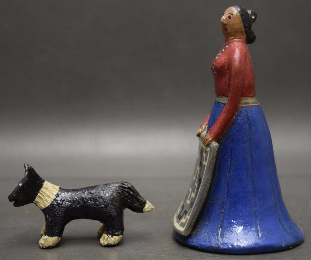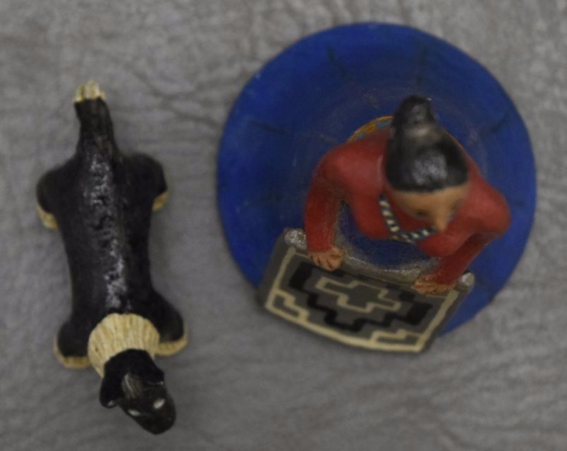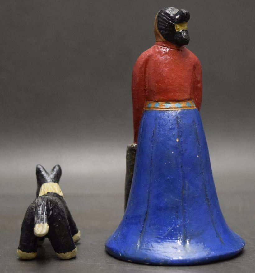1980's pottery figures depicting dog 1.5'' tall and native woman 4.75'' signed EM for Elizabeth Manygoats.