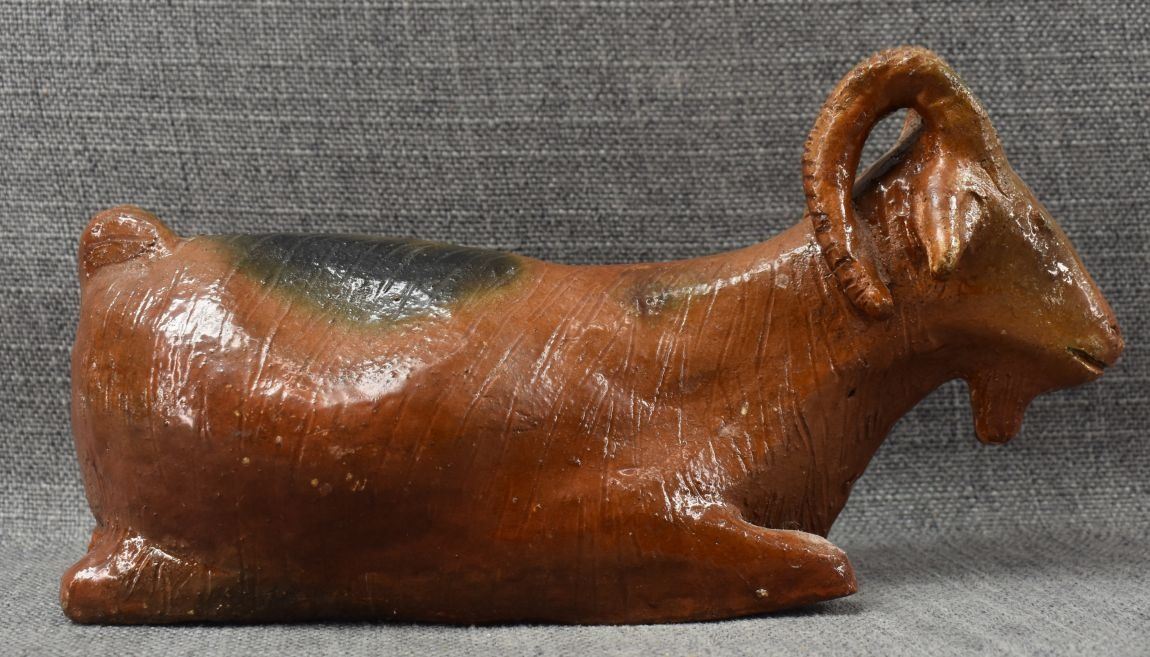 1990-2000's Navajo, hand made pottery goat attributed to George Slick 5.25" x 10.5" x 4.25"