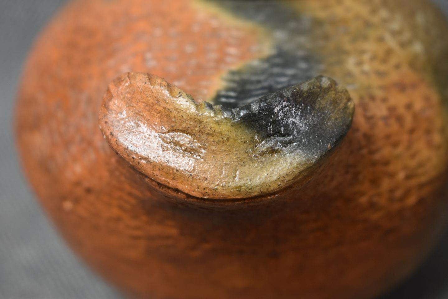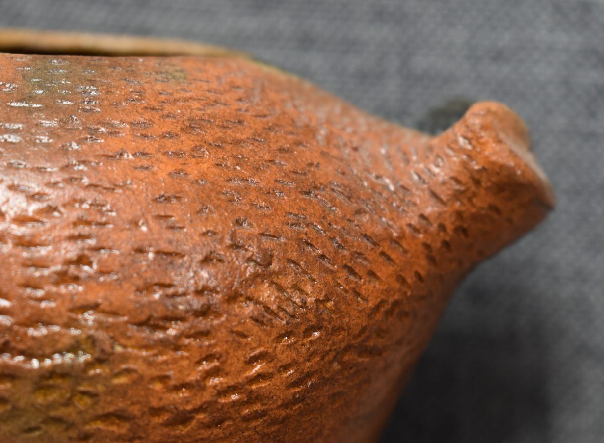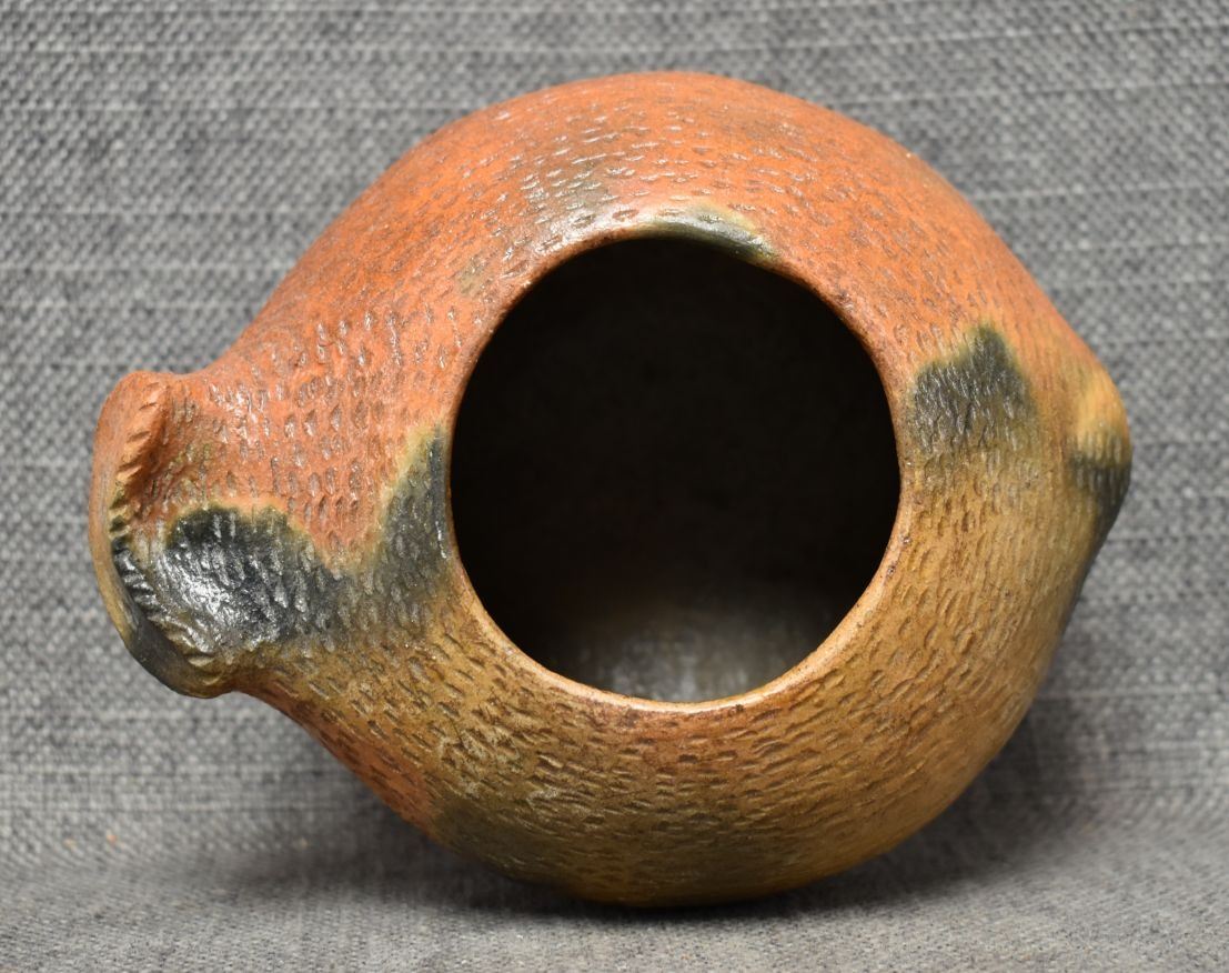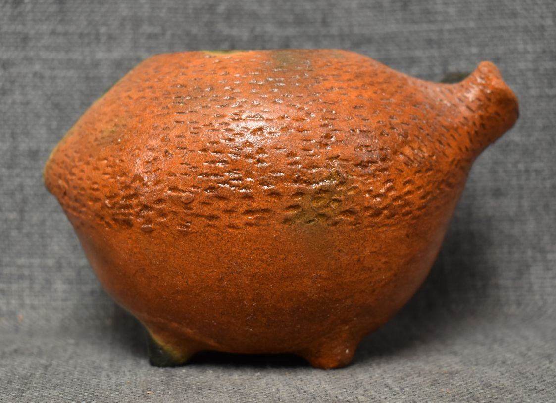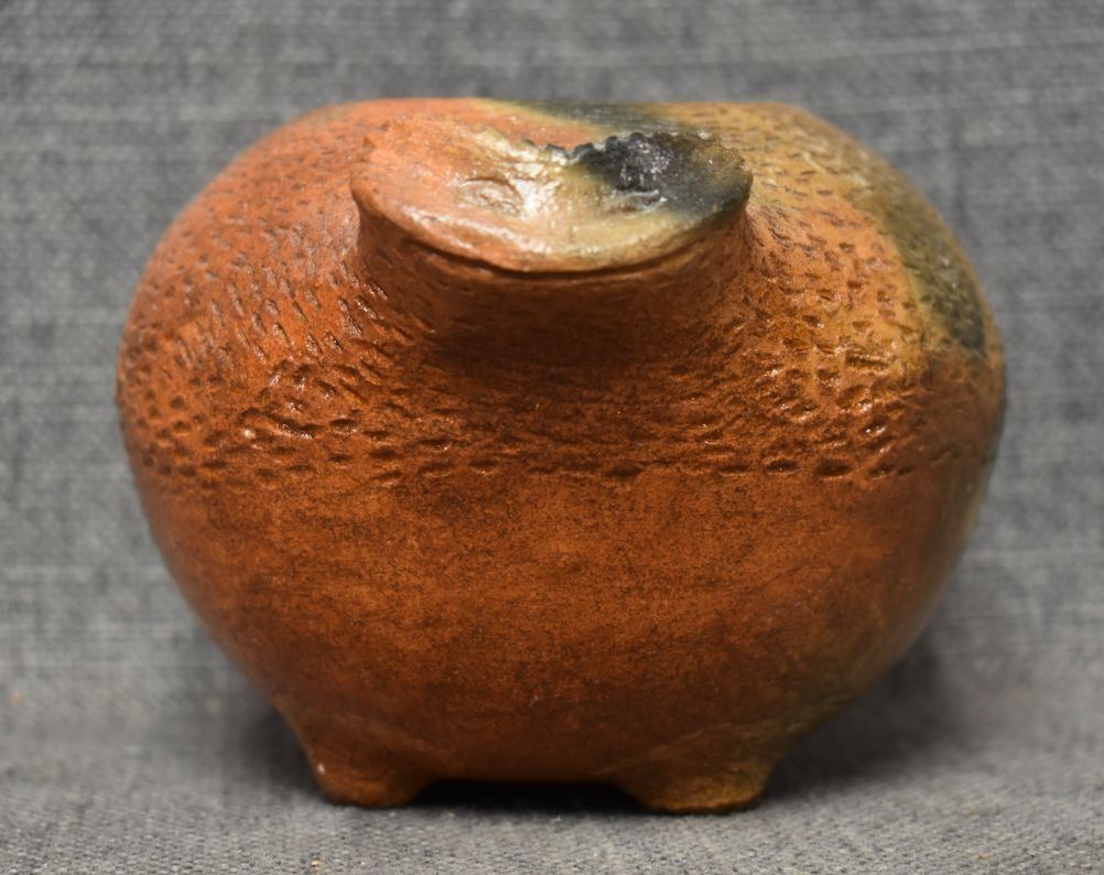 1990's Navajo. Hand coiled pottery jar depicting Horned toad. 4'' x 6.5'' x 5''