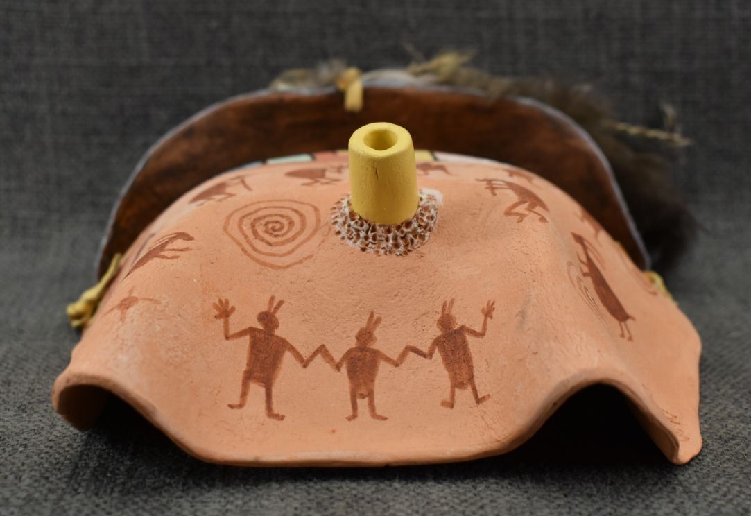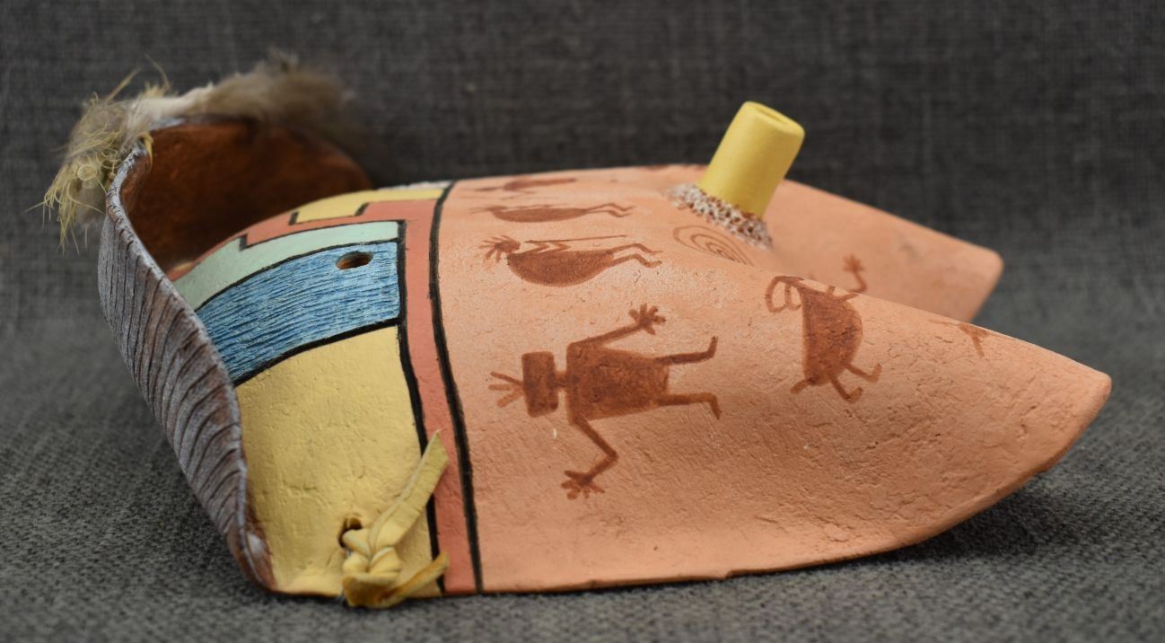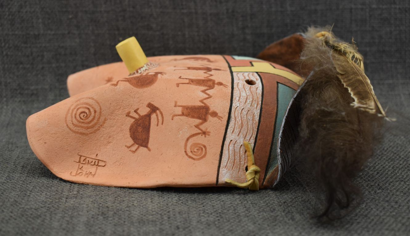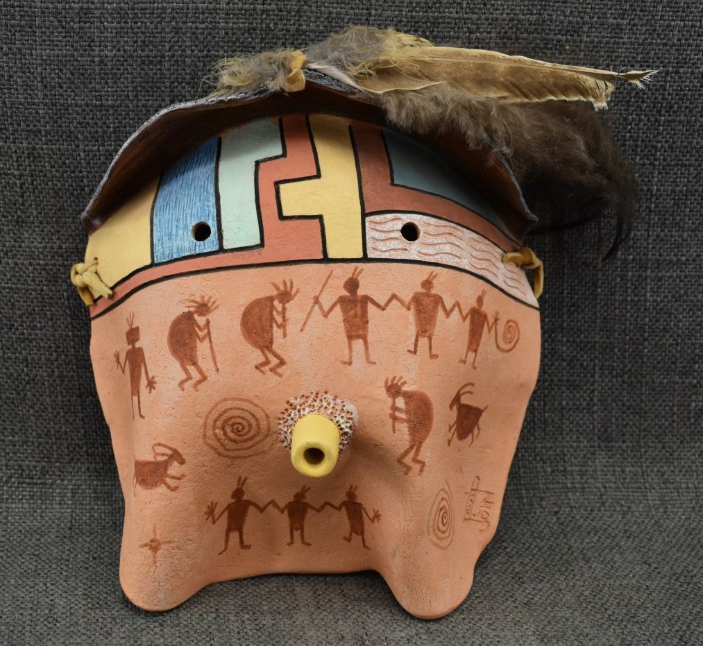 2000's Navajo, hand painted design on pottery mask by David K John 7" x 6.5" x 2.25"