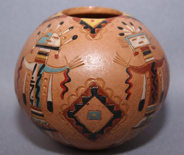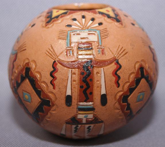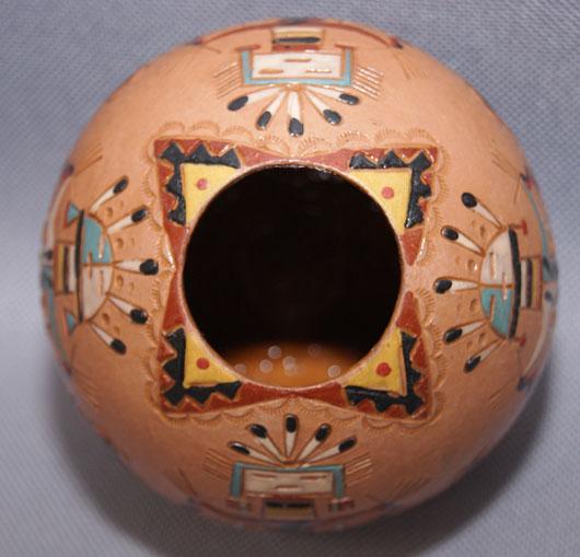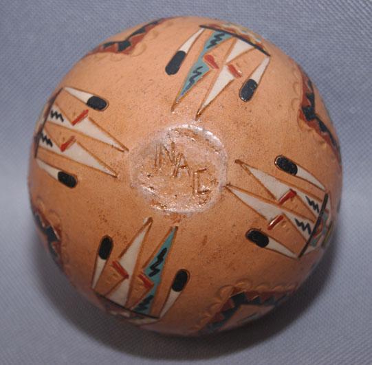 1980s polychrome carved yei design signed NAC, 3" x 3.5 "