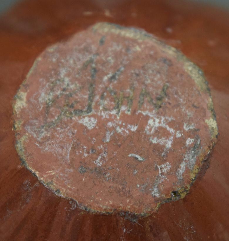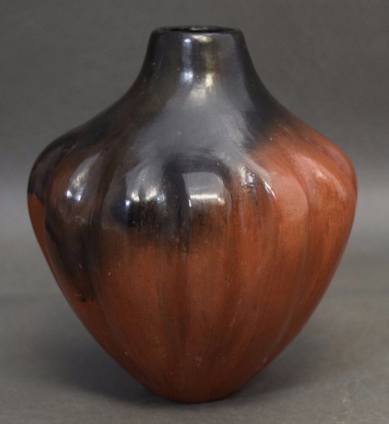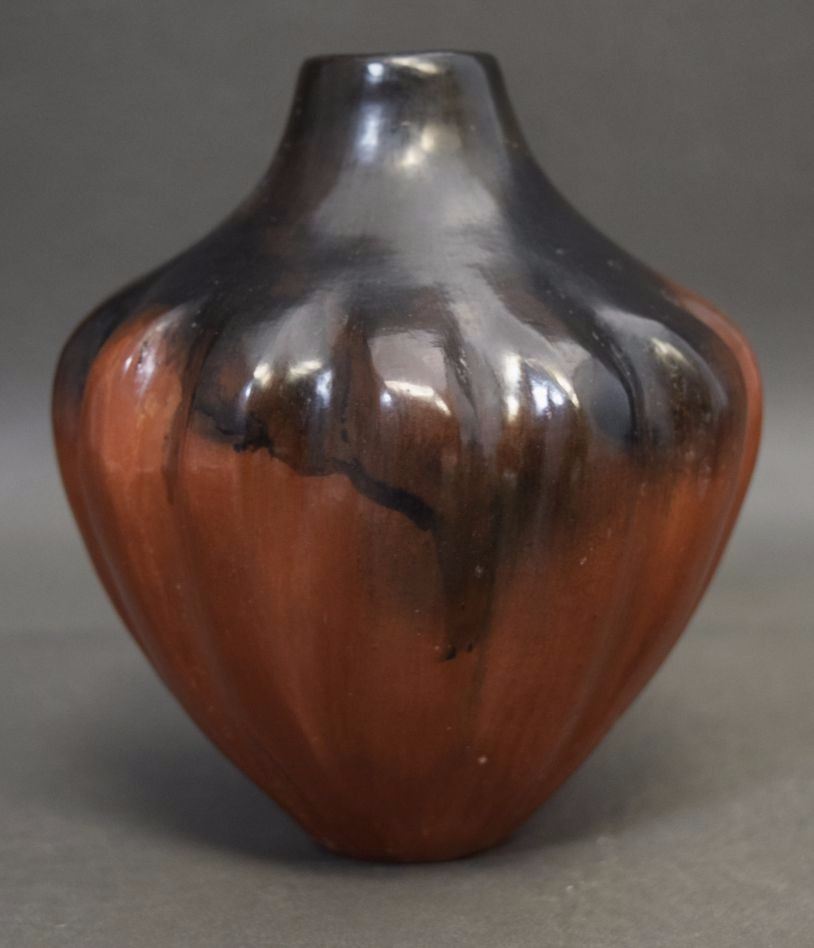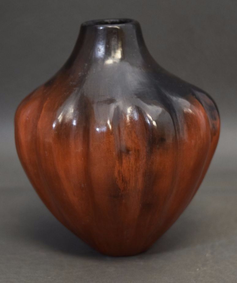 1990's pottery vase melon style signed but unreadable, 5'' x 4.5''
