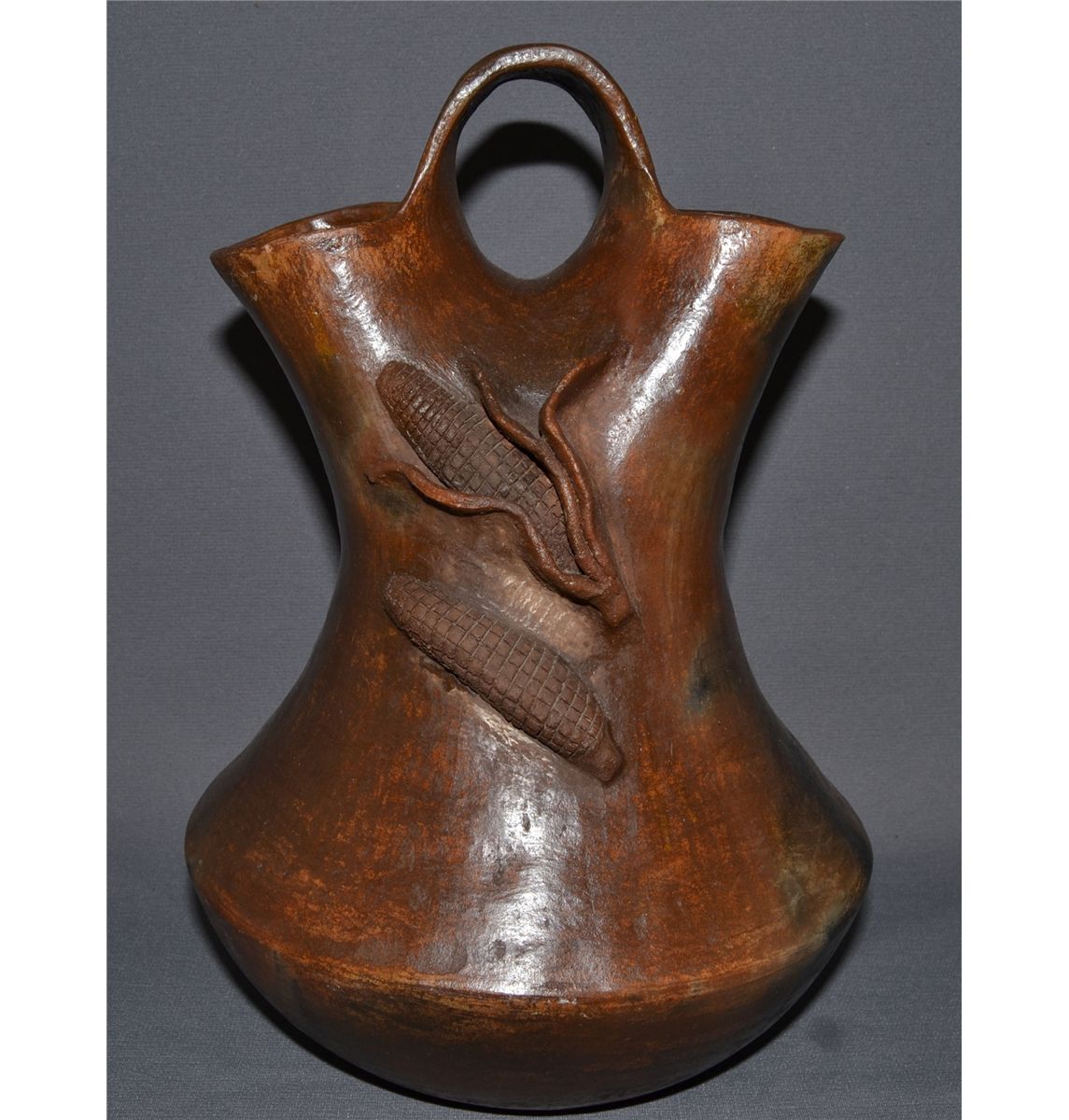 1970s 80s glaze ware corn design signed Mann 14.5"x10"