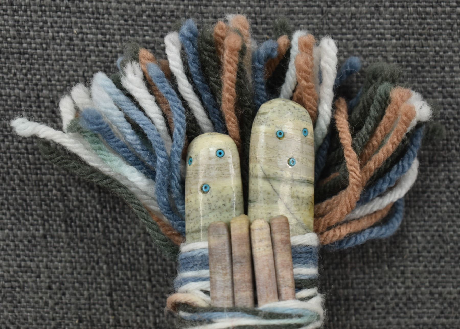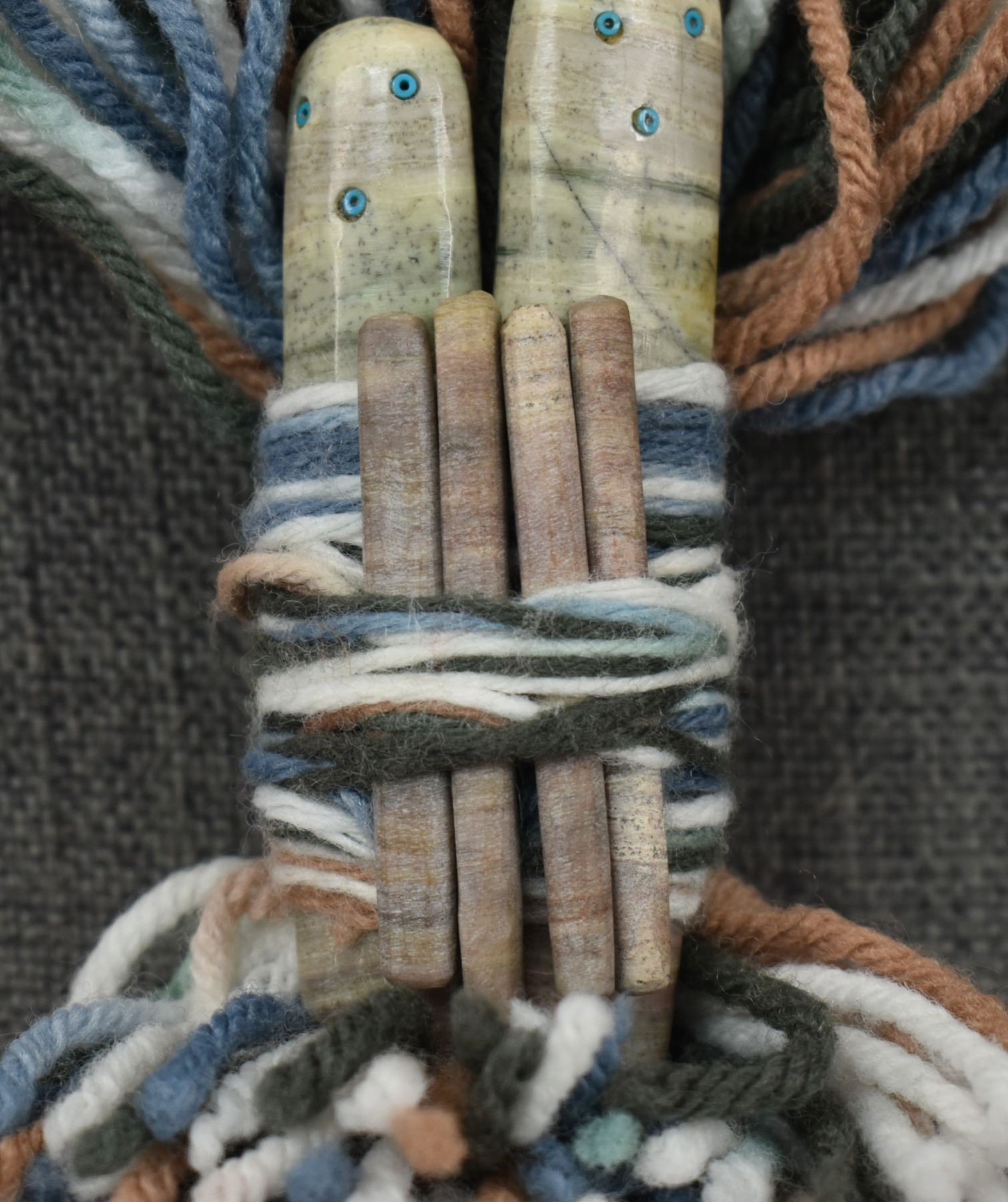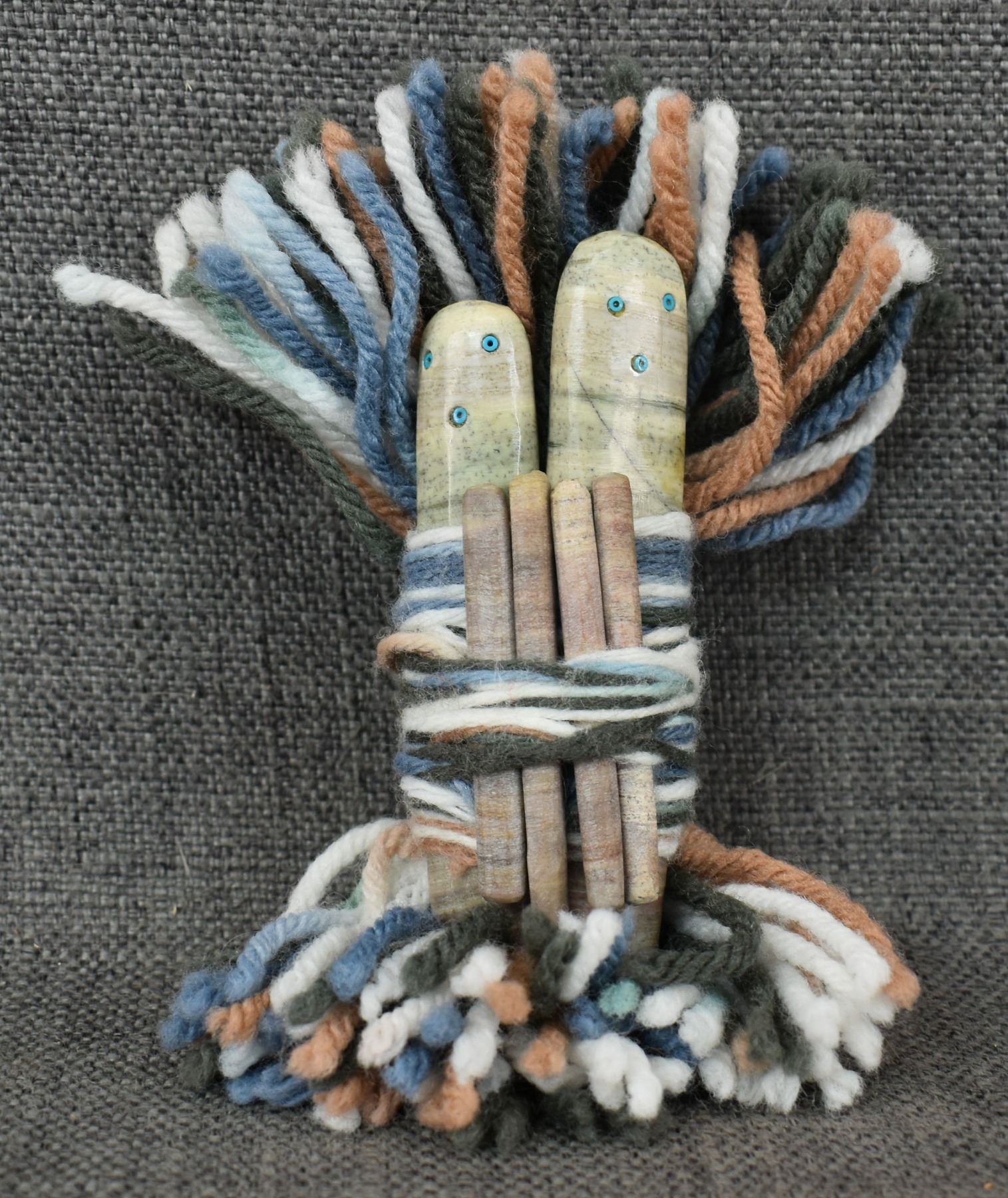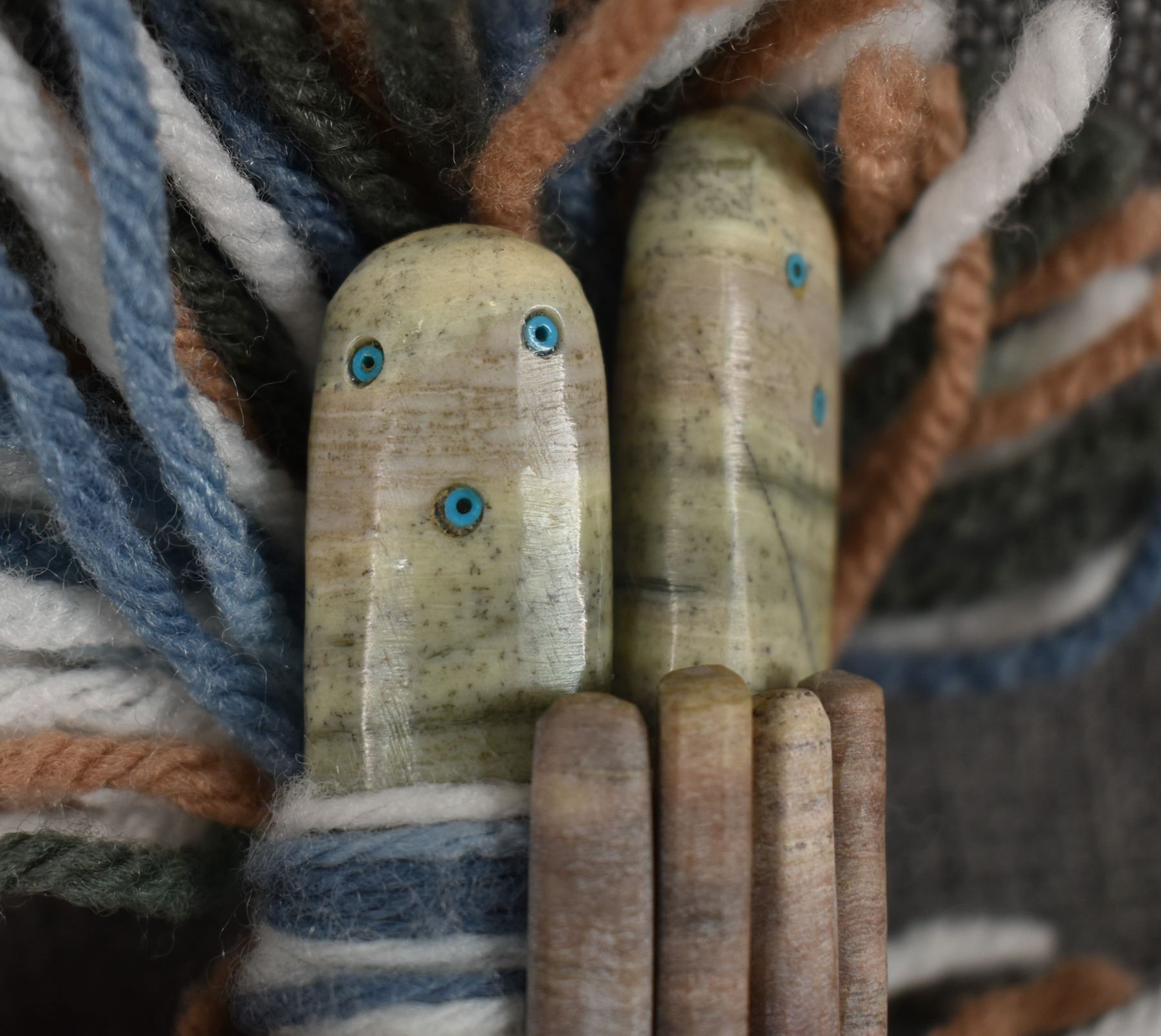1980's Navajo, carved stone fetishes with turquoise inlay wrapped in yarn 6.5" x 5"